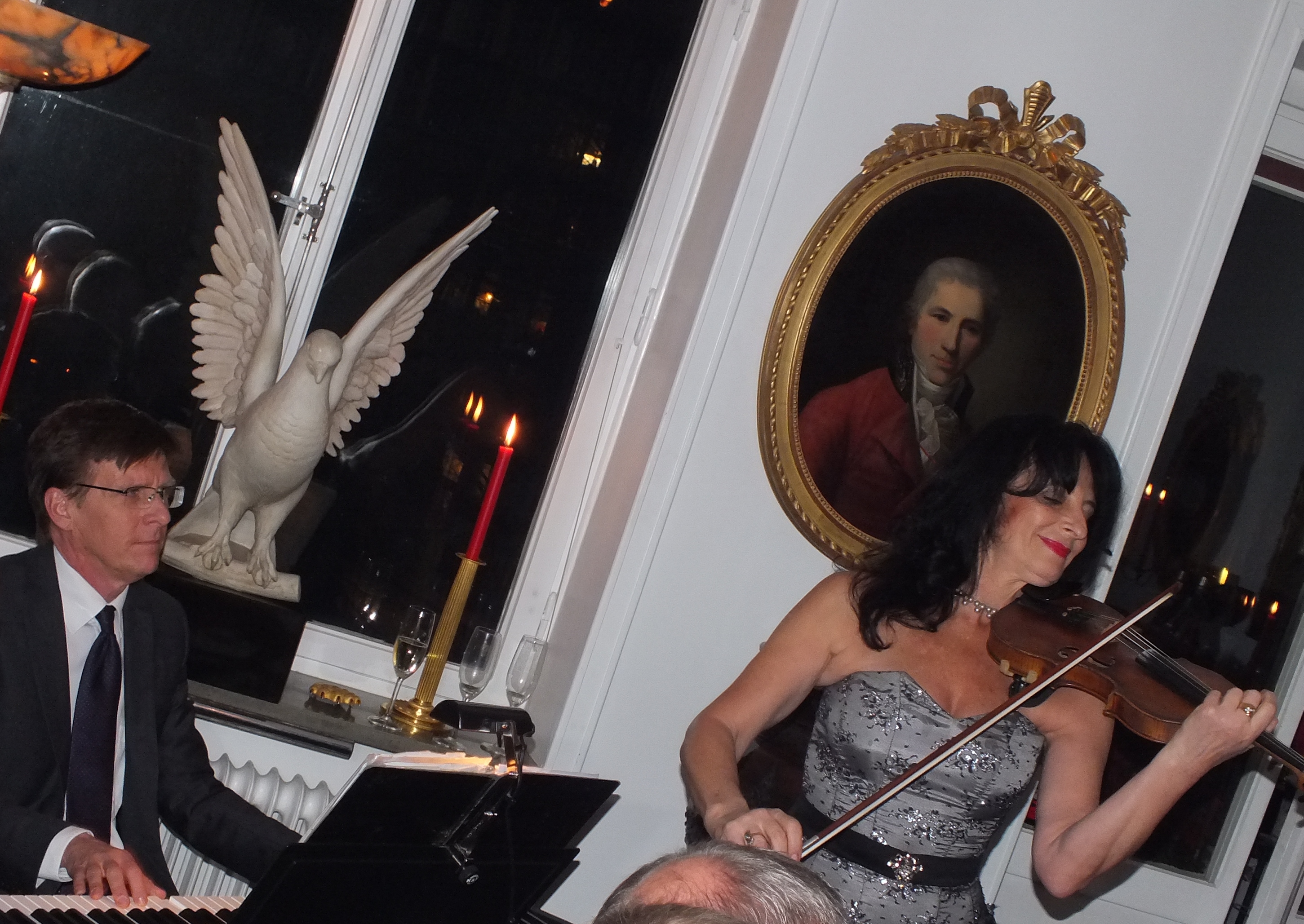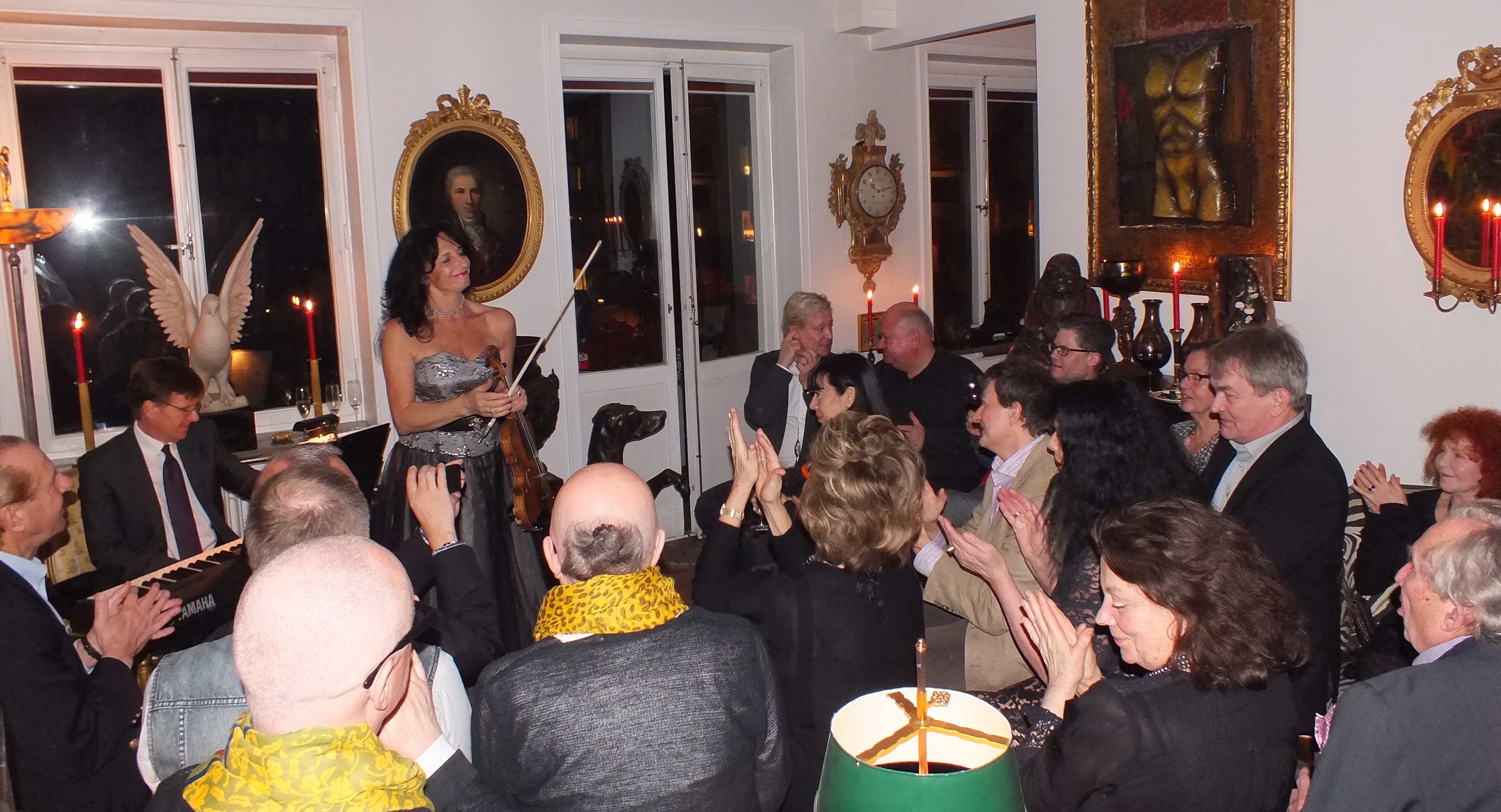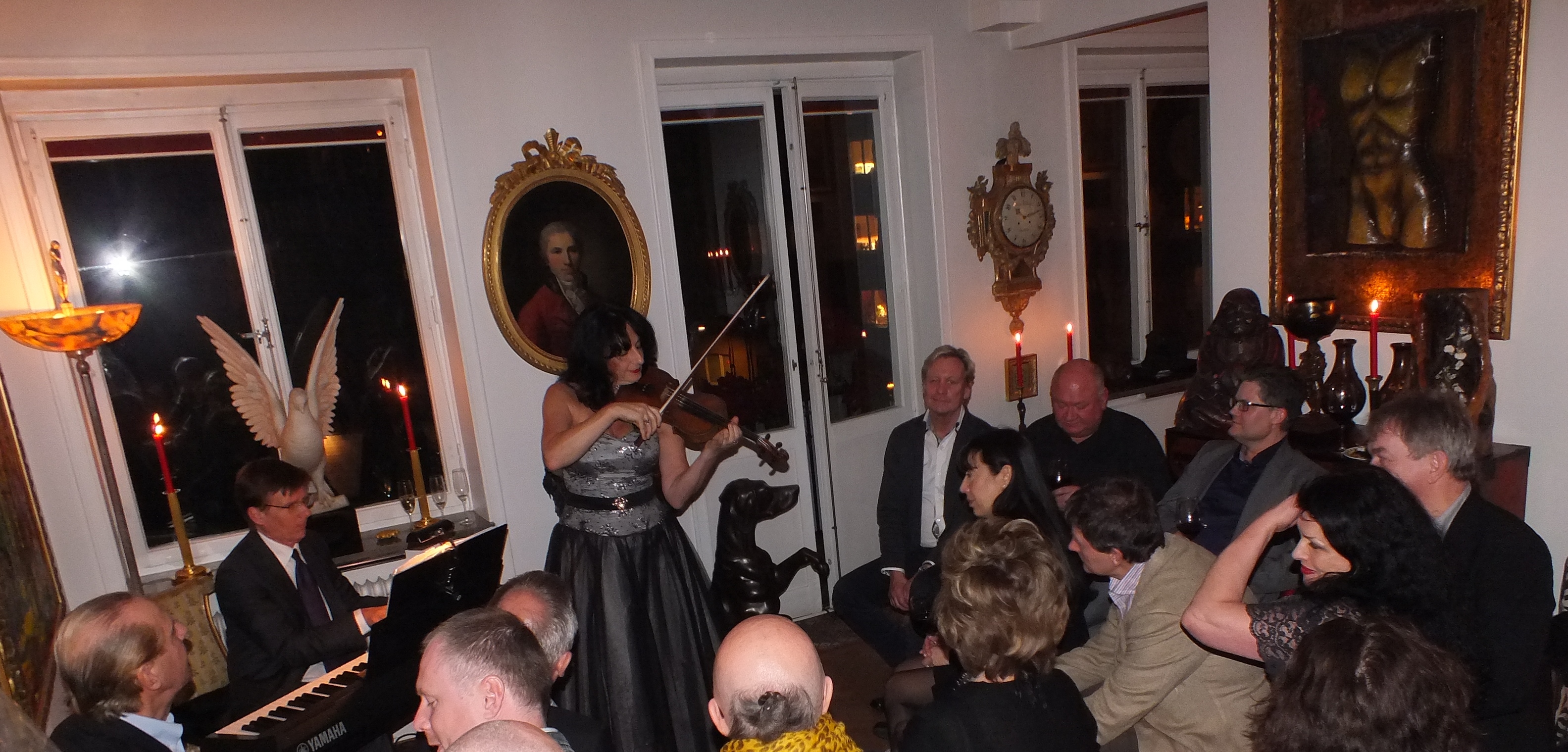 Kvällens höjdpunkt var att lyssna och beundra den ryska violinisten och musikproducenten på bland annat Hallwylska Palatset, Rimma Gotskosik med Jan-Erik Sandvik som ackompanjatör på piano. God hemmalagad mat ”á la Martina”serverades, med god dryck därtill. Stämningen med värme, kärlek och vänskap kan bara beskrivas som ”himmelsk”.