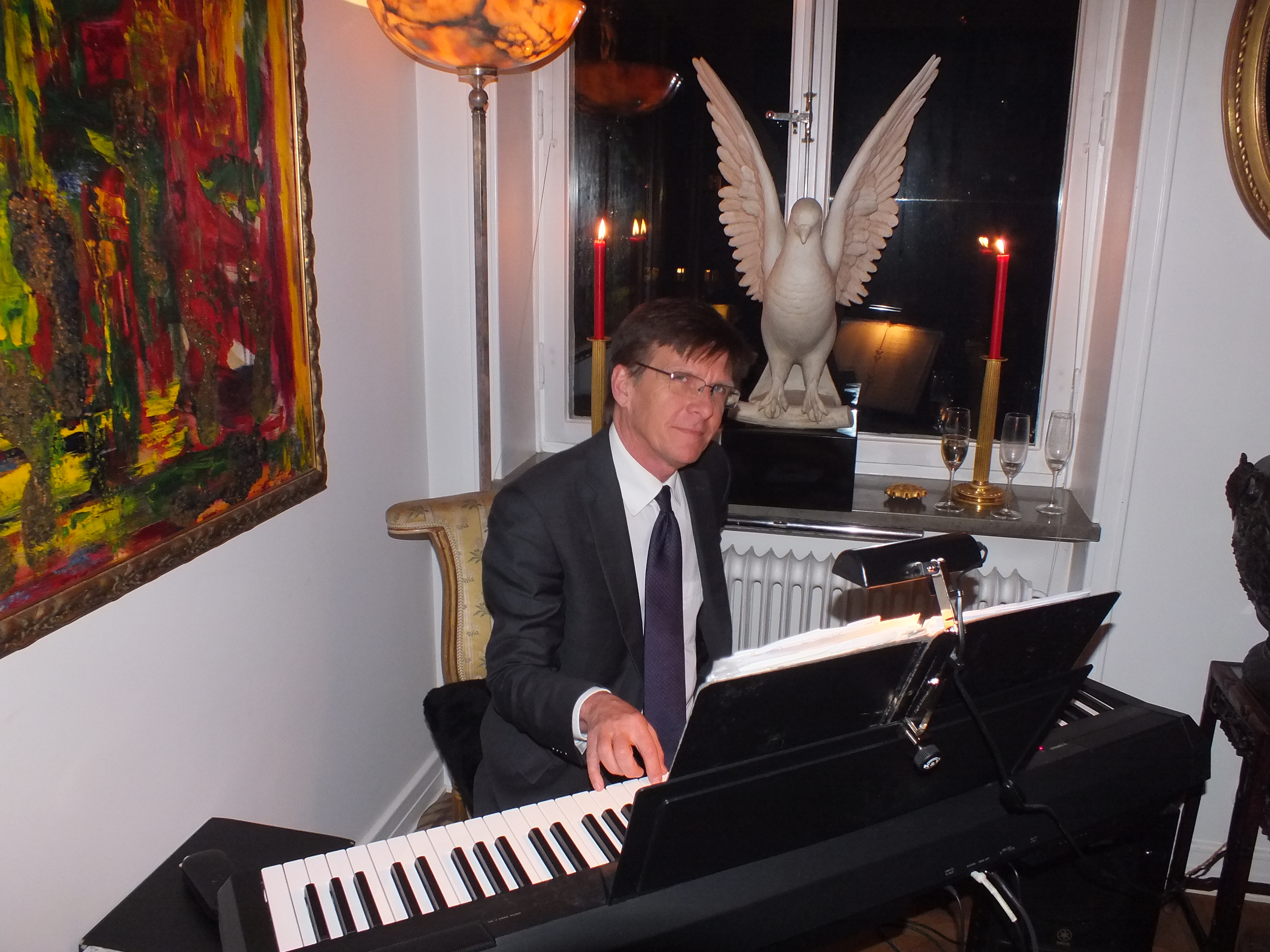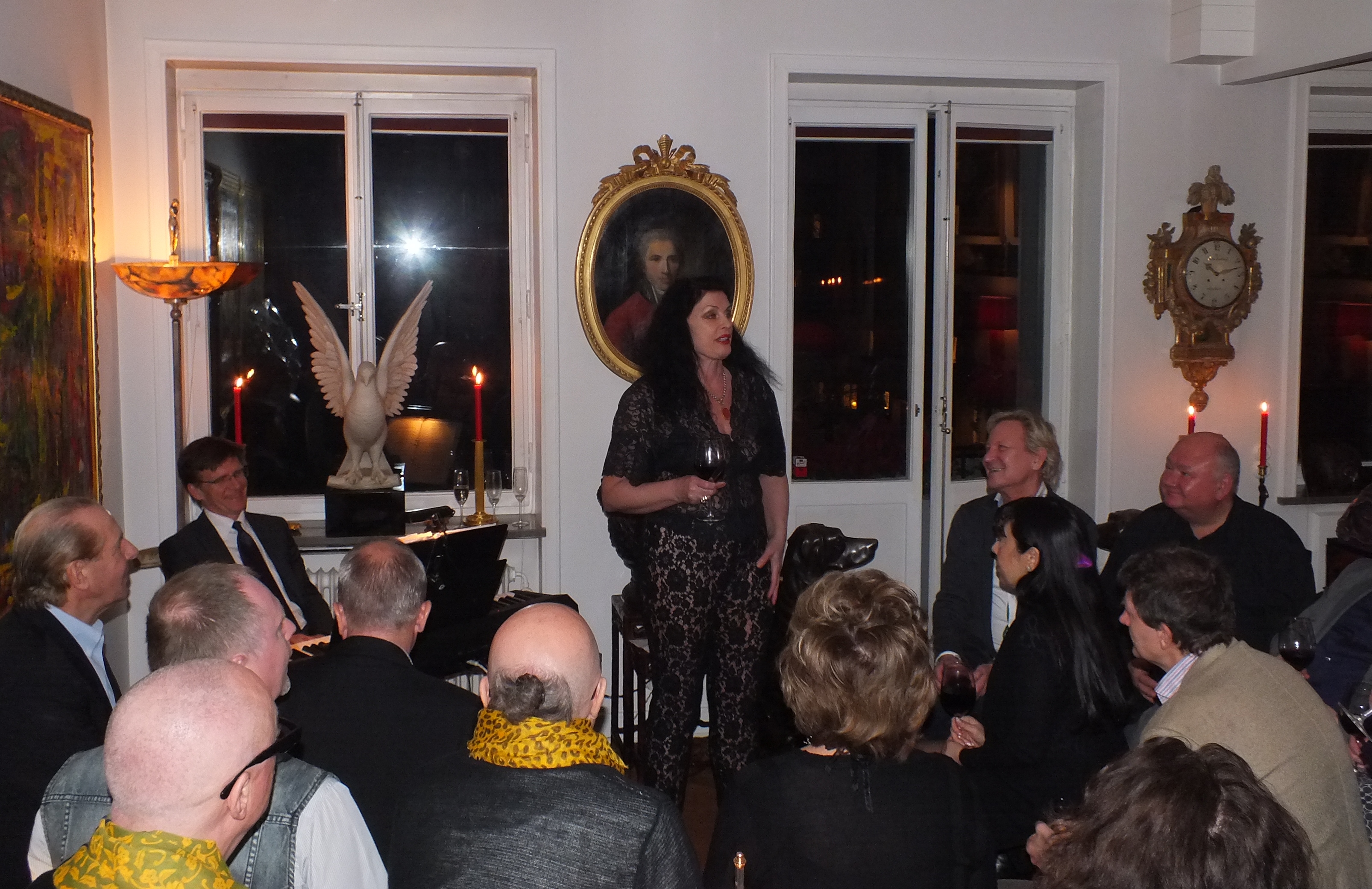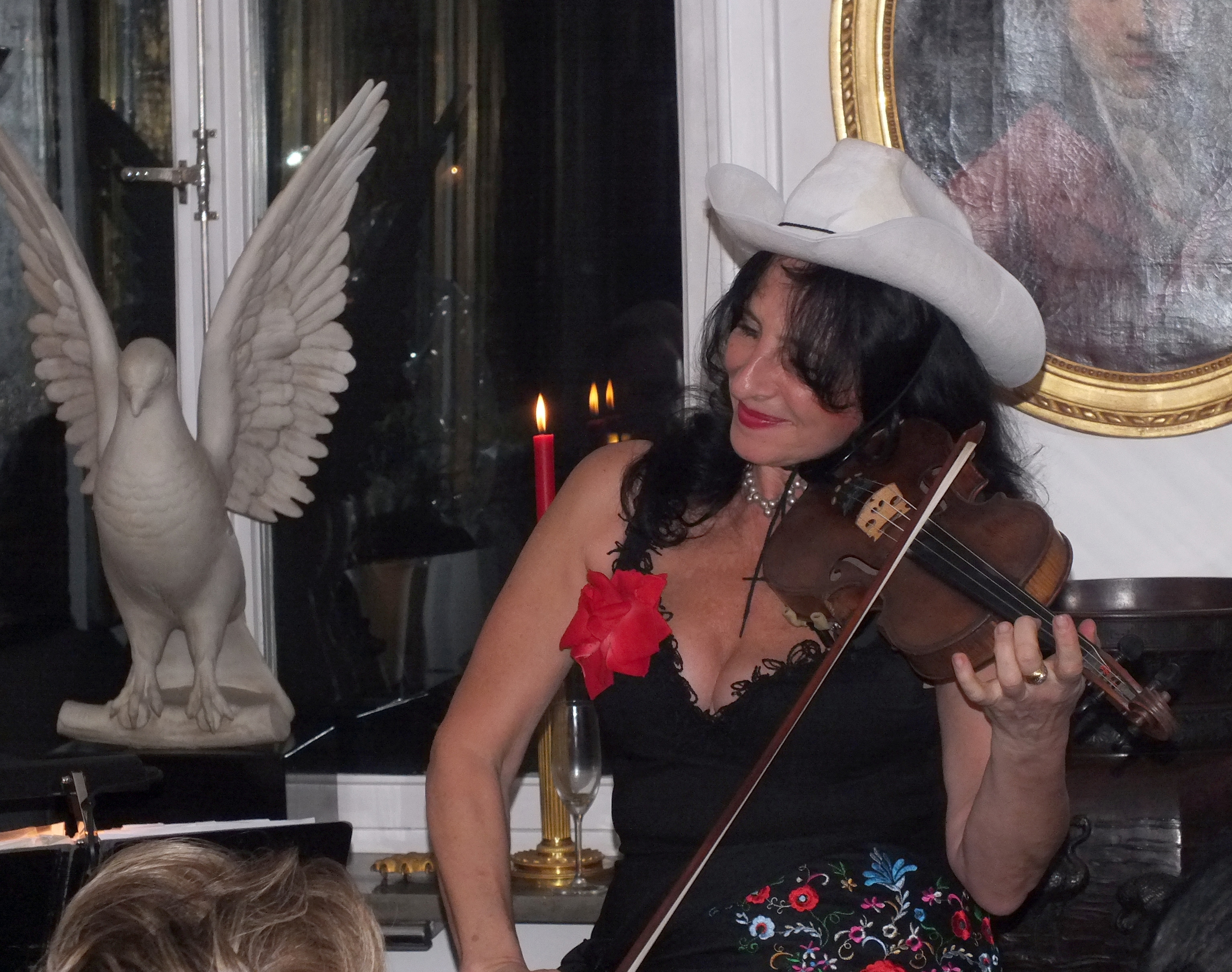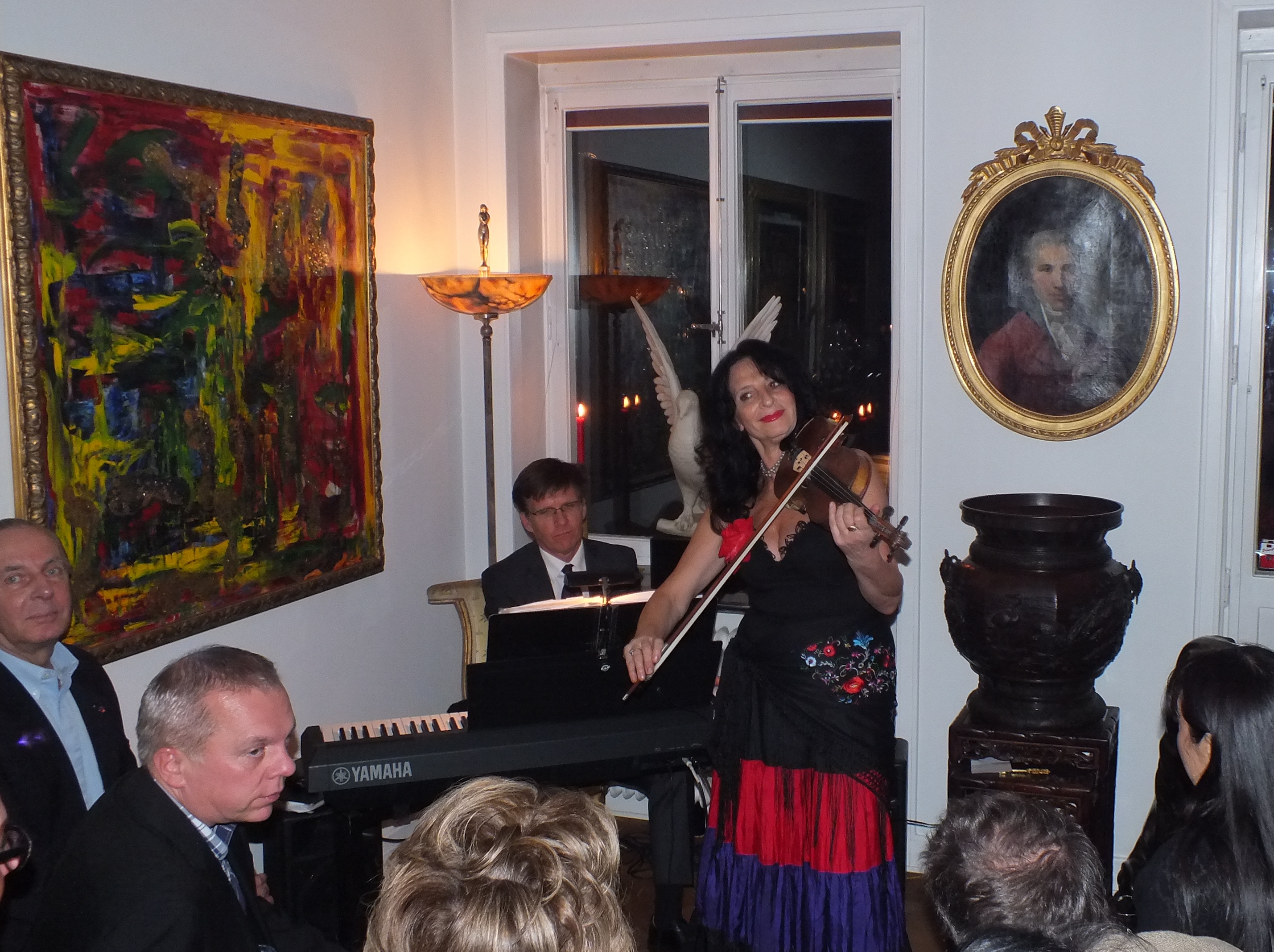 Kvällens höjdpunkt var att lyssna och beundra den ryska violinisten och musikproducenten på bland annat Hallwylska Palatset, Rimma Gotskosik med Jan-Erik Sandvik som ackompanjatör på piano. God hemmalagad mat ”á la Martina”serverades, med god dryck därtill. Stämningen med värme, kärlek och vänskap kan bara beskrivas som ”himmelsk”.