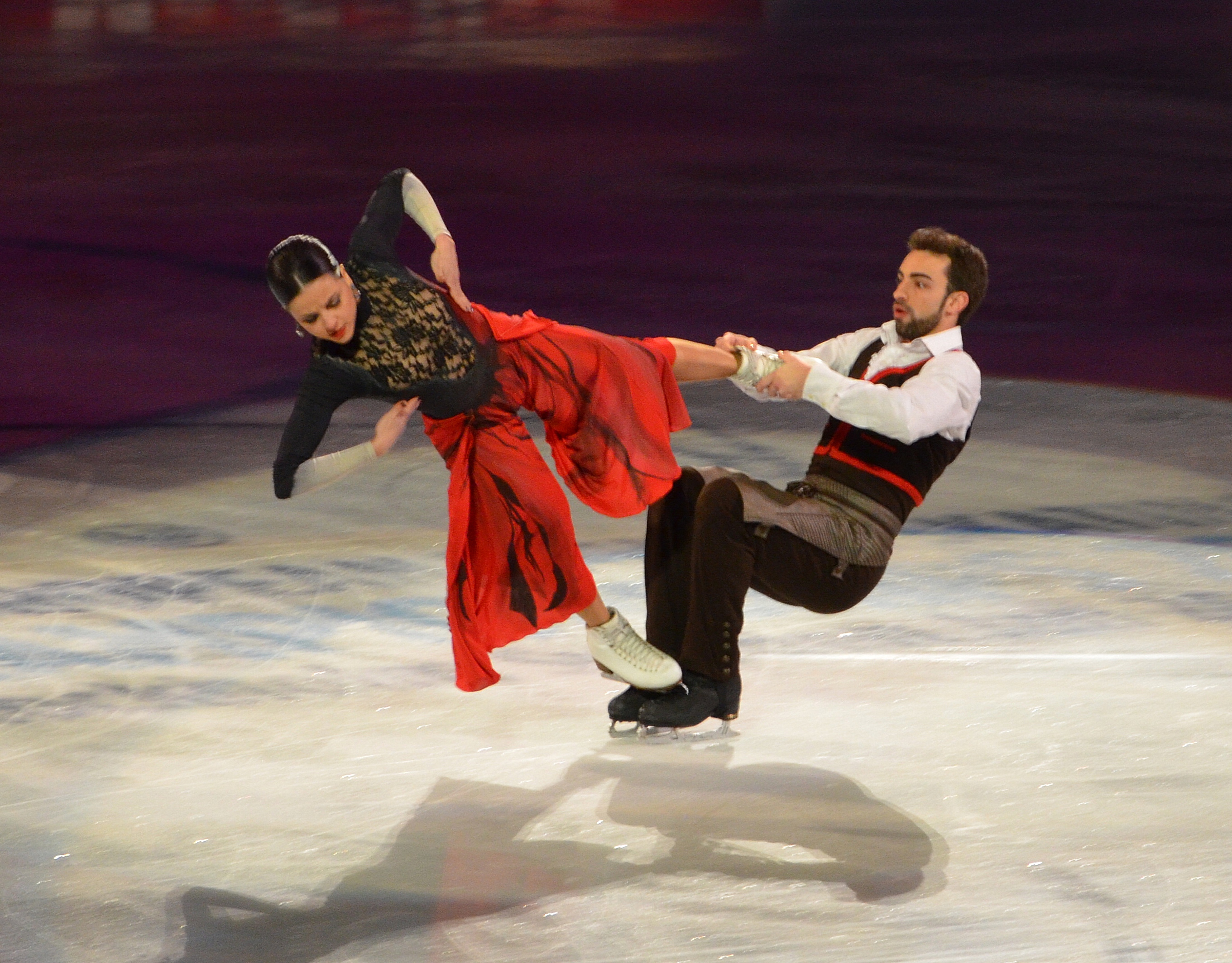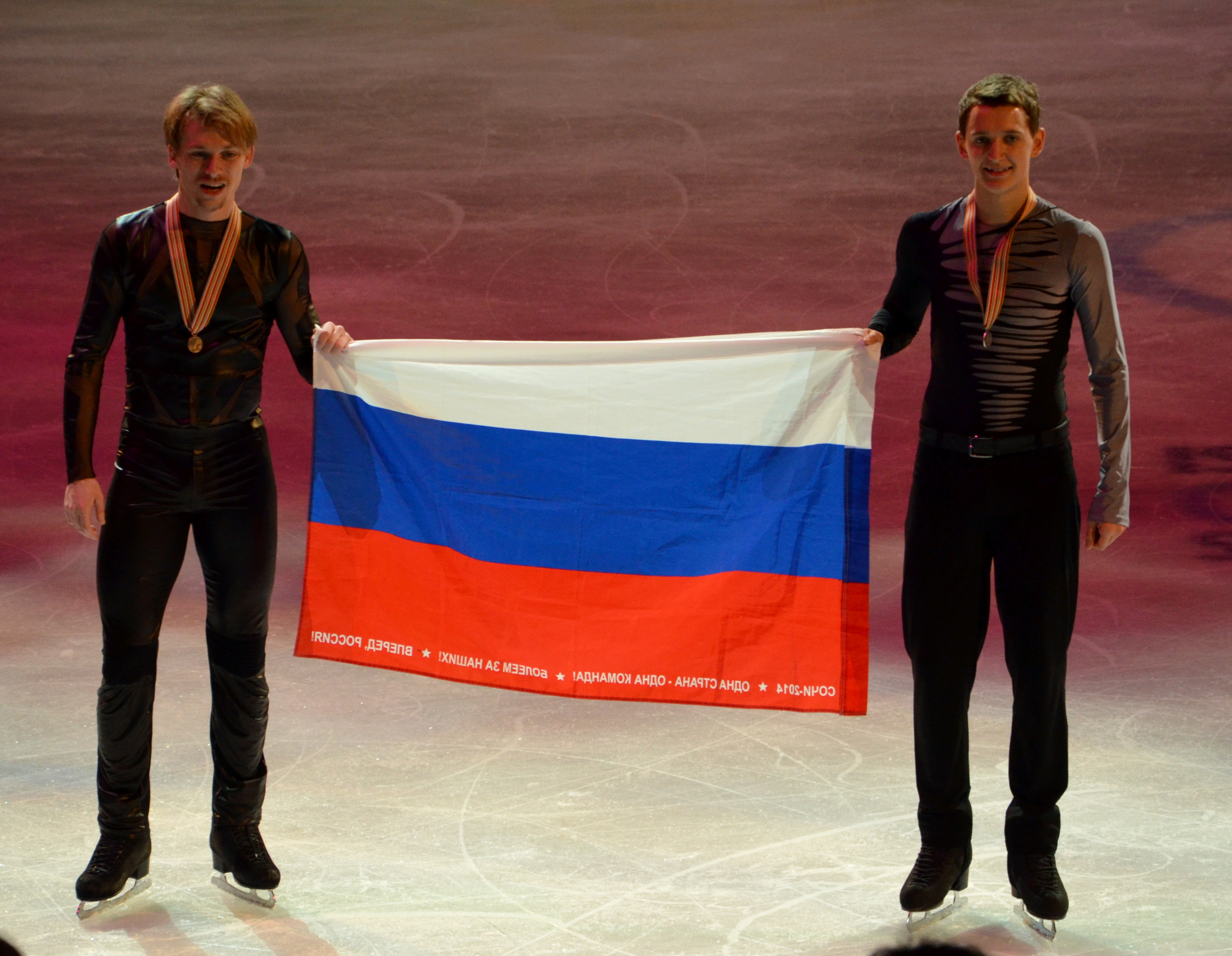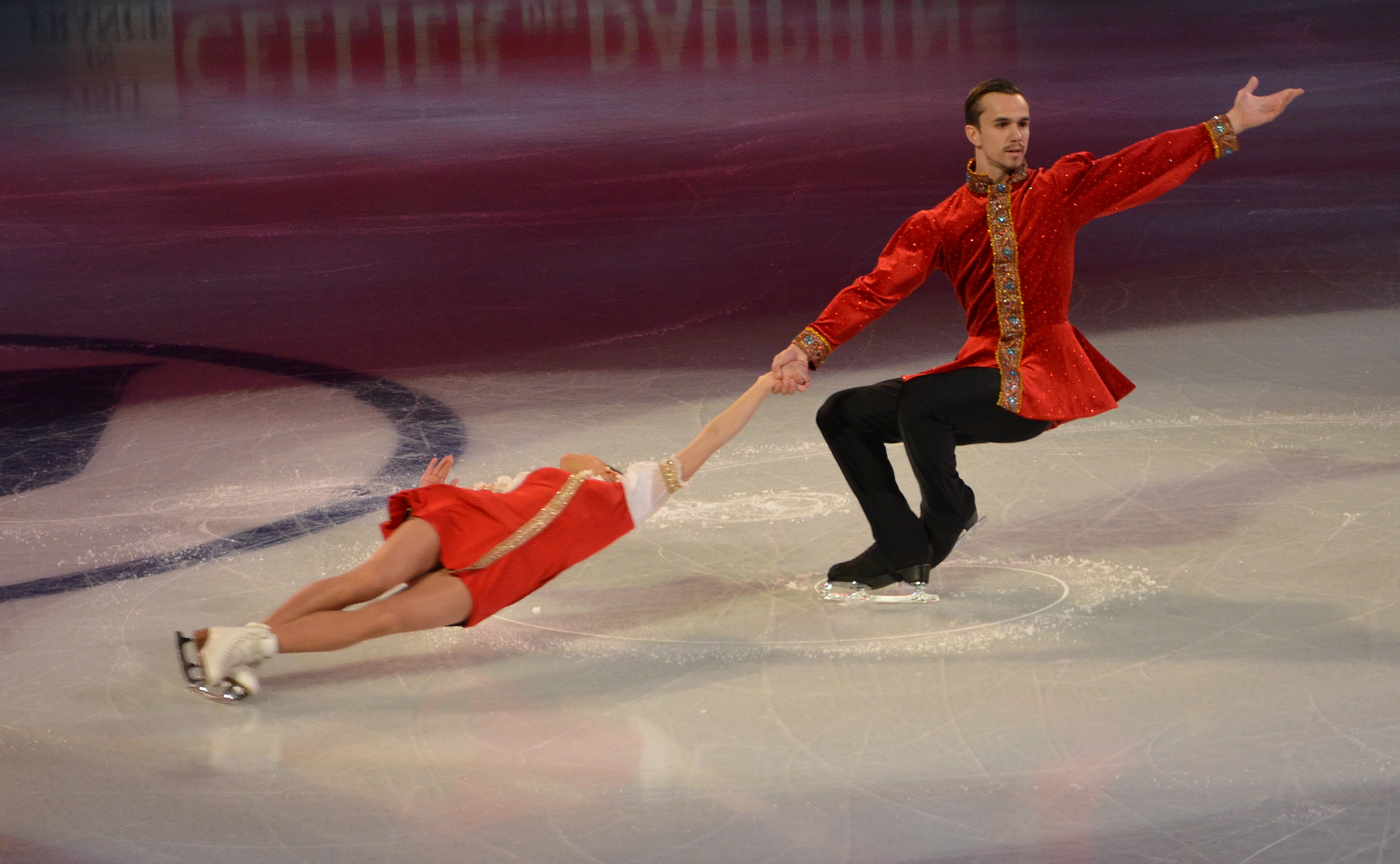 Yuko Kavaguti/Alexander Smirnov of Russia struck gold and led a Russian sweep in the Pairs event. Ksenia Stolbova/Fedor Klimov settled for the silver medal and Evgenia Tarasova/Vladimir Morozov moved up from fifth to earn the bronze medal.