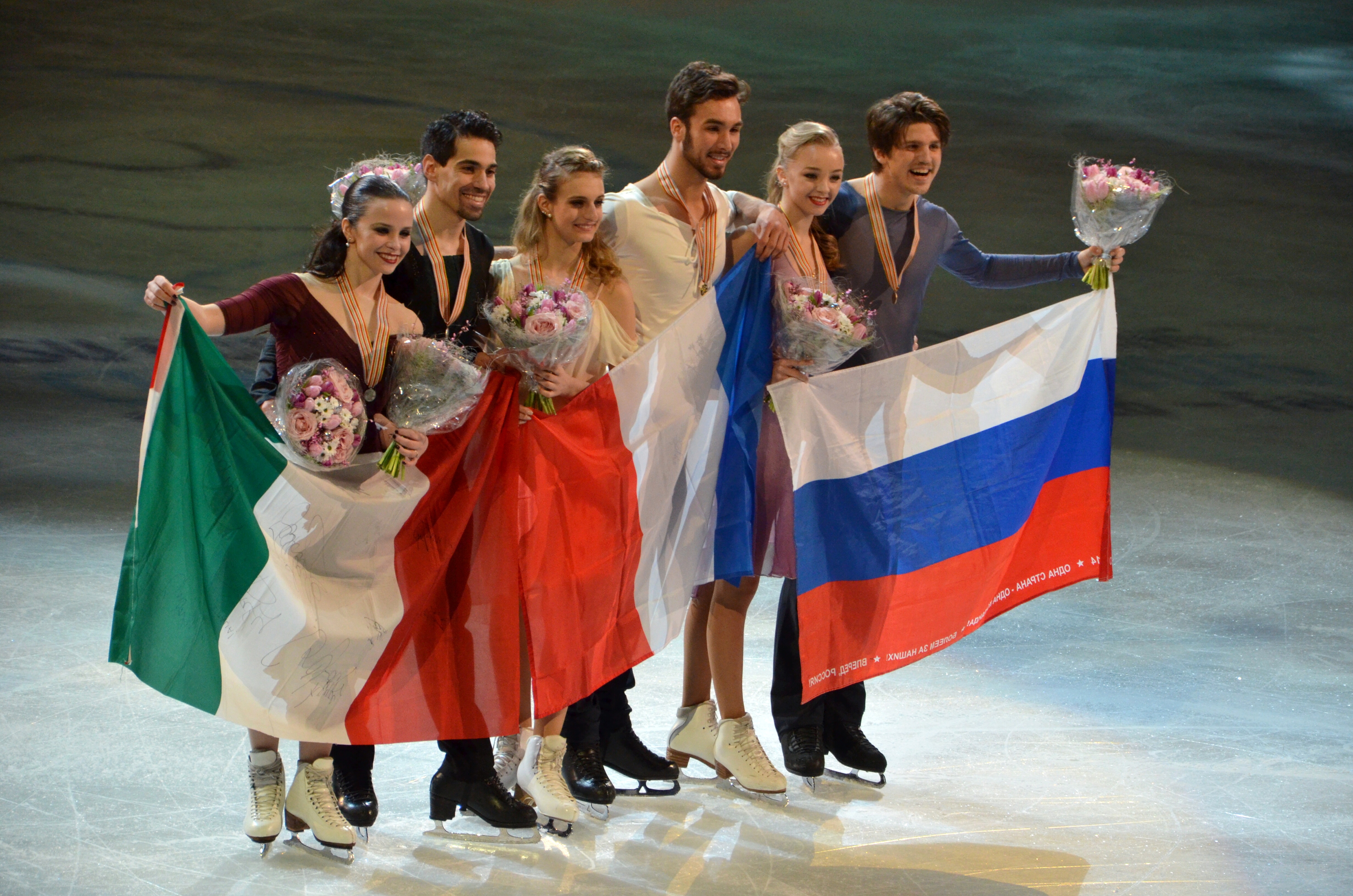 Medaljörerna i Isdans! Guld till Papadakis & Cizeron från Frankrike, Silver till Cappellini & Lanotte från Italien, Brons till Stepanova & Bukin.