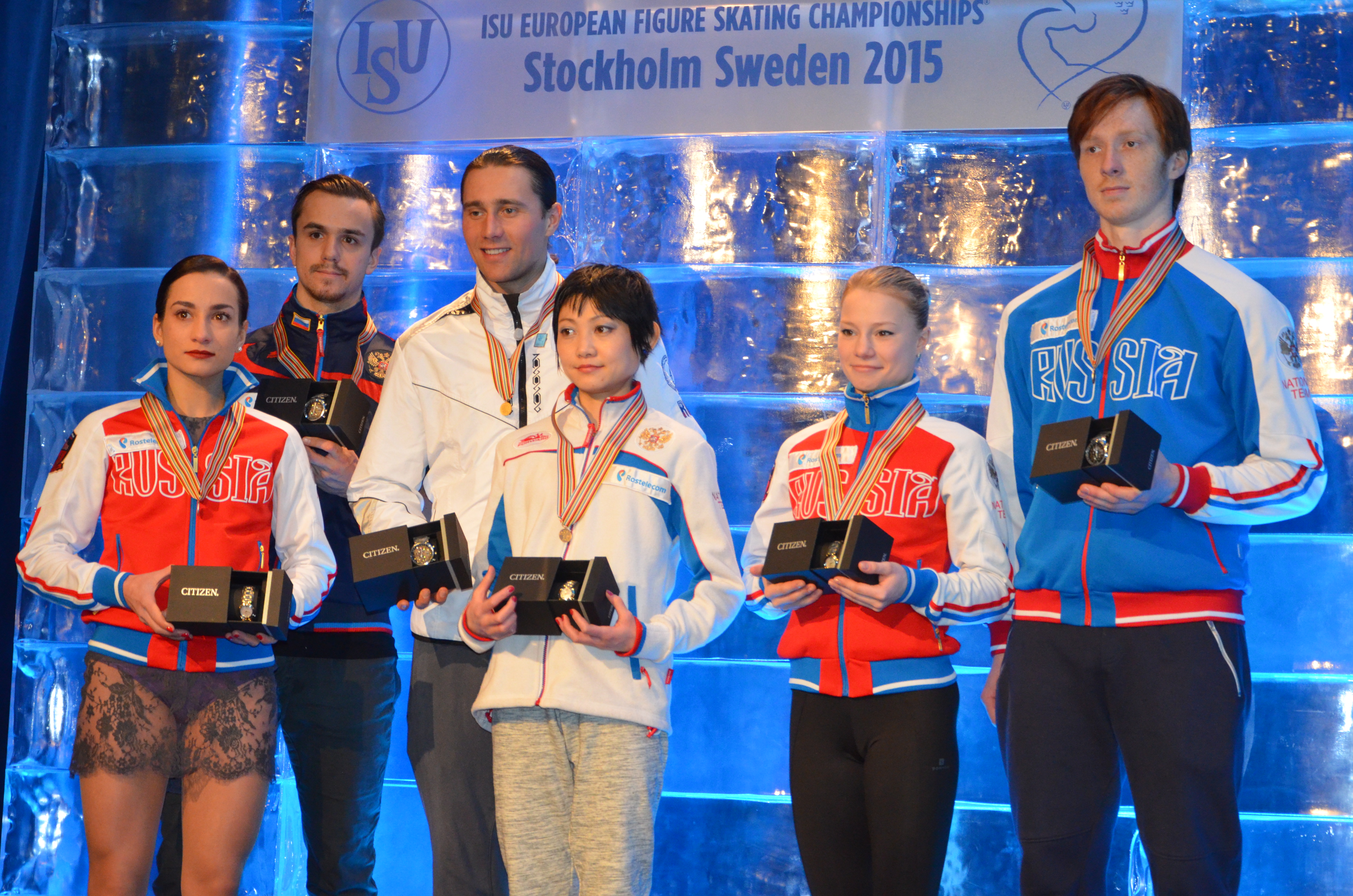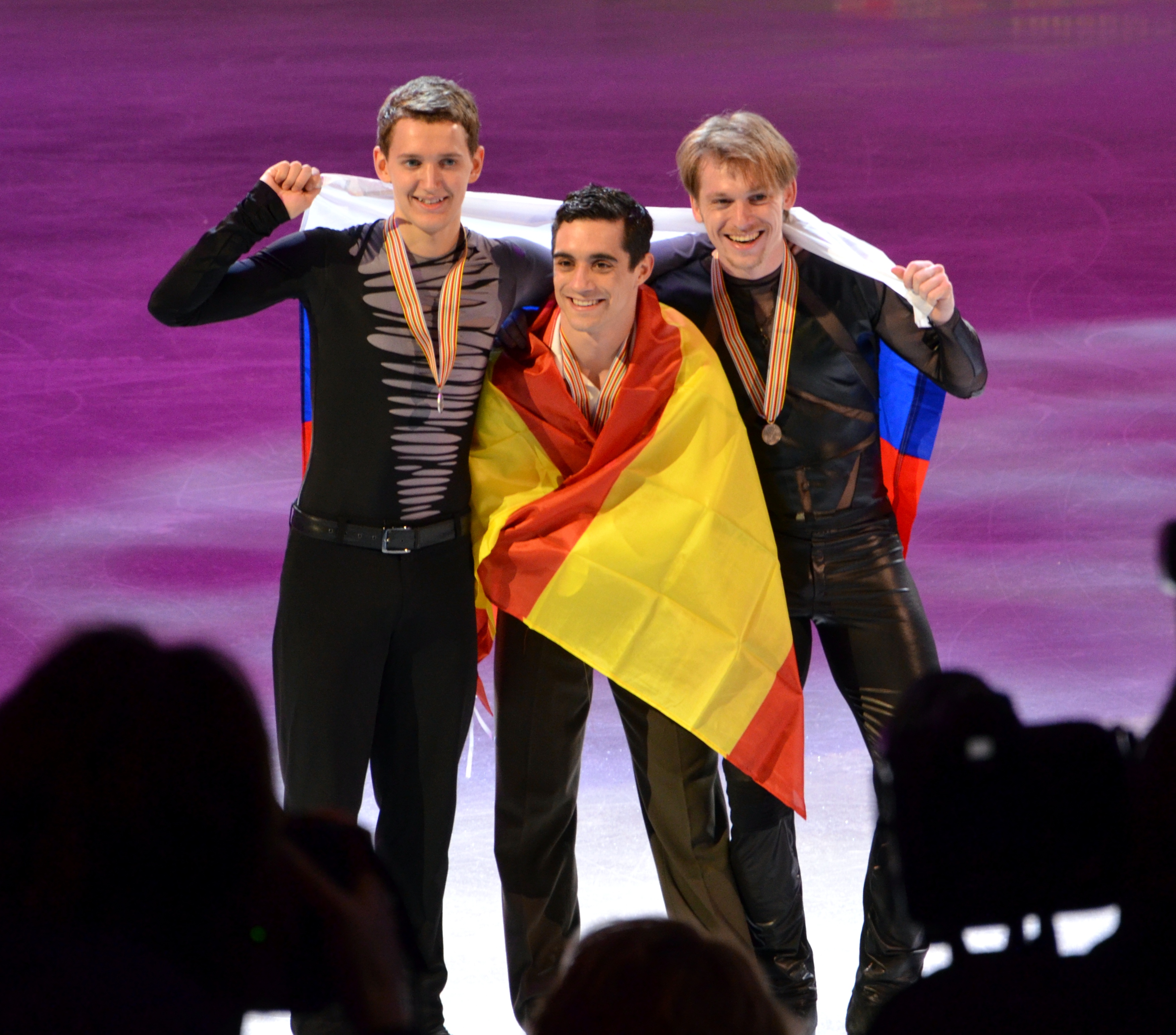Javier Fernandez of Spain claimed his third European title while Russia’s Maxim Kovtun and Sergei Voronov took the silver and bronze medals.