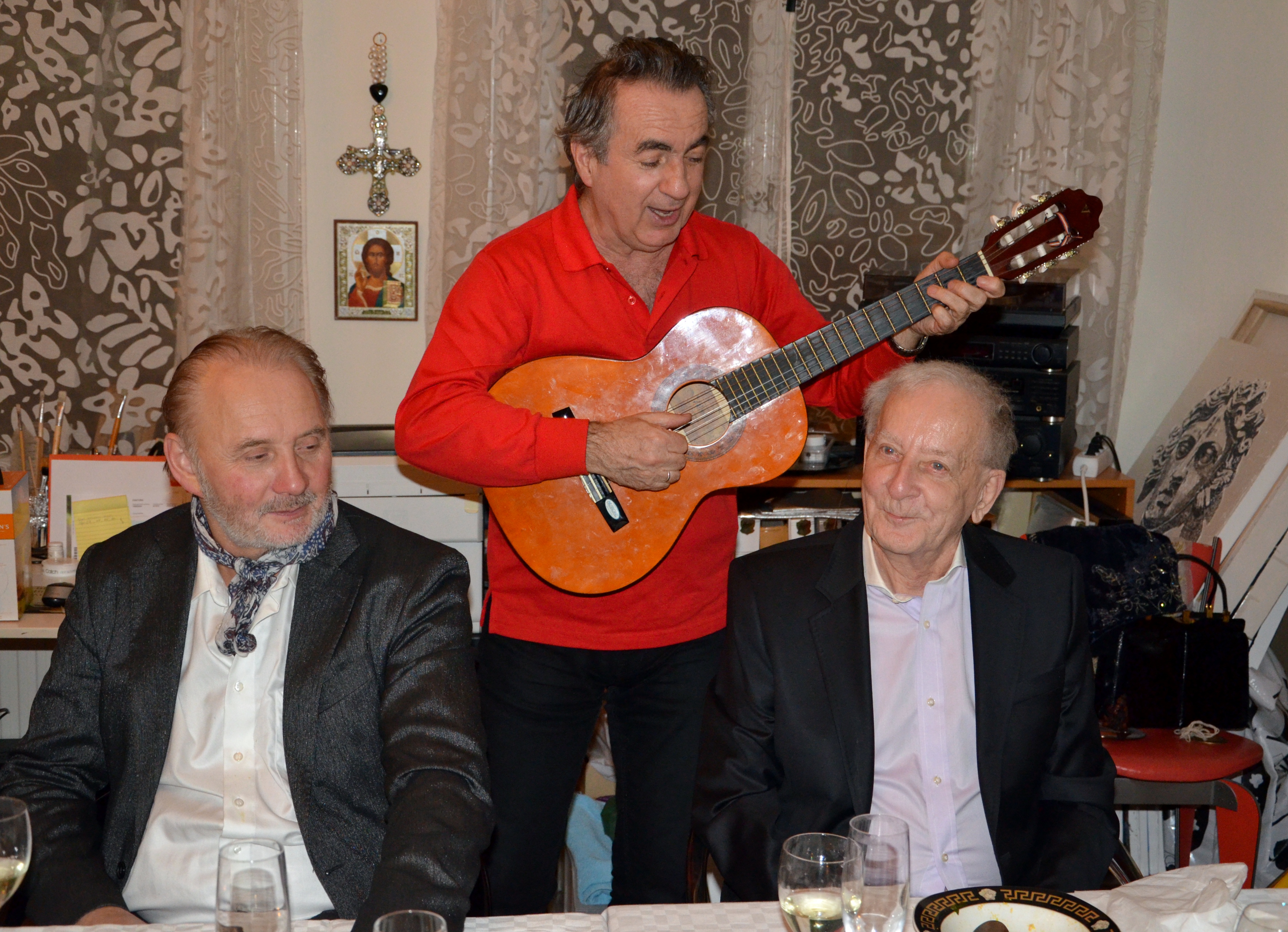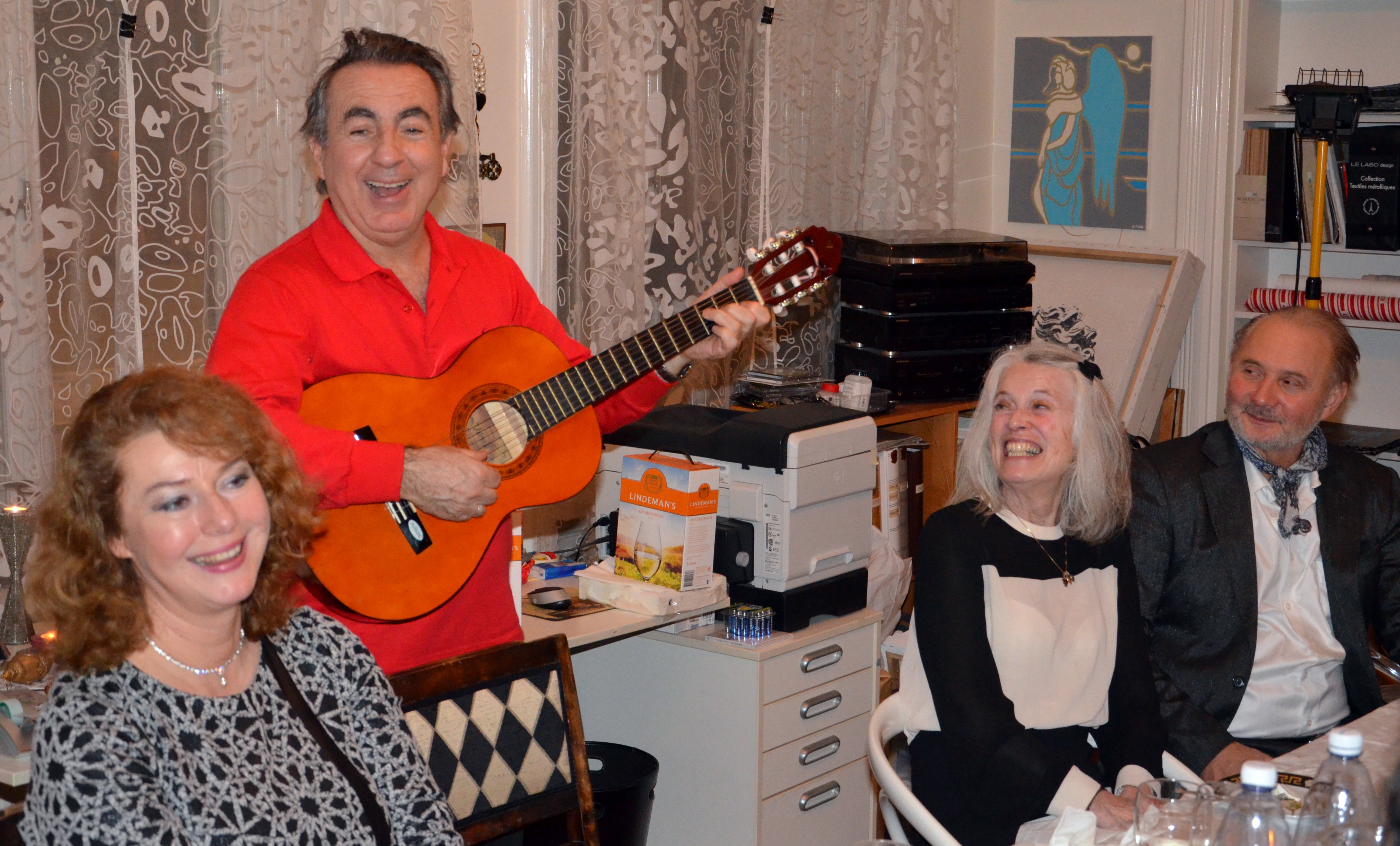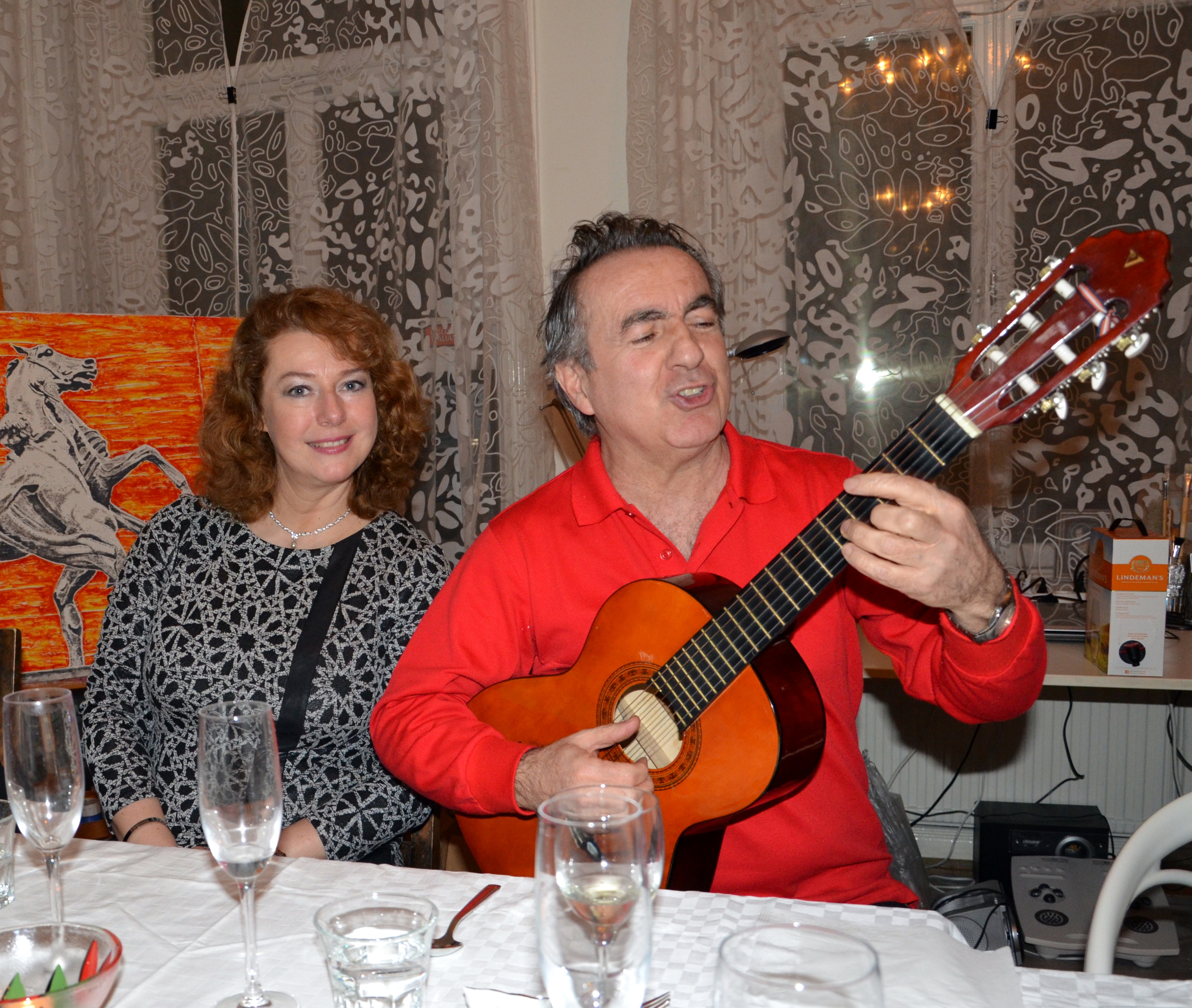 Världens bästa och kärleksfullaste vänner samlades under fredagskvällen den 6 Mars 2015 hos Anna Edman/Tian konstnärinnan och eldsjälen för den roligaste middagen på mycket länge. I Annas sagolika studio/lägenhet fick vi njuta av Eddie Oliva varma sångröst med djupa, meningsfulla ord till Italienska gamla sånger, och några nykomponerade av Eddie själv. Martina Colbiörnsen sjöng med i duett, samt även hennes egna tyska sång ”Kann denn Liebe Sünde sein”. En härlig kväll i goda vänners lag med fantastisk mat, skagenröra, fiskgryta, samt olika ostvariationer. Mängder med bubbel och goda viner. Här delar vi våra bilder ifrån denna förtjusande kväll i musikens och vänskapens anda.