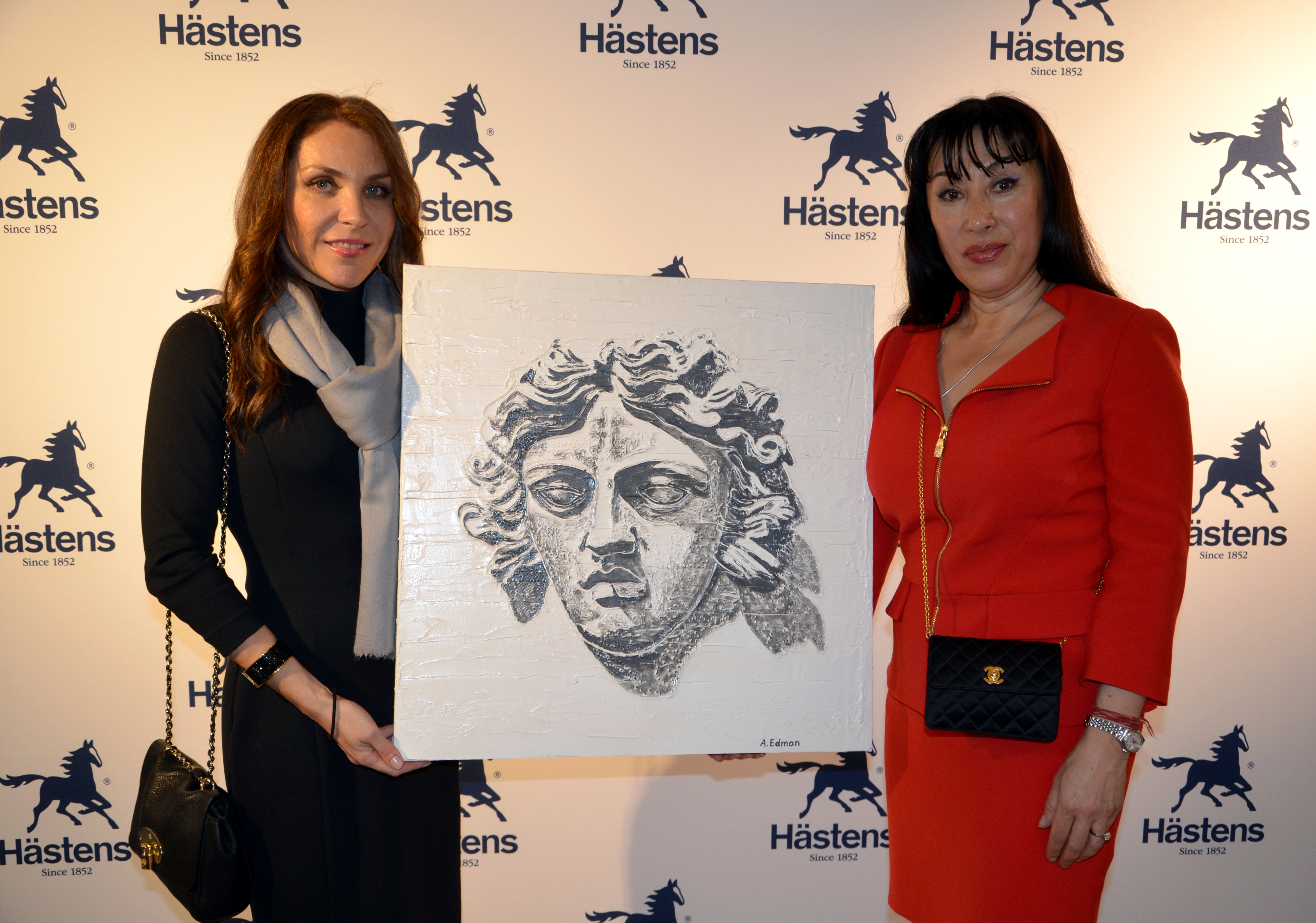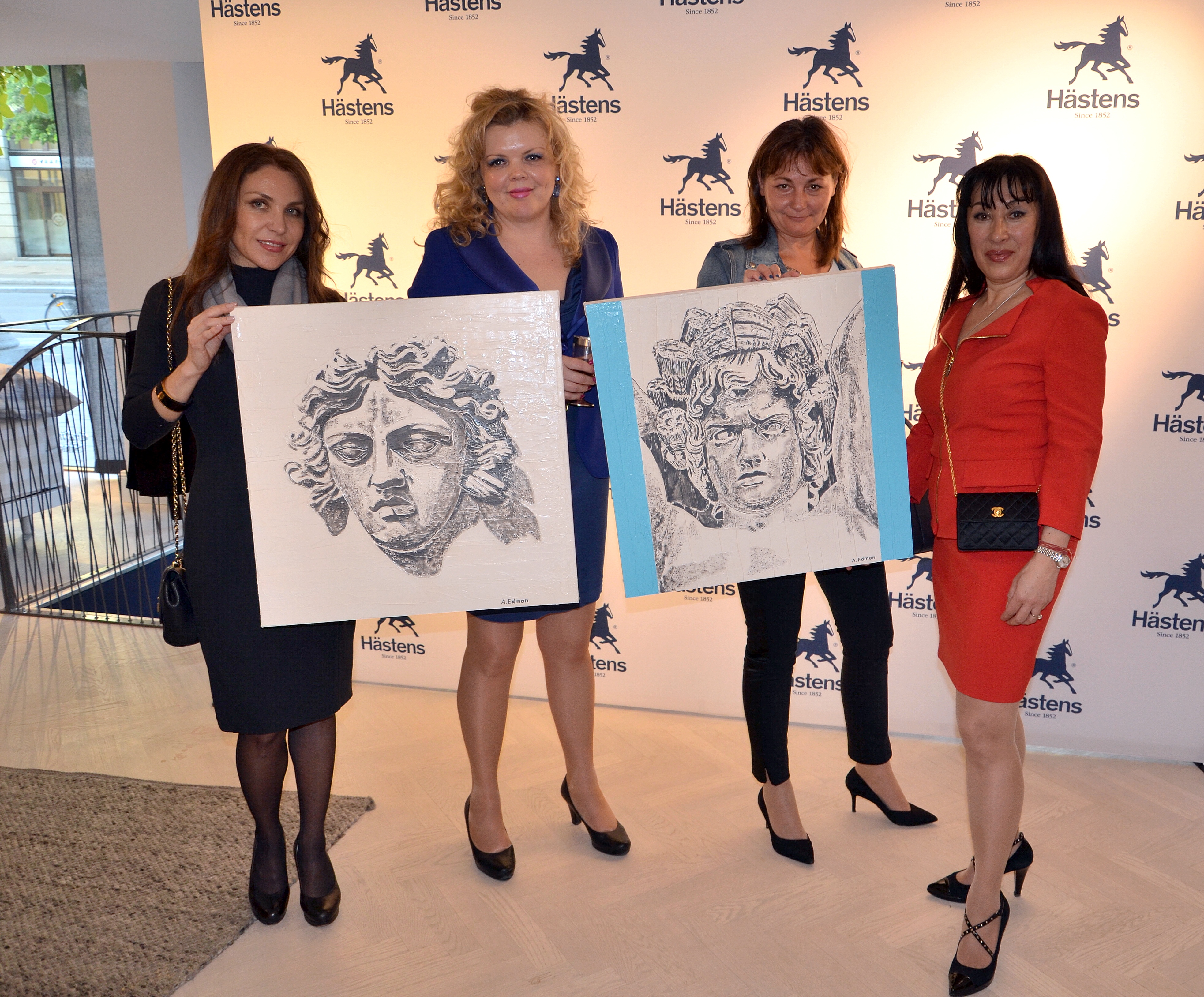 Förutom de underbara häst skulpturerna, som är huvudobjekt till den tysta auktion, fanns också målningar av konstnären Anna Edman, vilka också ingår i Charity projektet. Två av målningarna, som ställs ut, blev donerad av konstnären till Childhood Foundation grundad av HM Drottning Silvia i Sverige. Anna var också med oss ikväll.