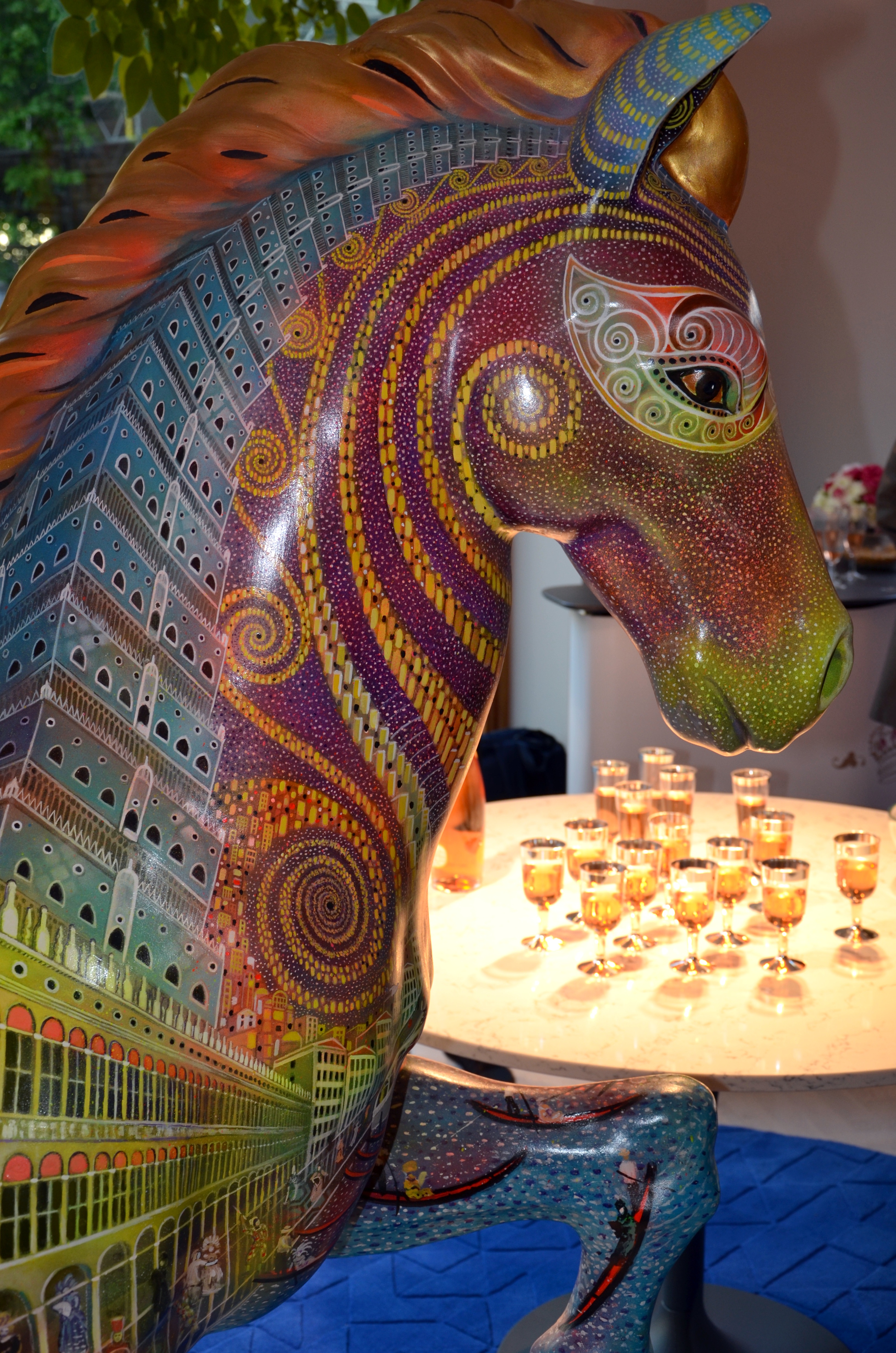 Det firades häst i olika konstarter i syfte att samla in pengar till olika Royal Charities. Den fantastiska häst skulpturen ”Manifesto” skapad av konstnären Caio Locke (Storbritannien), har gjorts på beställning av The Chakravarty Cup, och ingår i objekt, som ska säljas på vår tysta auktion till förmån av ”The Prince’s Trust” foundation grundat av HRH Prince Charles of Wales. På besök var också Mr. Saroj Chakravarty från London, grundare av The Chakravarty Polo Cup och patron of ”The Prince’s Trust” foundation, med under kvällen. Totalt finns det två Chakravarty Cup Horse häst skulpturer i Sverige för tillfället. Vår förhoppning är att de blir sålda. Men det finns fler hästskulpturer, målade av andra konstnärer på beställning i London. Meningen är att de skall presenteras i olika delar av världen och säljas med syfte att samla in pengar till Prins Charles av Wales Foundation. Det planeras fler fina events i framtiden för att visa bl a dessa skulpturer.