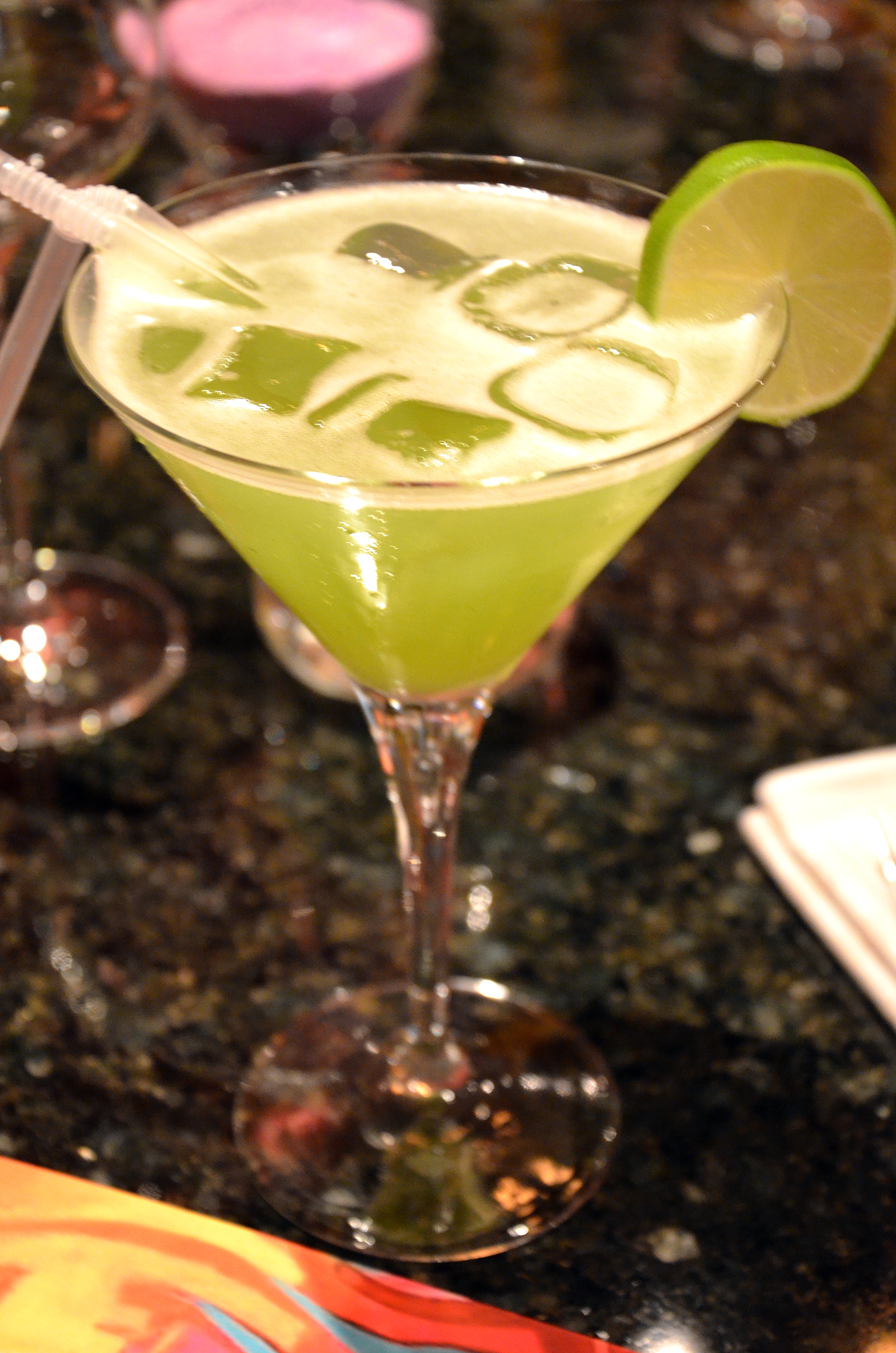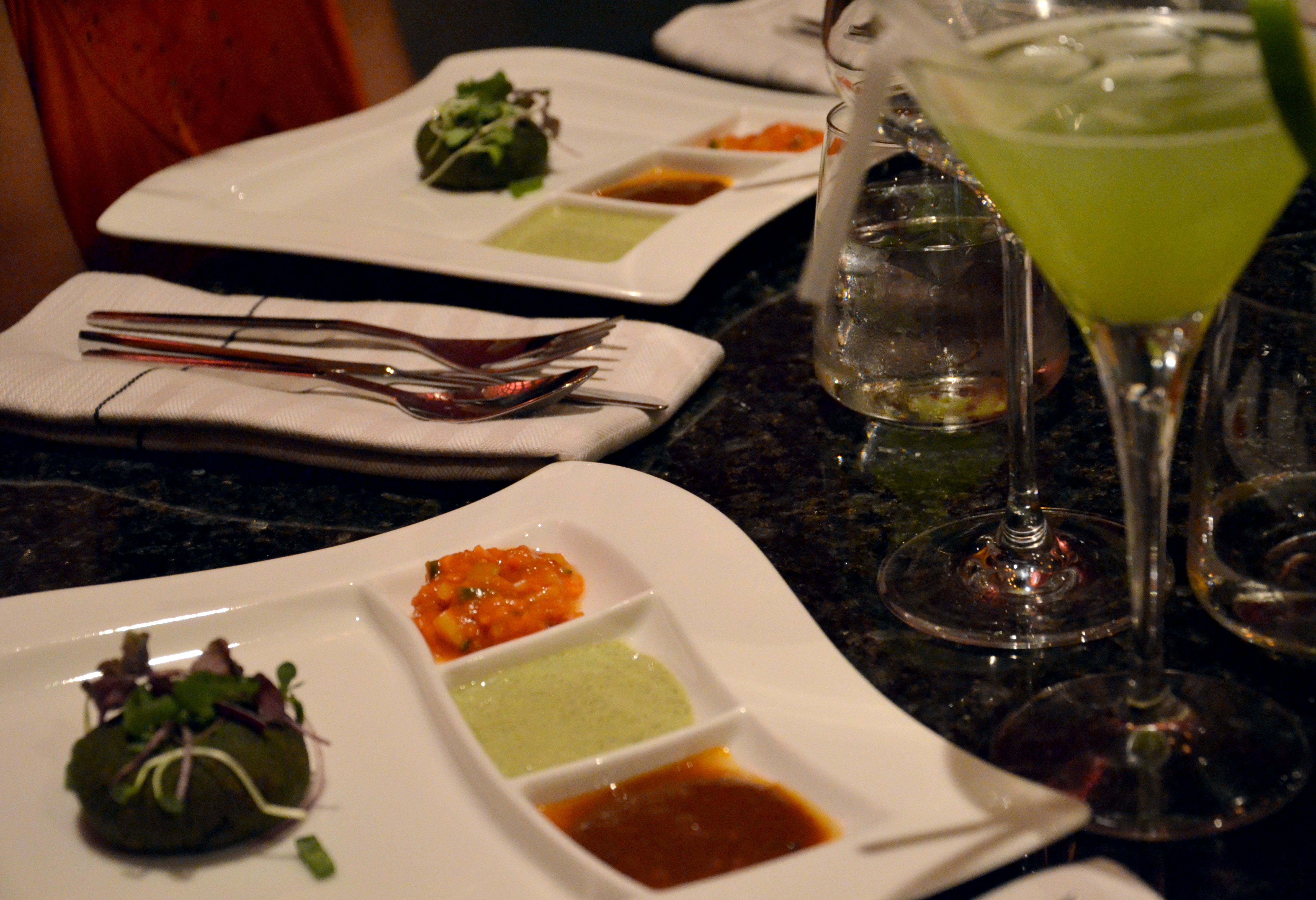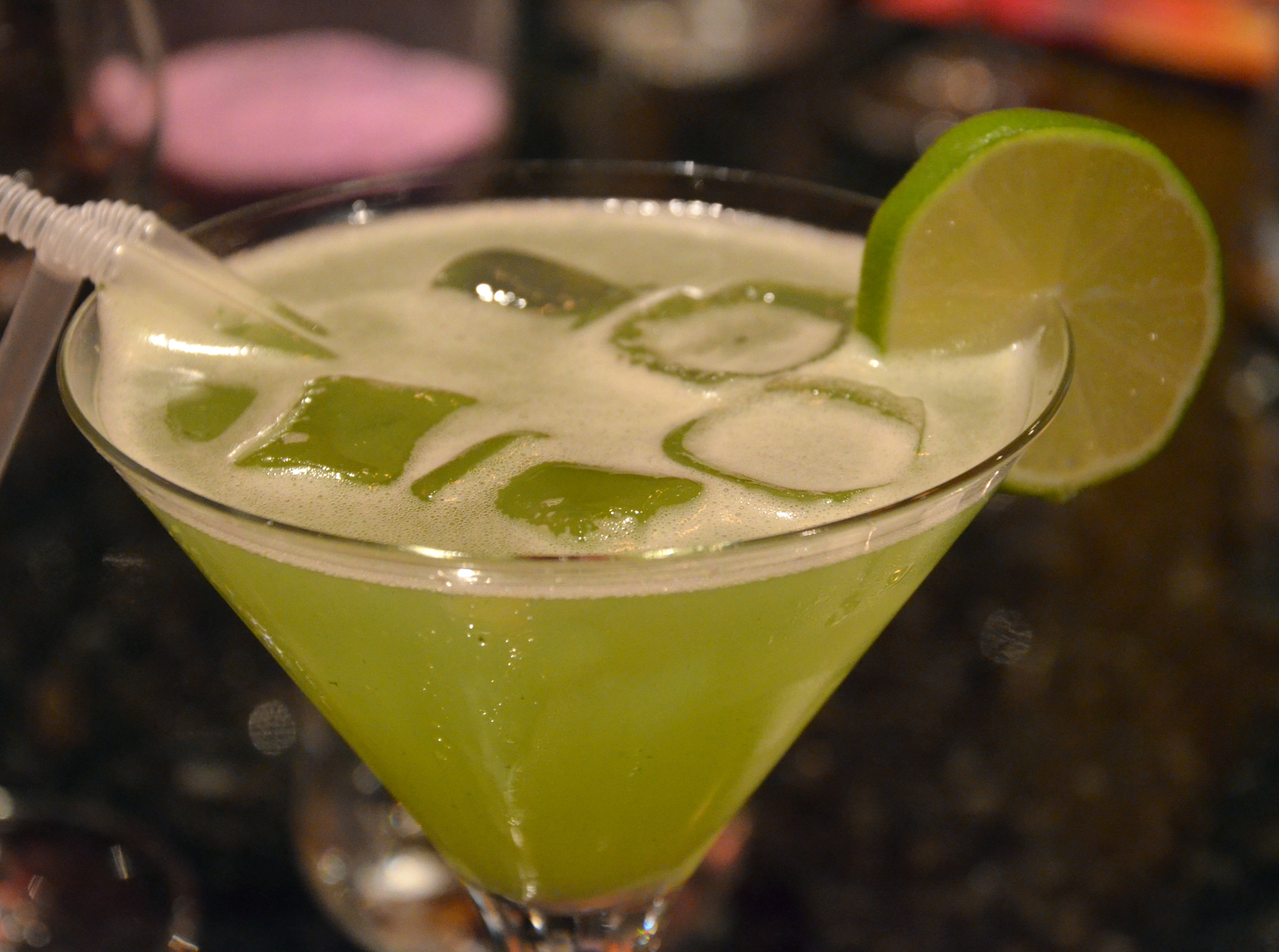 Dryck: Nirvana: Gin, lime, koriander, citrongräs, socker (Alla drinkar 5 cl.alcohol.) Även alcoholfri.