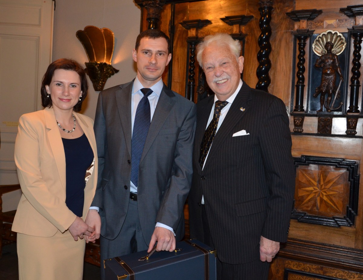 Rysslands militärattaché Dmitry Tkachenko och fru uppvaktar med en magnifik rysk teservis.