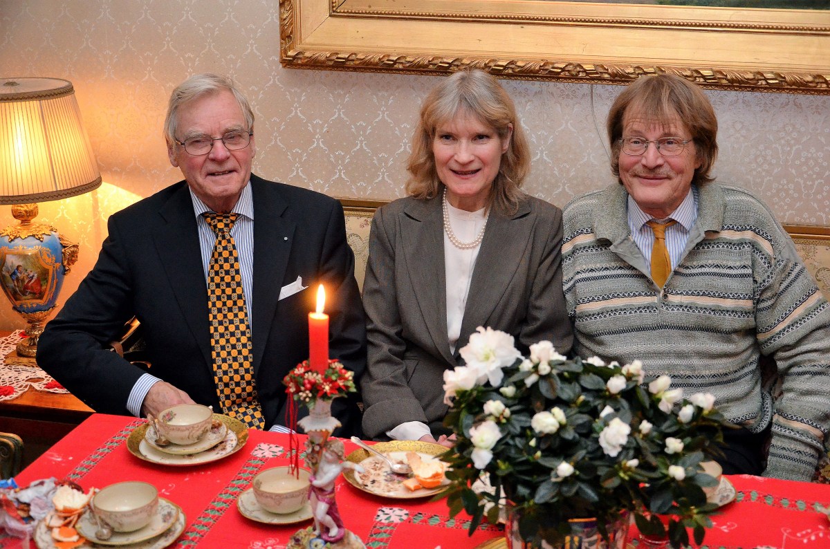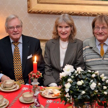 1. Trevlig trio i salongssoffan. Gen.dir, Jan Olov Carlsson, Musikläraren Kenny Säfström och Professor Lars Engman.