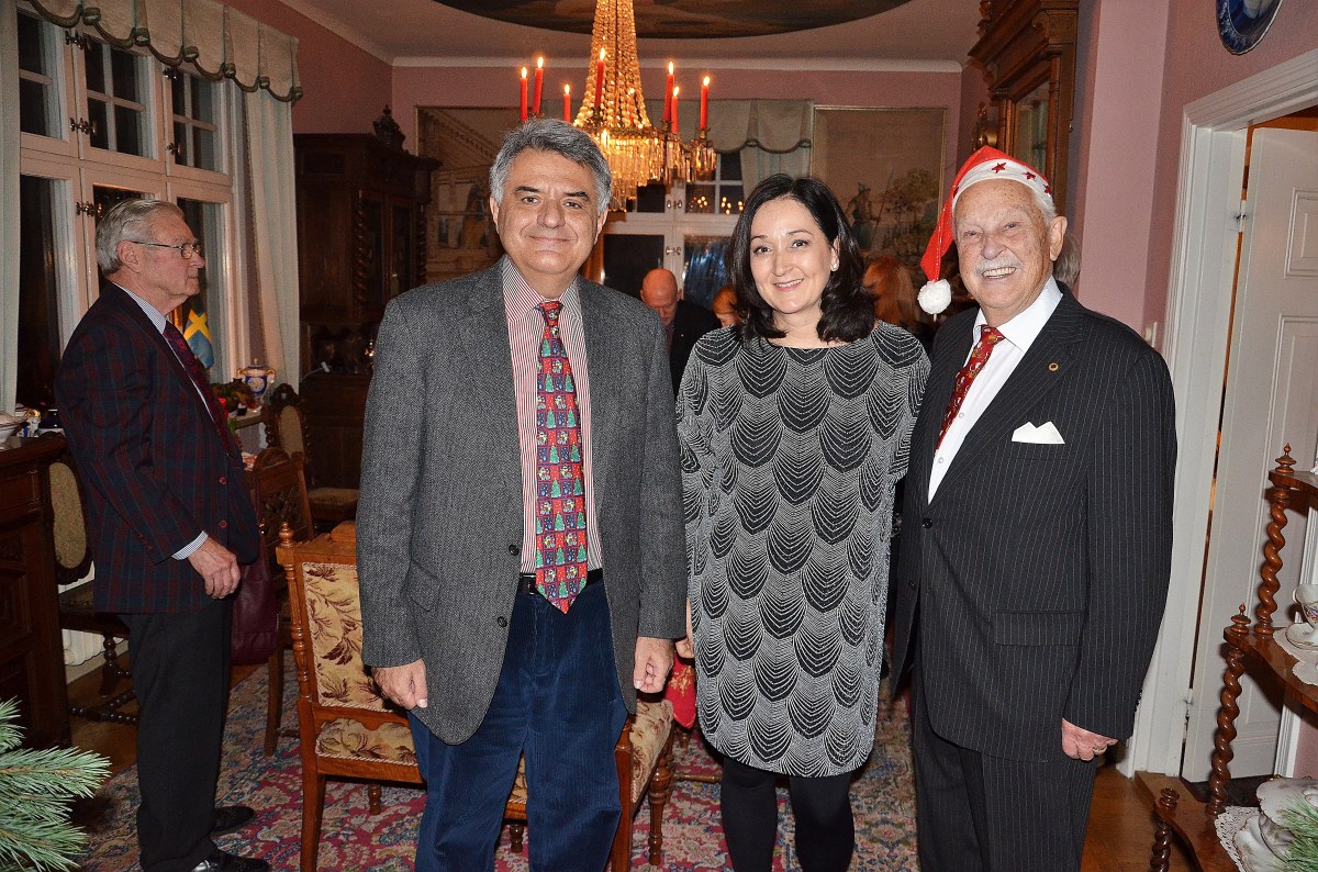 Mezzosopranen Katarina Karnéus, senast som Norma på Göteborgs Opera, Greklands ambassadör Dimitros Touloupas och Gösta. Vid fönstret Gen.dir. Jan-Olov Carlsson.