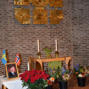 Vackra blommor från Samiras Blommor omgav Karl-Otto Hagen-Olsen´s porträtt.