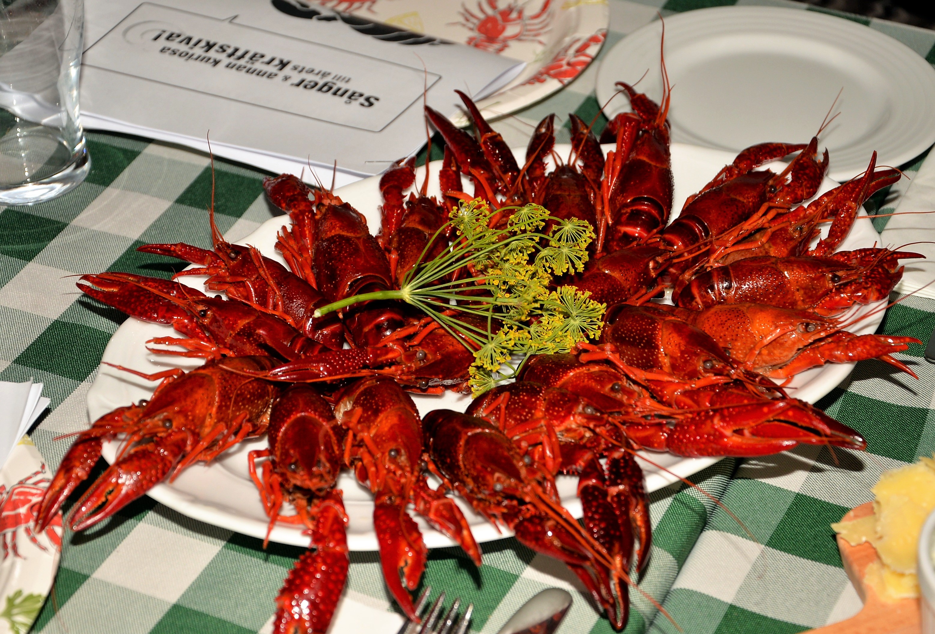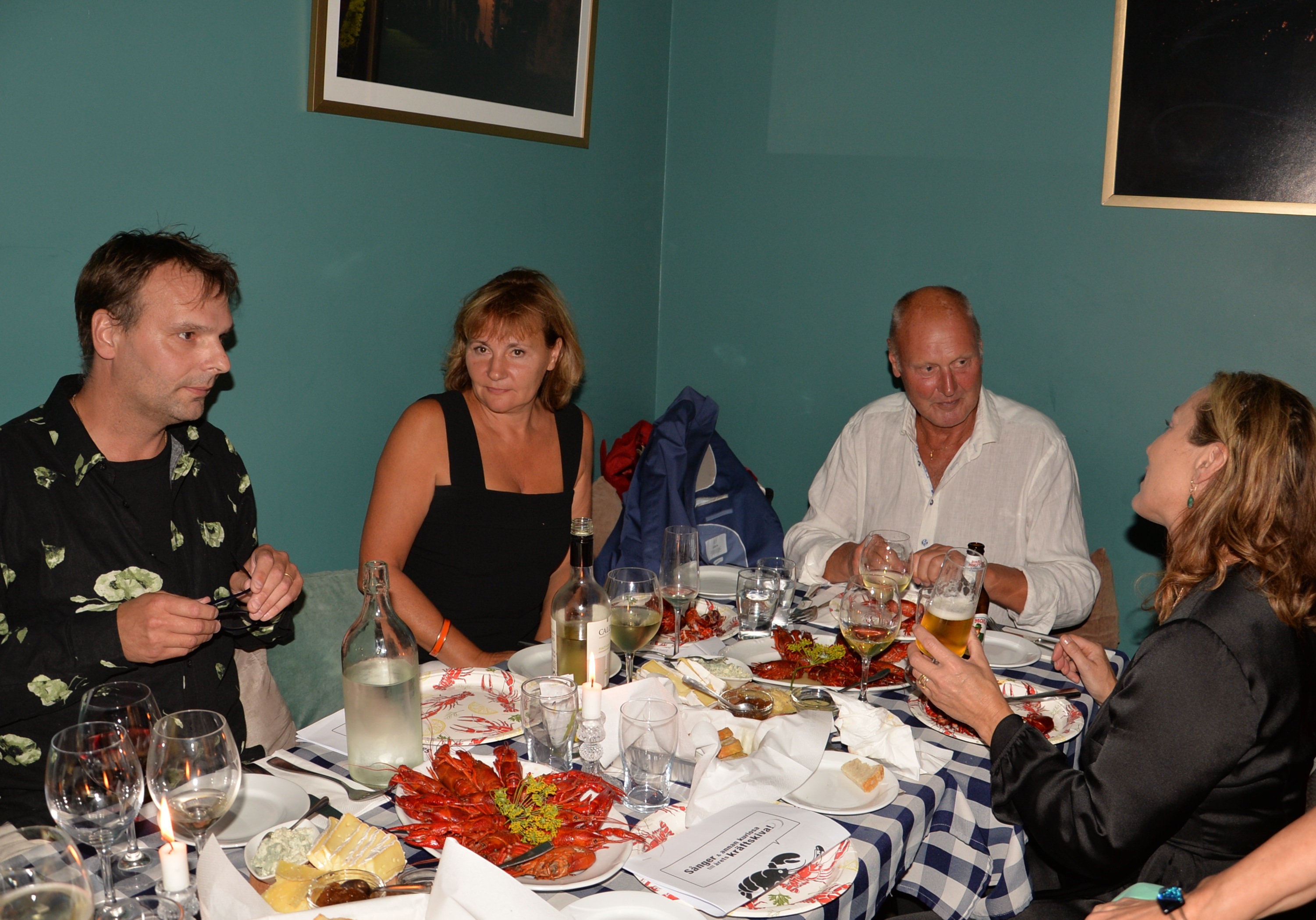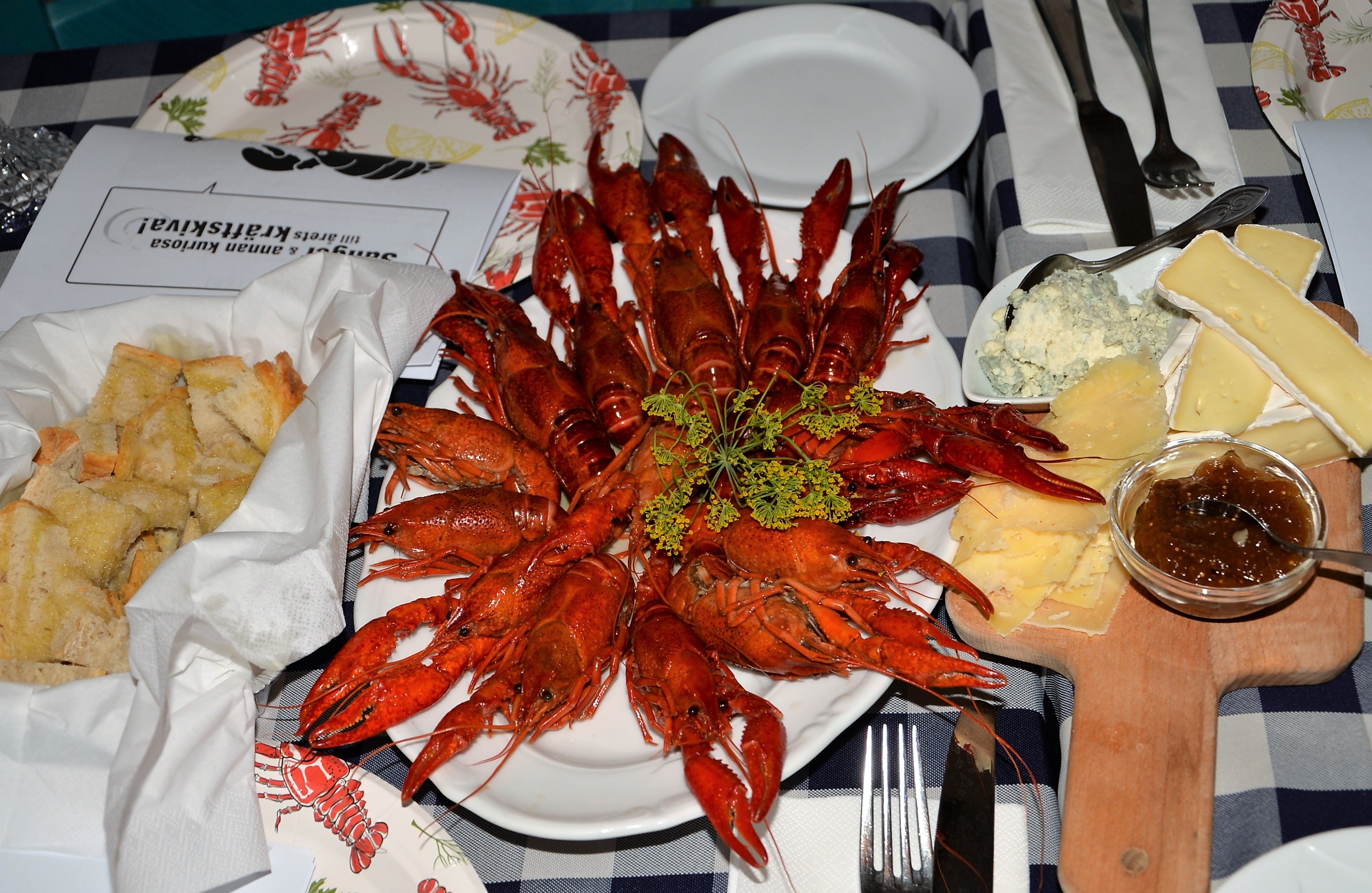 Det serverades välkomstdrink, kräftor och härlig ostbricka!