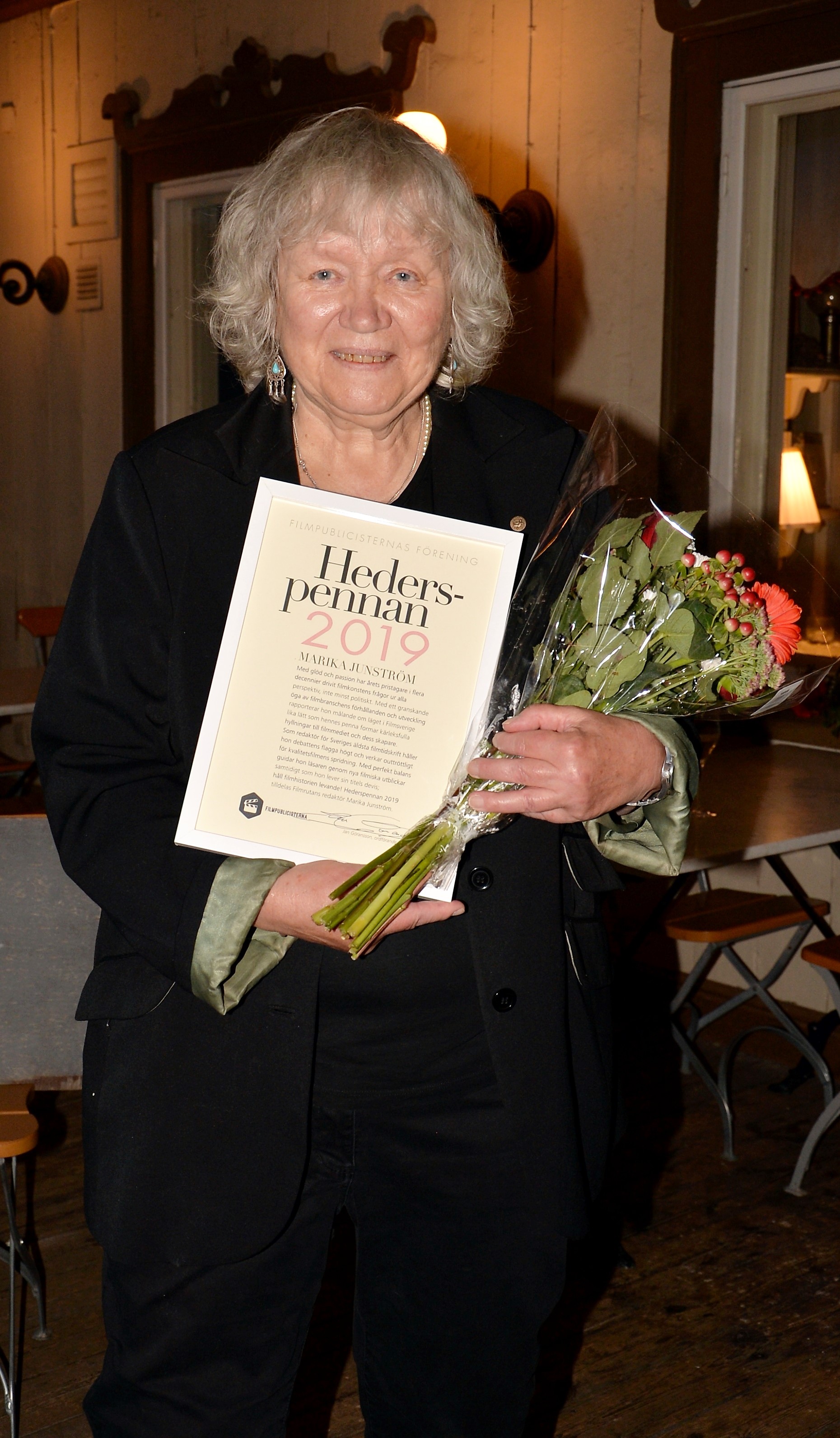 Hederspennan, för lång och trogen tjänst inom filmjournalistiken, tilldelas Marika Junström.