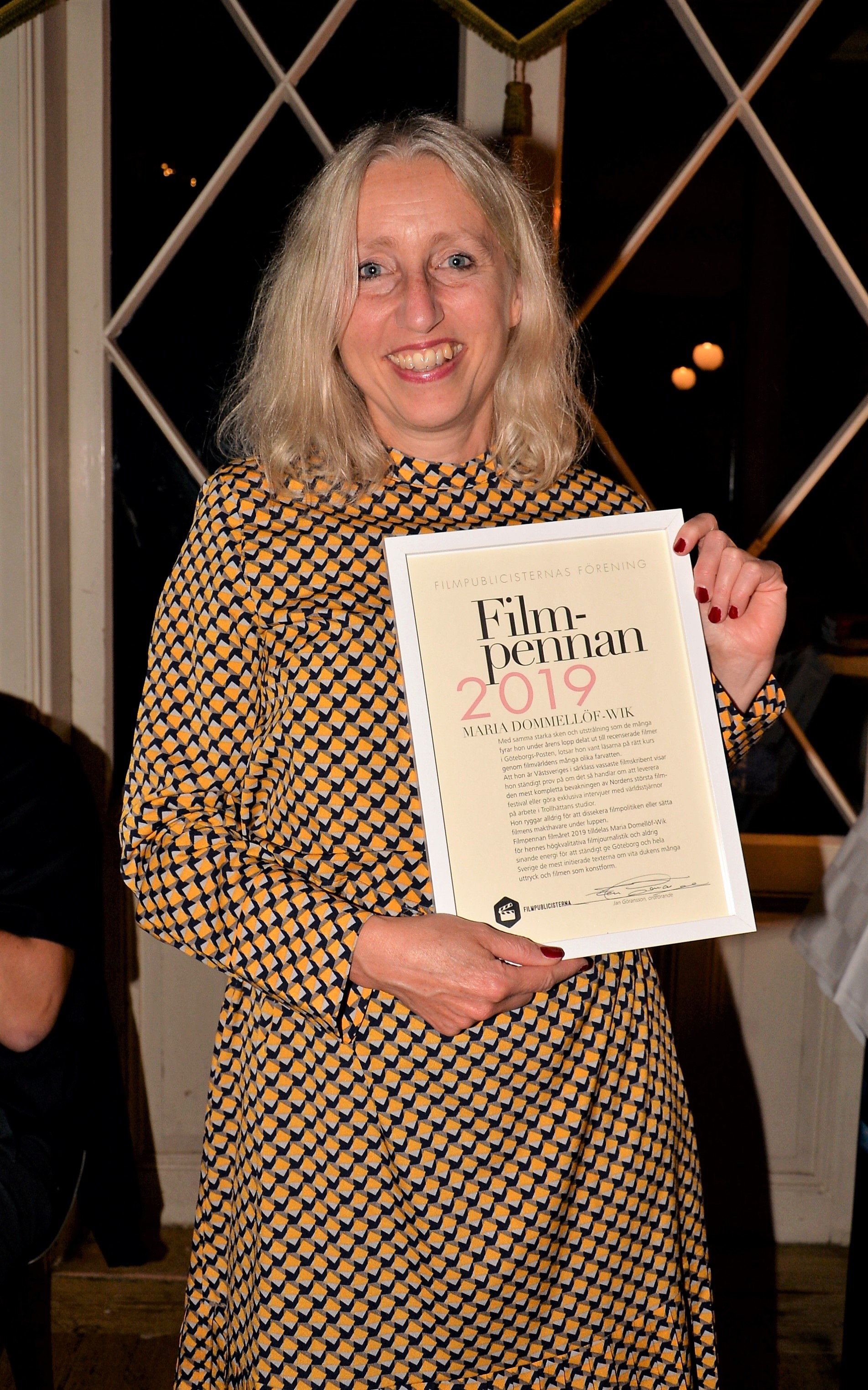 Filmpennan, för framstående filmjournalistiska insatser, tilldelas Maria Domellöf Wik, Göteborgs-Posten.