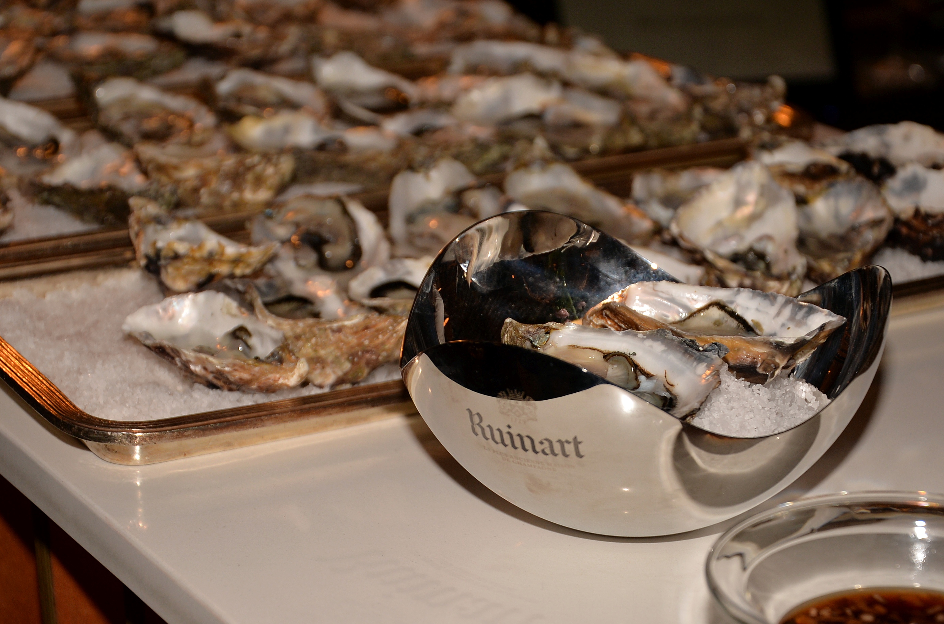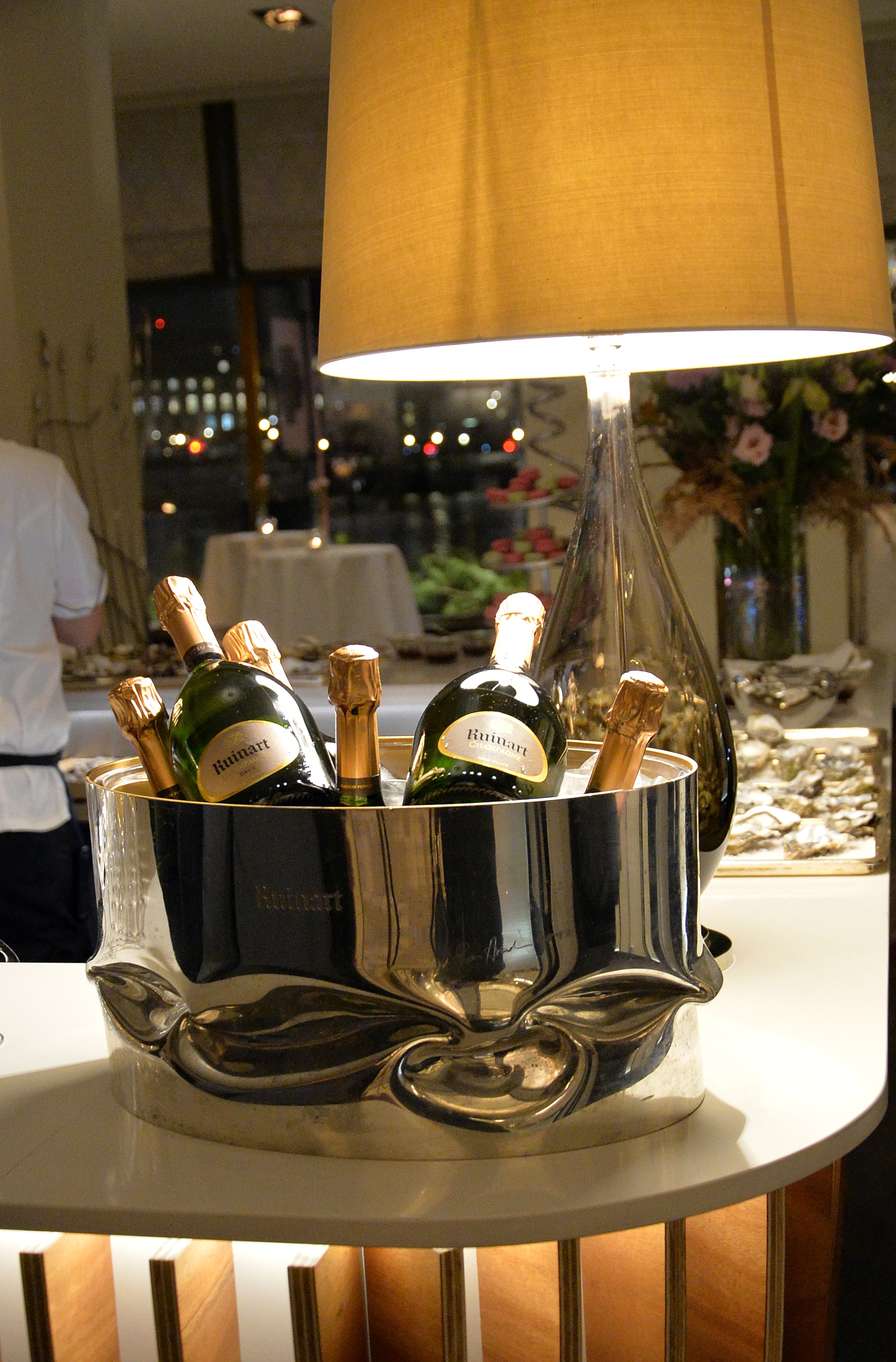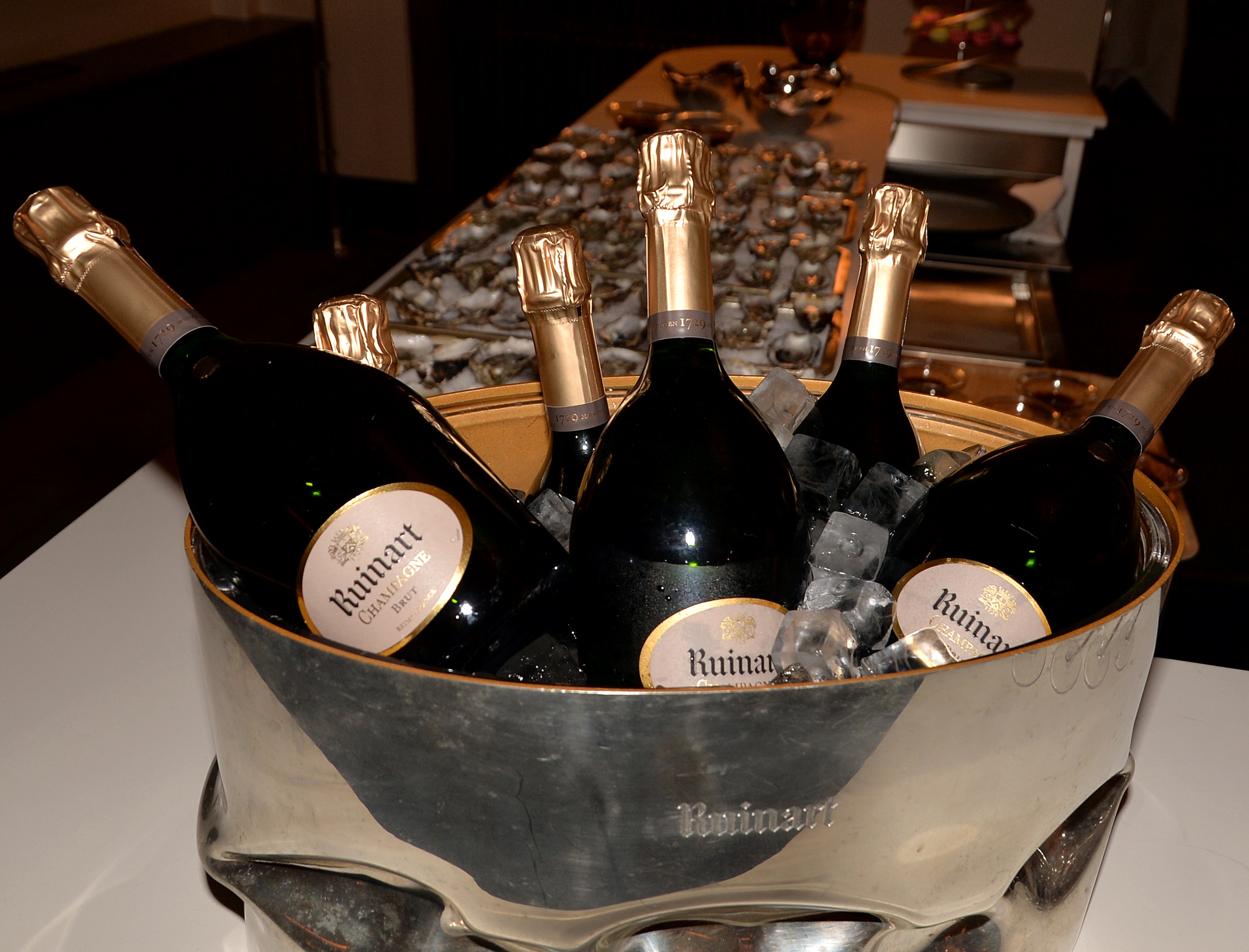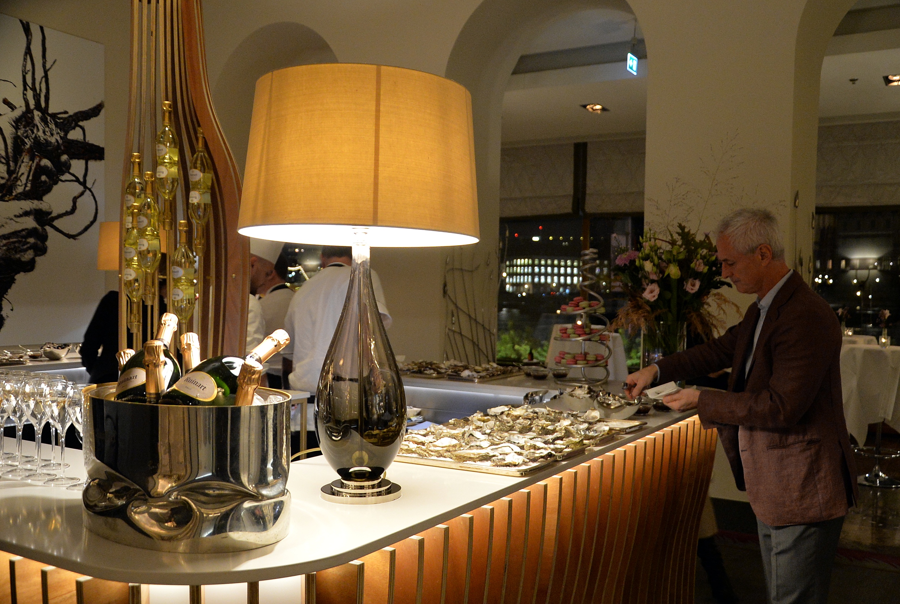 Under kvällen serverades ett urval av champagne, ostron och kanapéer.