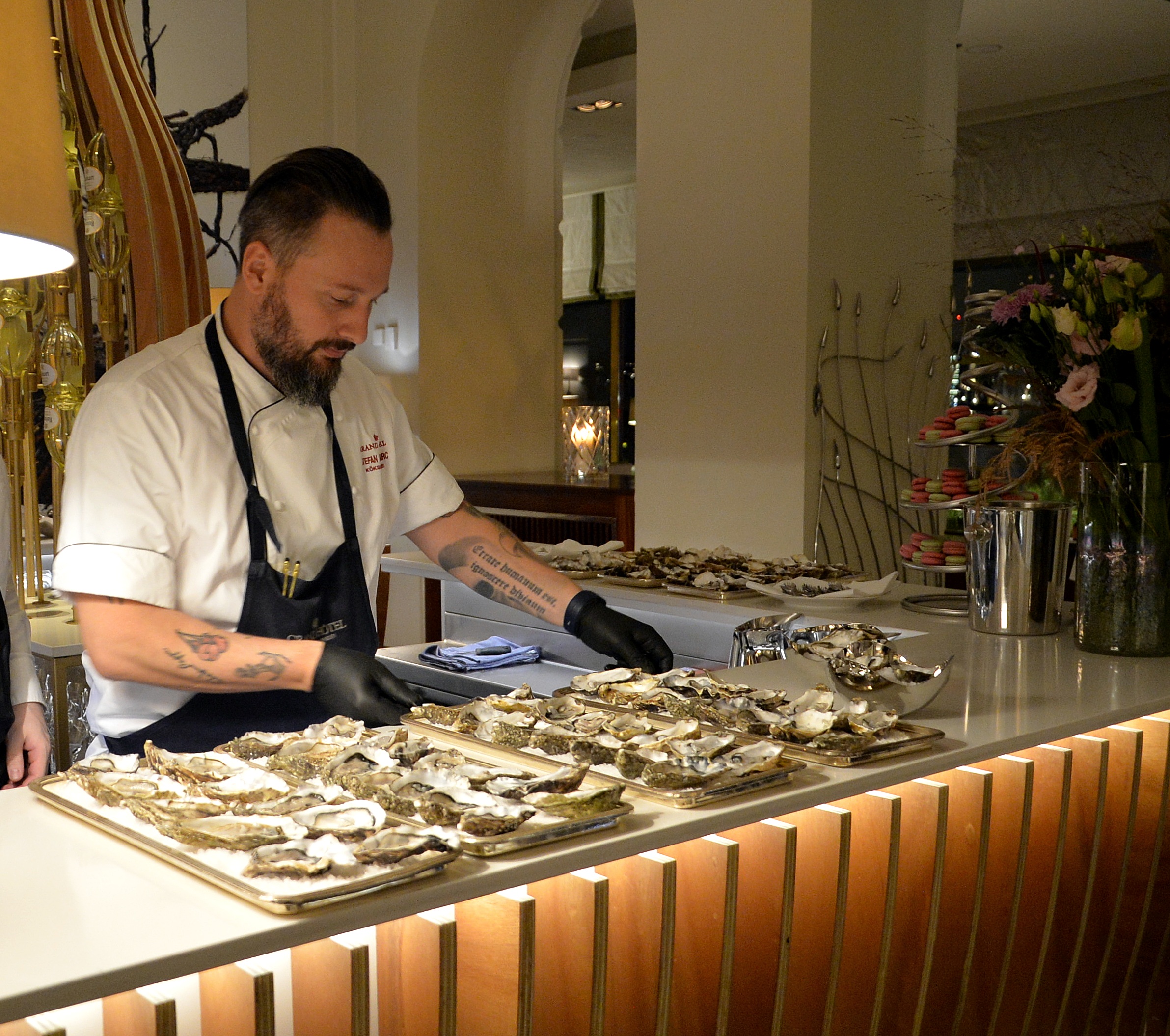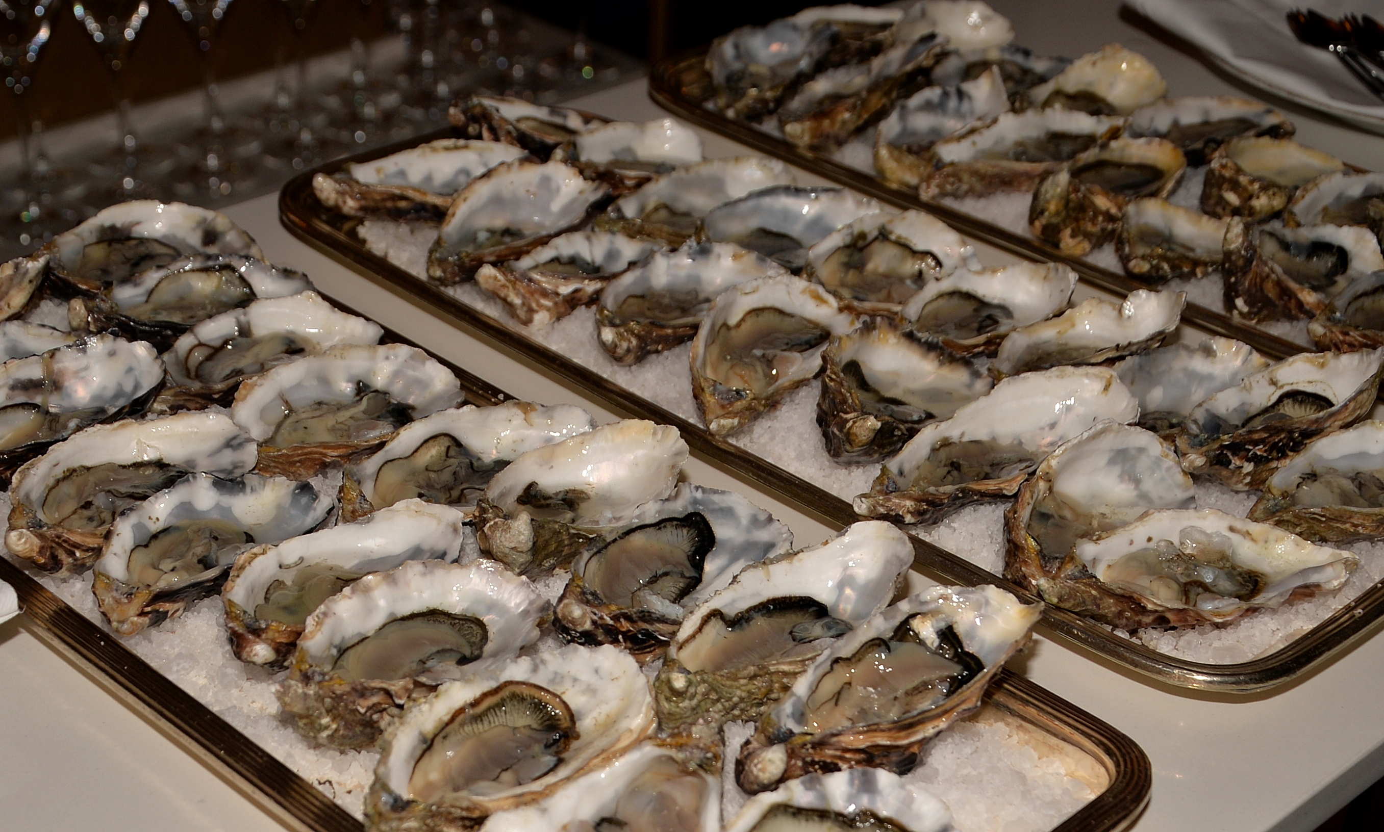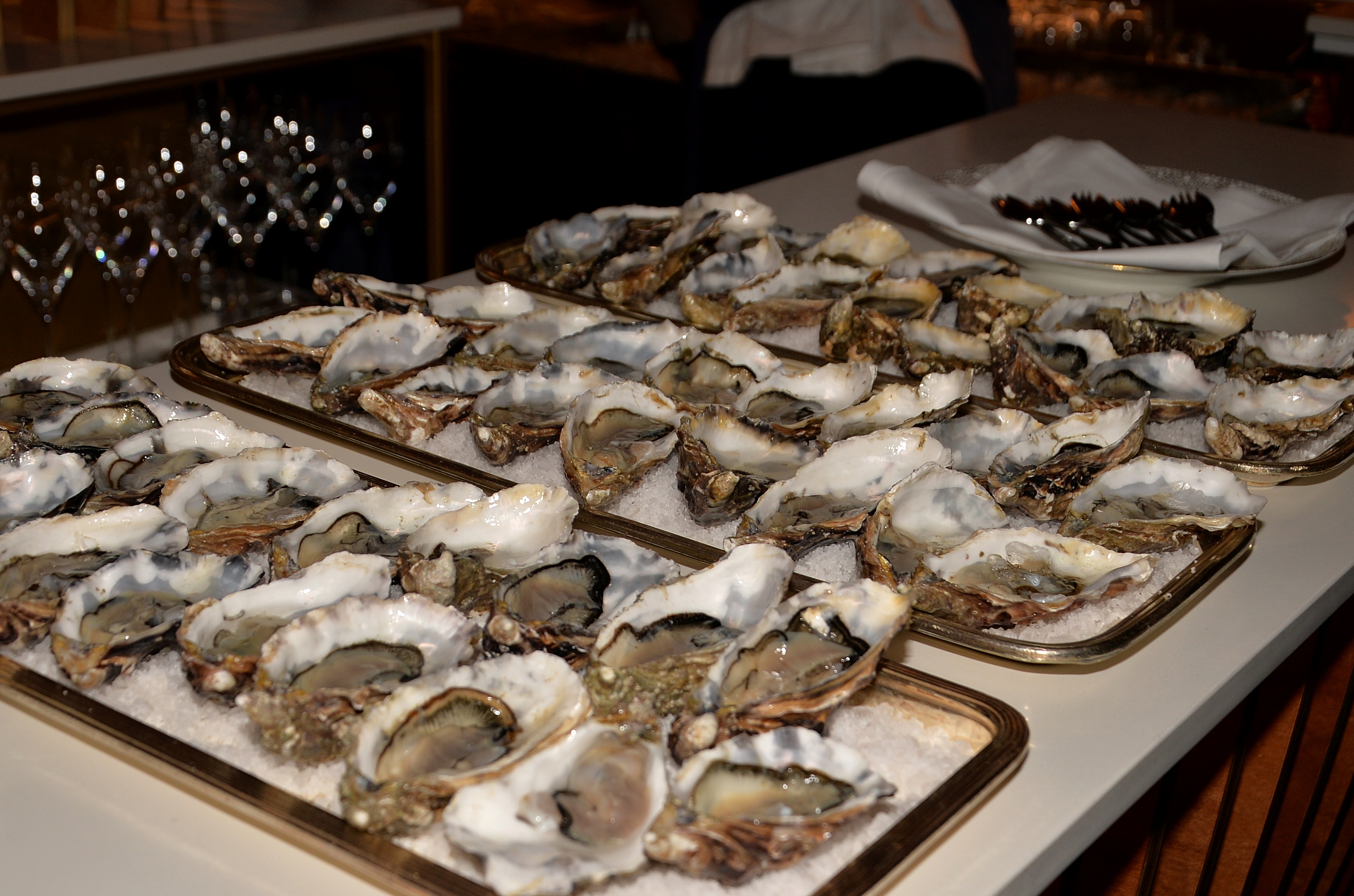Under kvällen serverades ett urval av champagne, ostron och kanapéer.