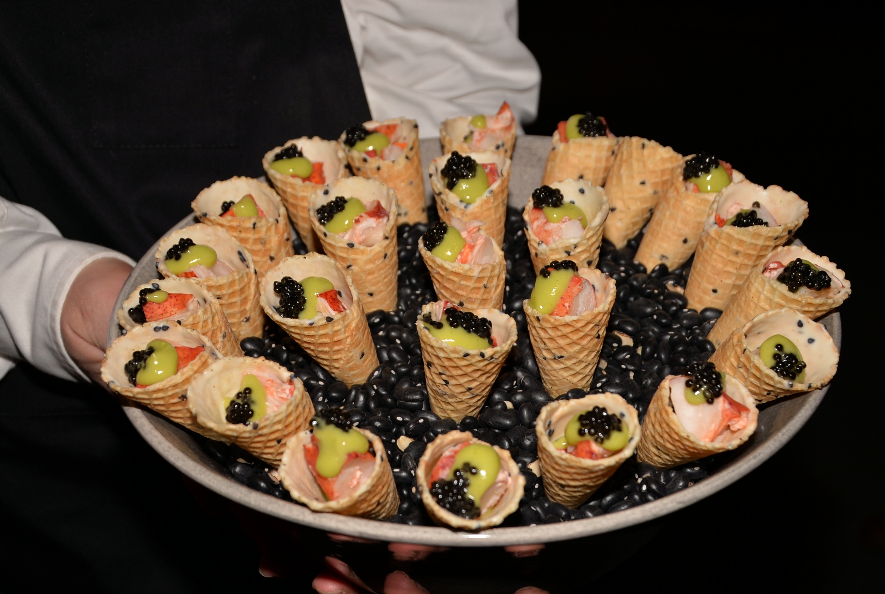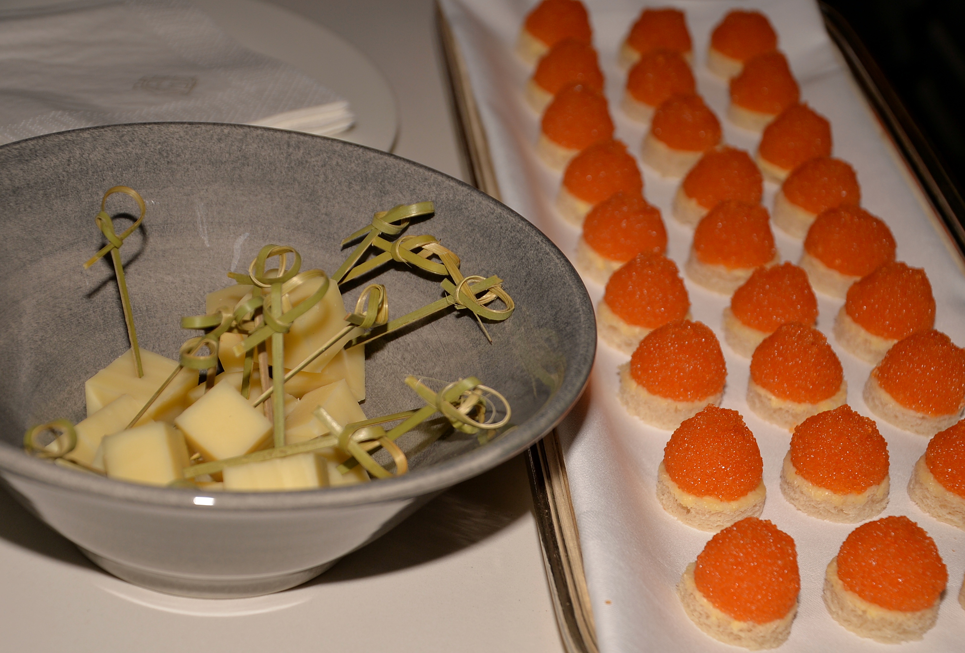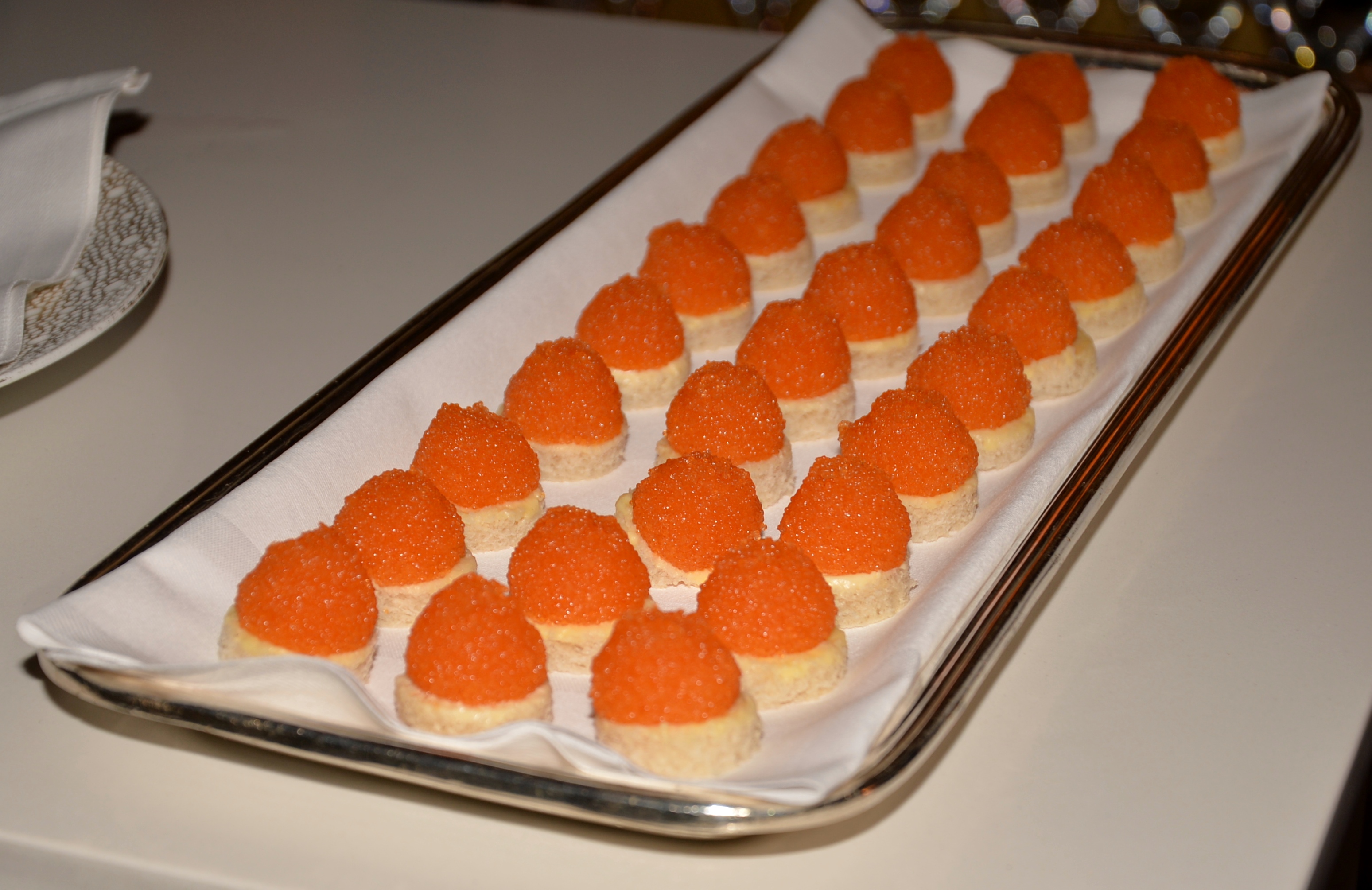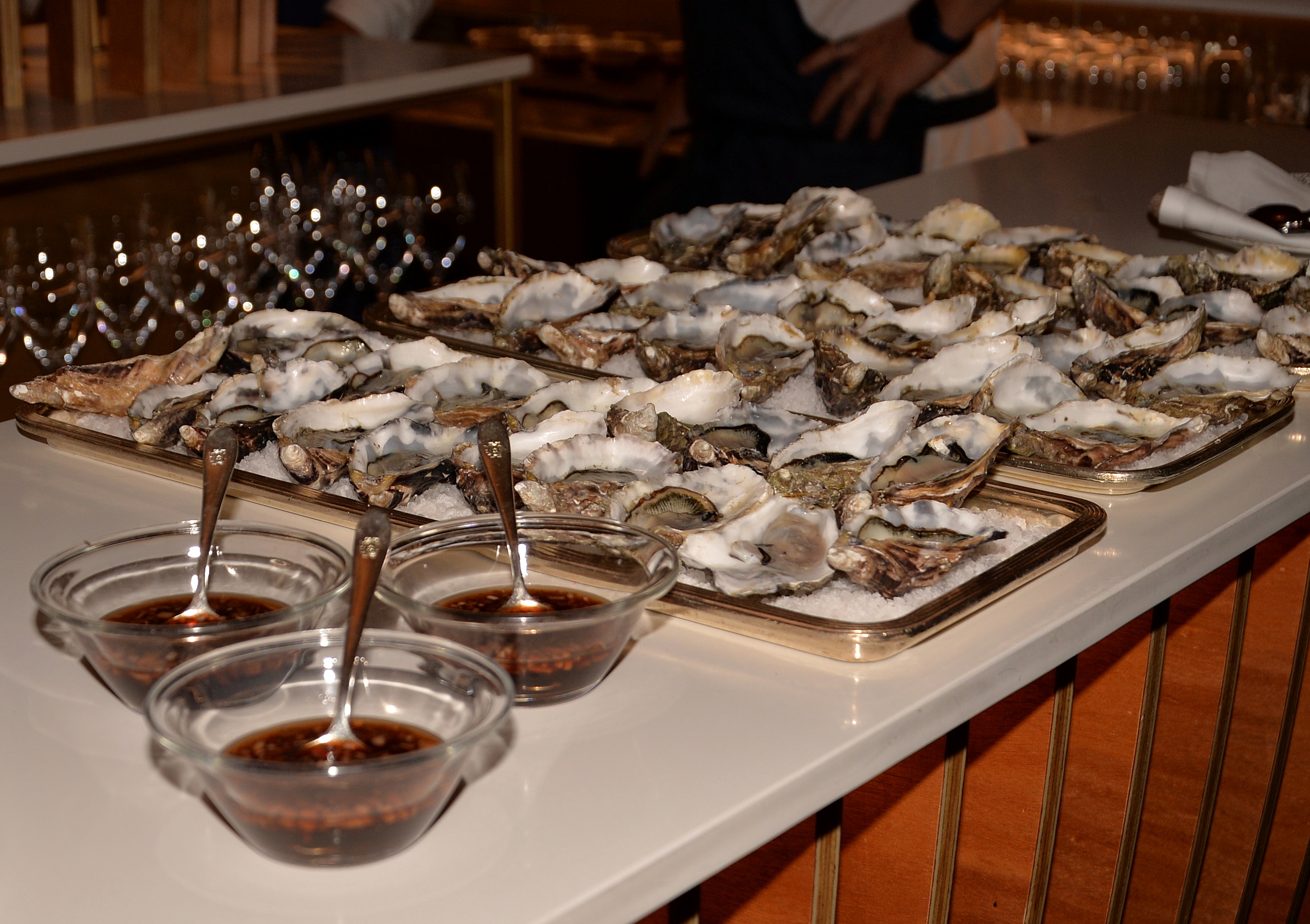 Under kvällen serverades ett urval av champagne, ostron och kanapéer.