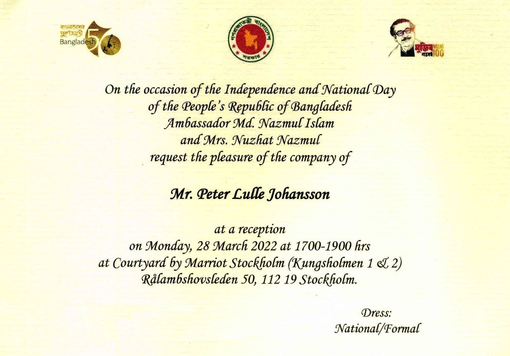 The Independence Day of Bangladesh is celebrated every year on March 26. It is the national holiday of Bangladesh that commemorates the country’s independence from Pakistan in 1971. On the morning of March 26, 1971, Sheikh Mujibur Rahman declared Bangladesh’s independence from Pakistan, which were known at the time as East Pakistan and West Pakistan, respectively. The day is characterized by parades, speeches, fairs, and ceremonial events to commemorate that historic day in 1971. Now we celebrated the 52 Independence day of Bangladesh in Stockholm, Sweden. See our report here: