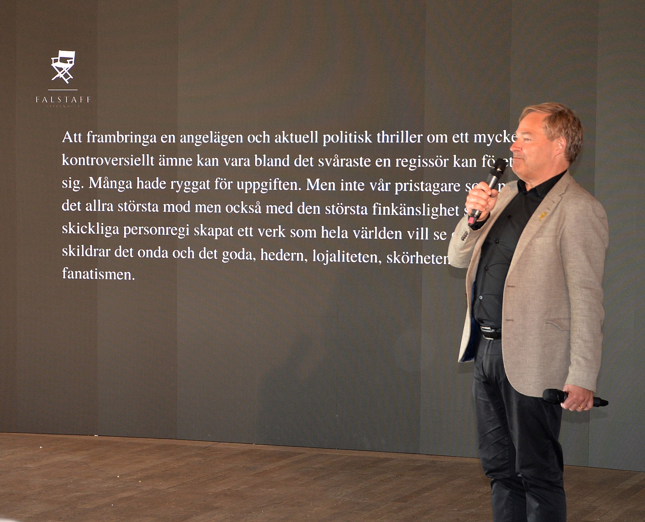 Falstaff-prisets syfte är att inspirera regibegåvningar inom teater, opera och film till fortsatt skapande. Årligen delas två stipendier om 300 000 kronor vardera ut.