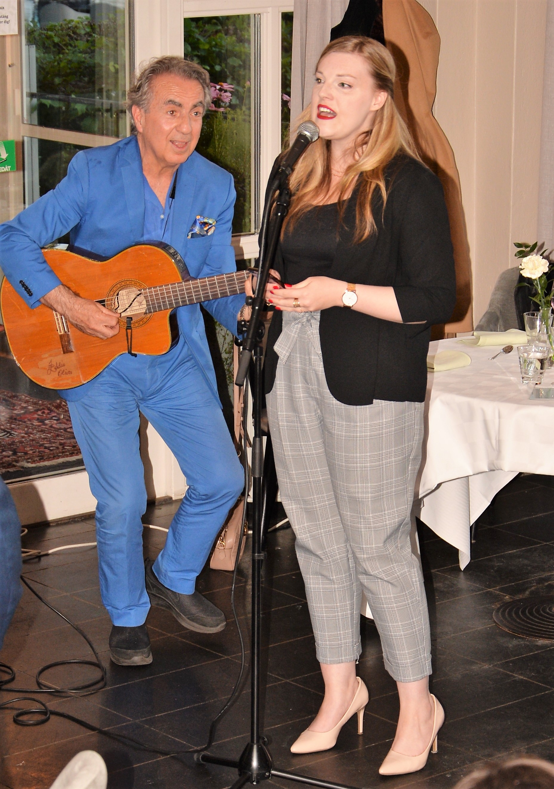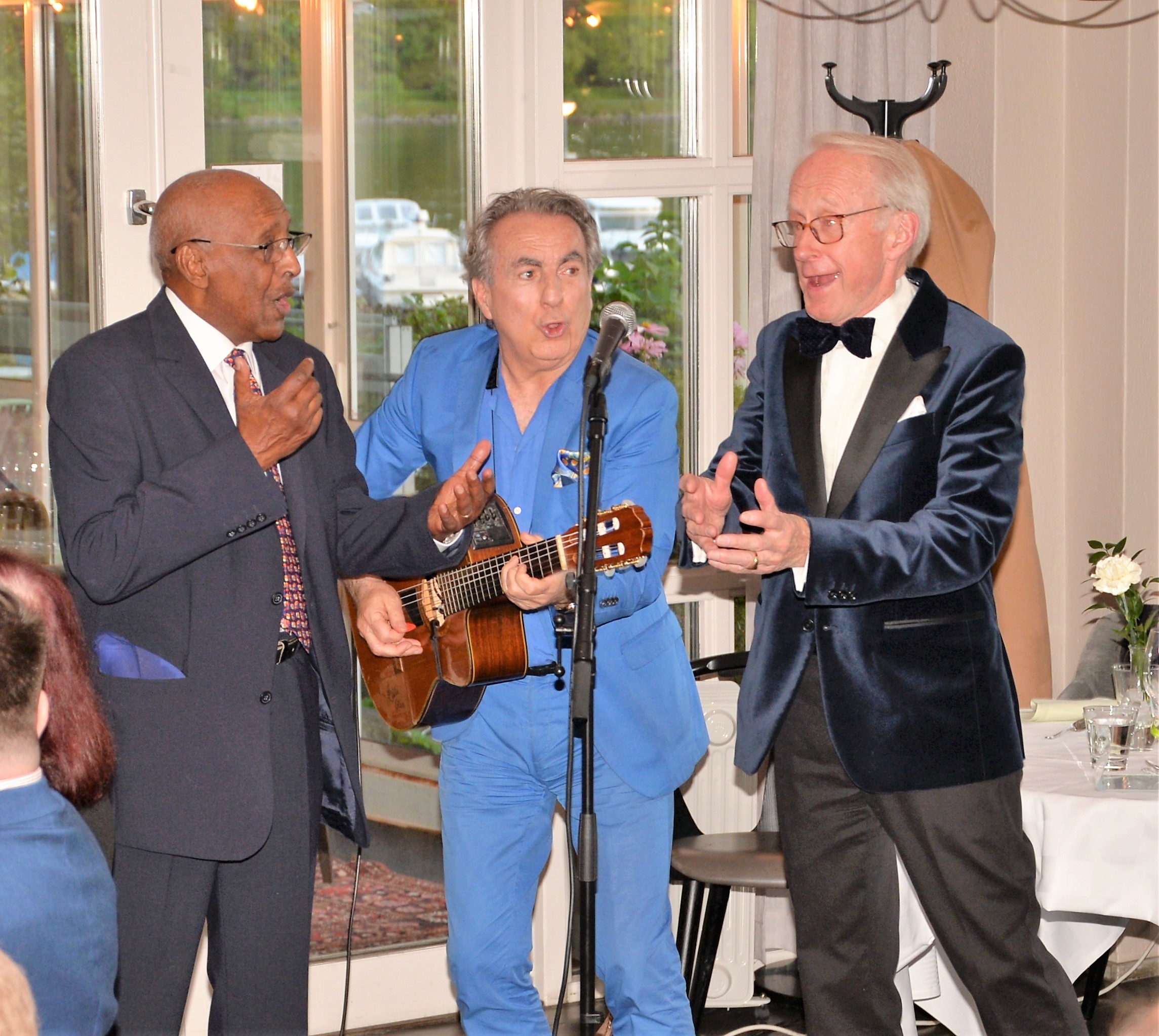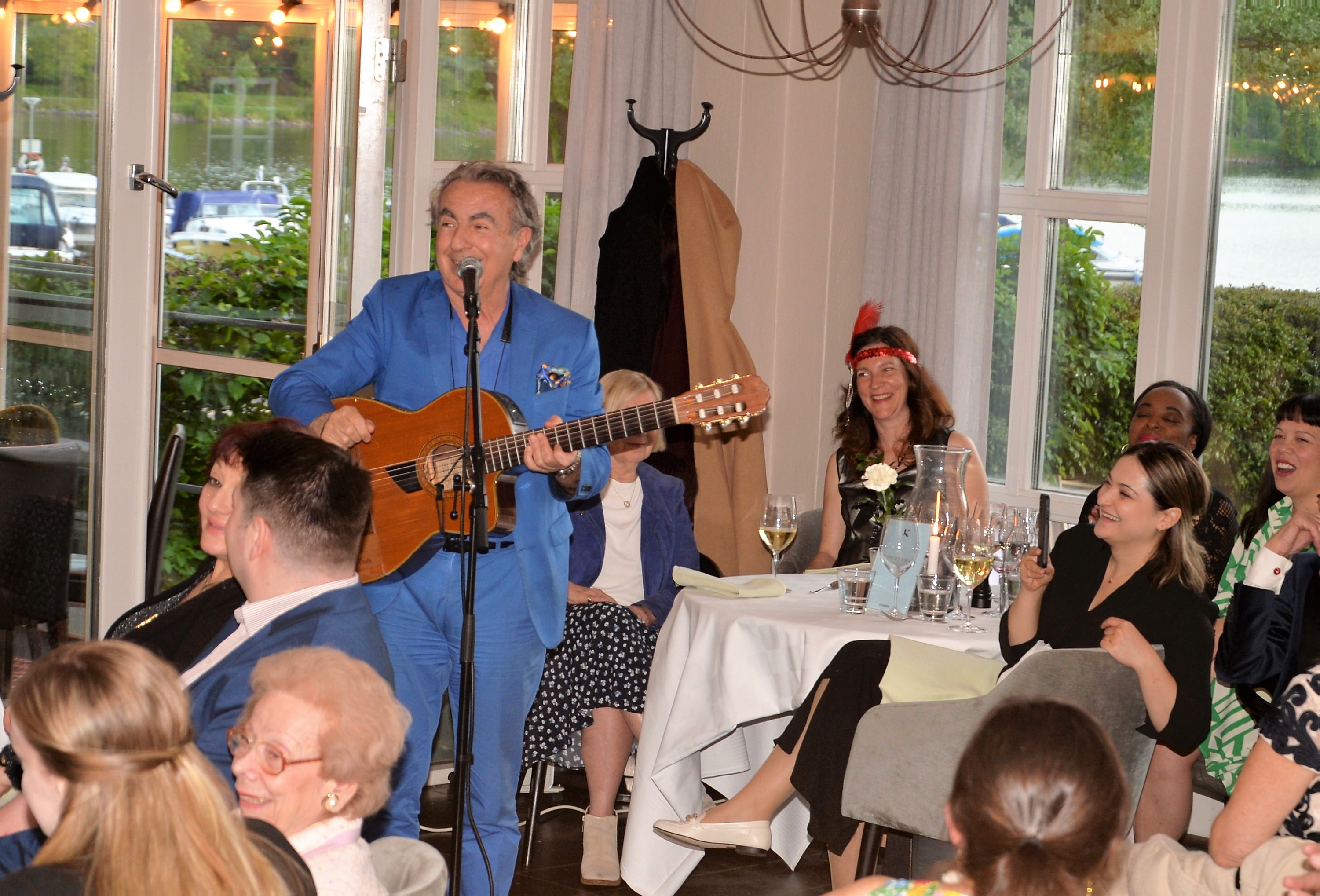 The evening continued with the main dish Chicken served with a great avocado sauce. After dinner Eddie Oliva did a show with guest stars. Dessert Creme Brulé, with more songs by Eddie Oliva See video show on YouTube: