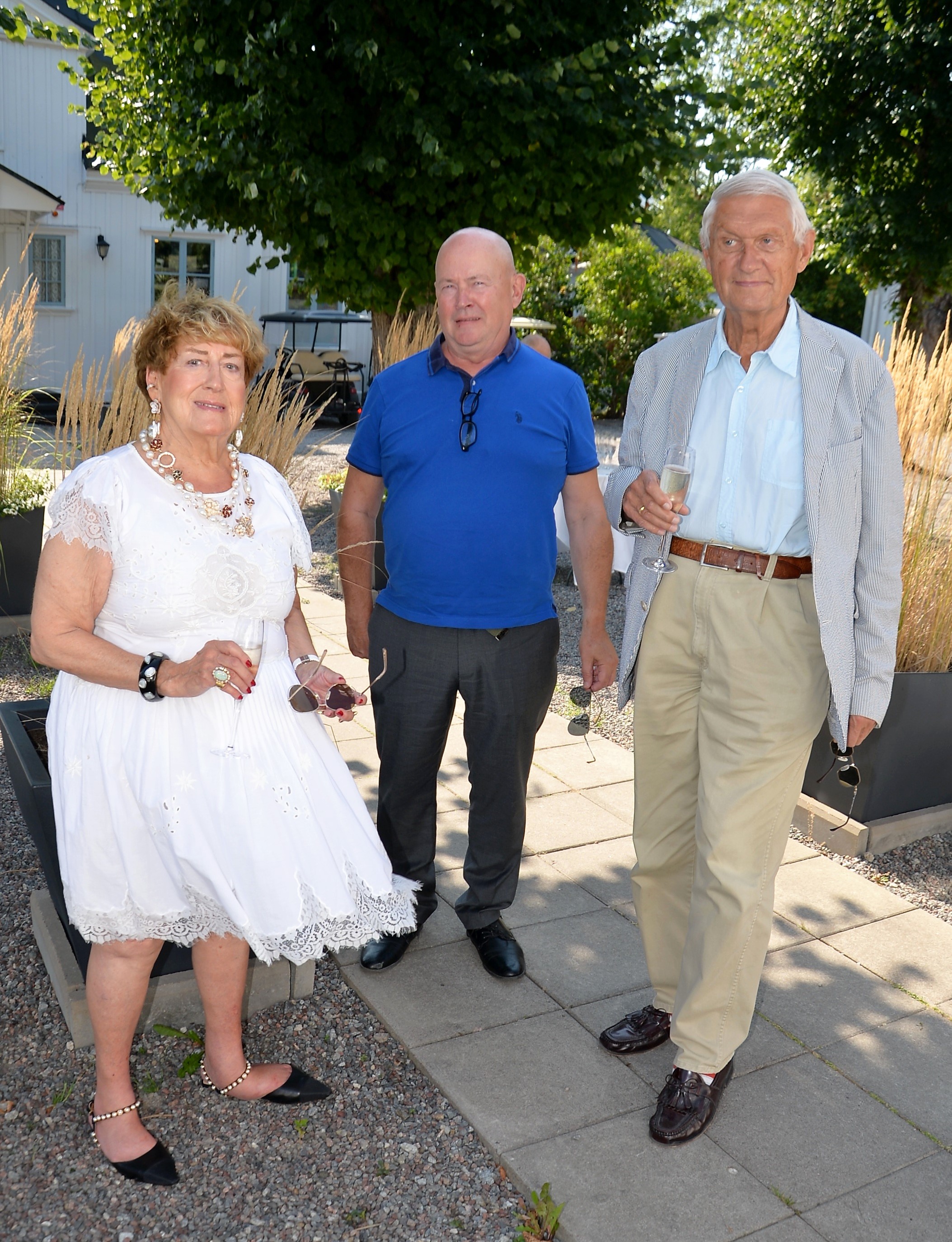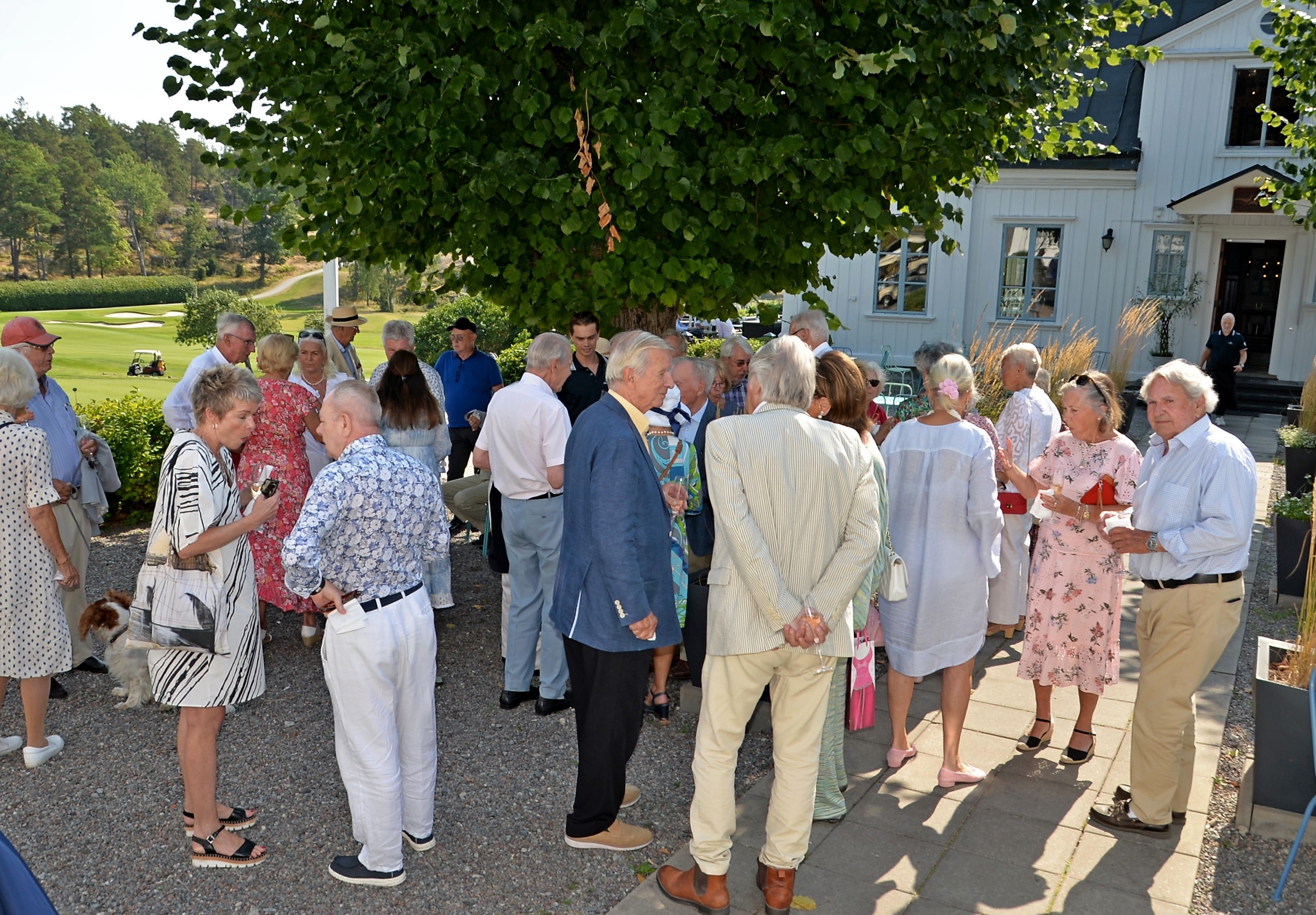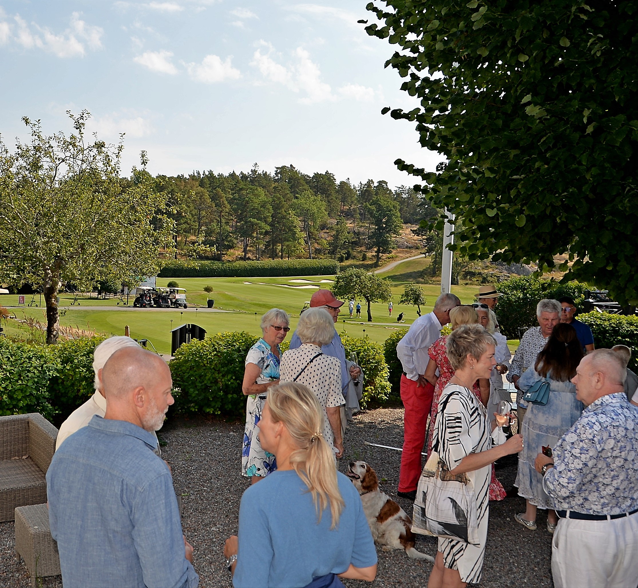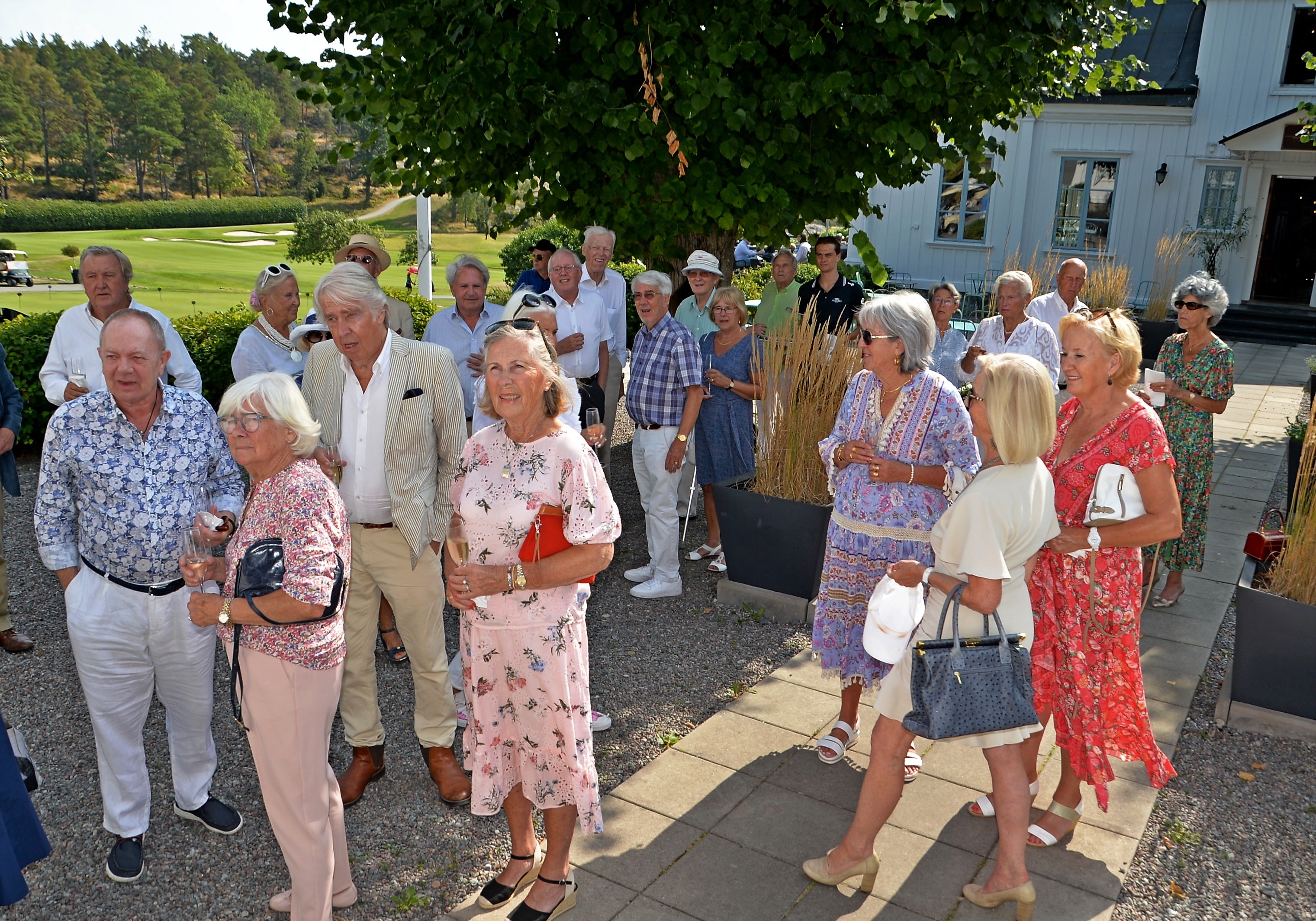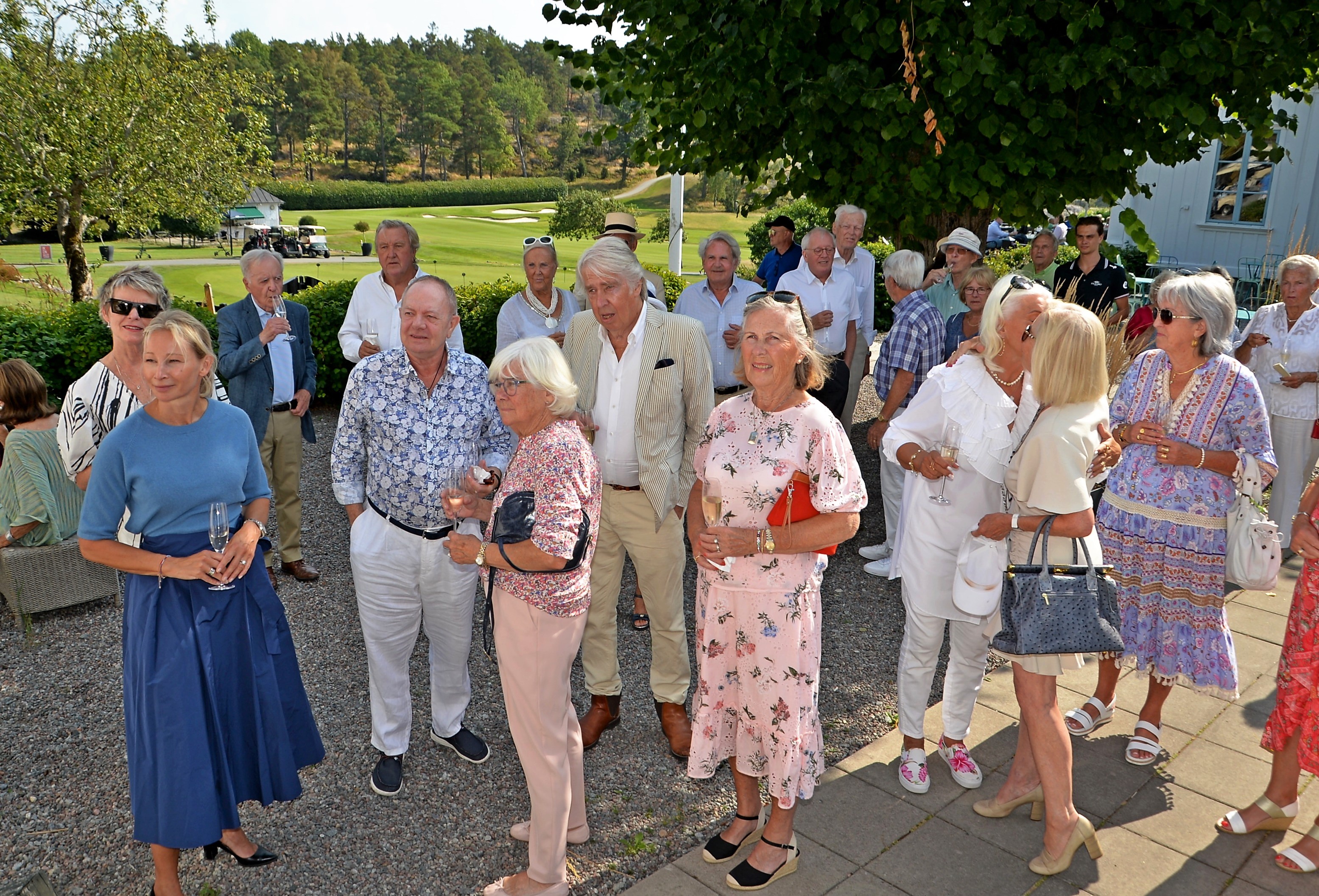 Årlig lunch med Monica Blomquist på fina Fågelbro Golfklubb. Ett 50-tal gäster var inbjudna till årets lunch, det blev bubbel med snittar utomhus.
