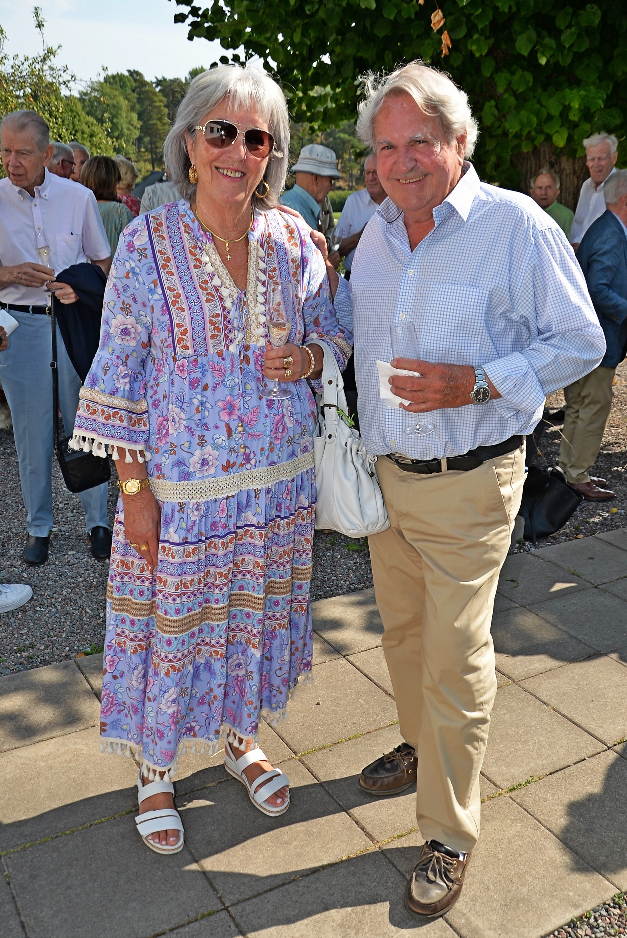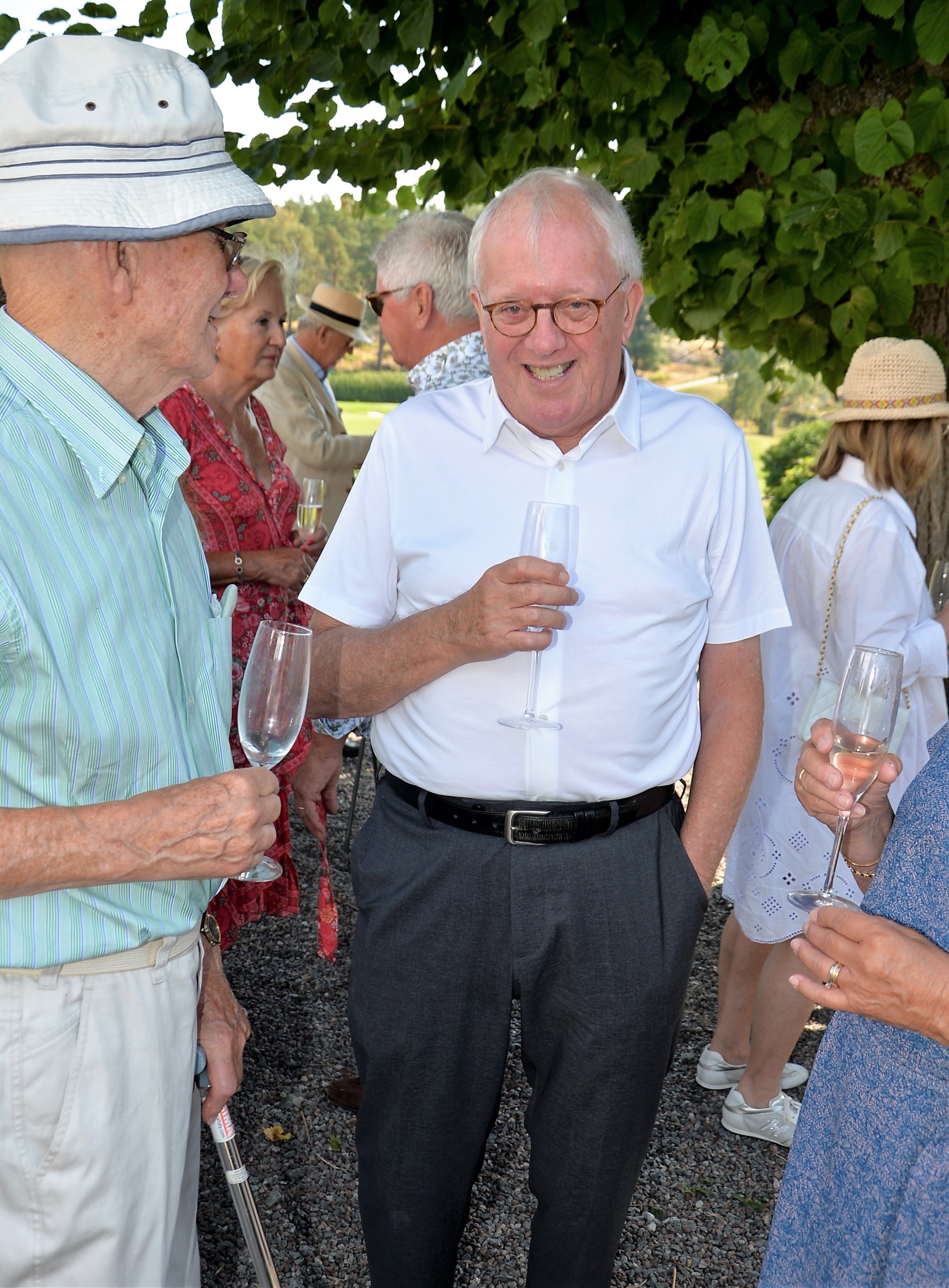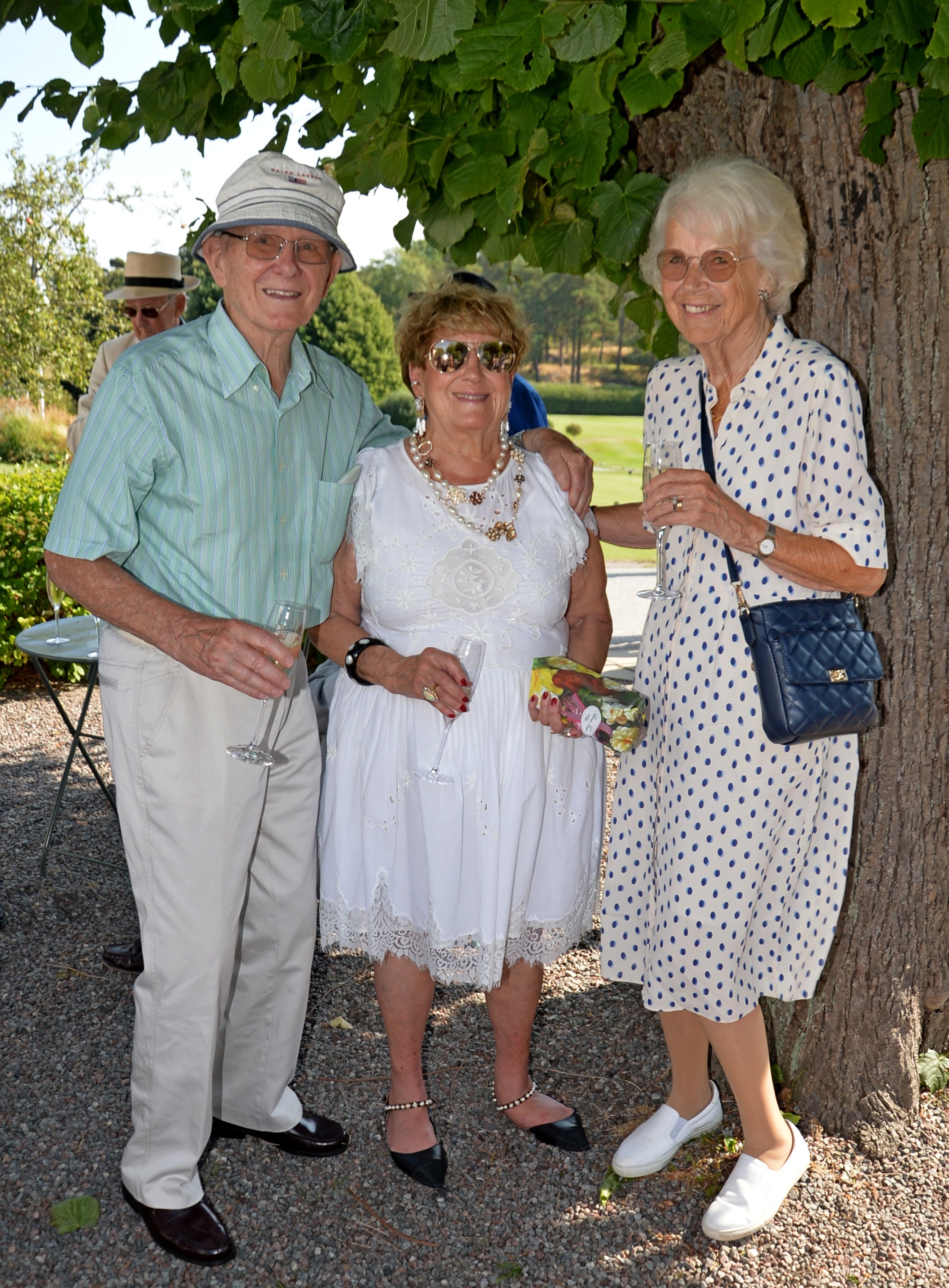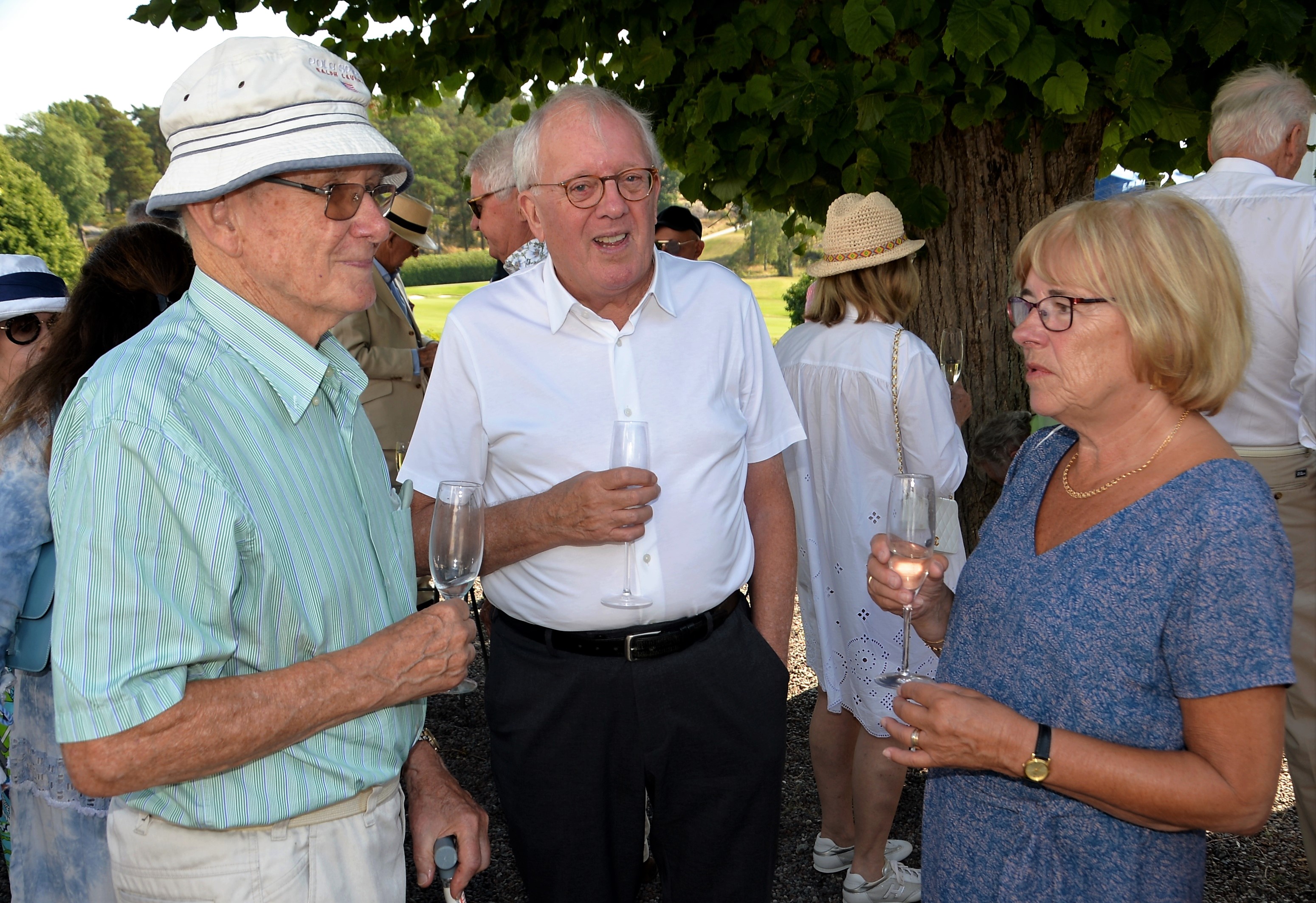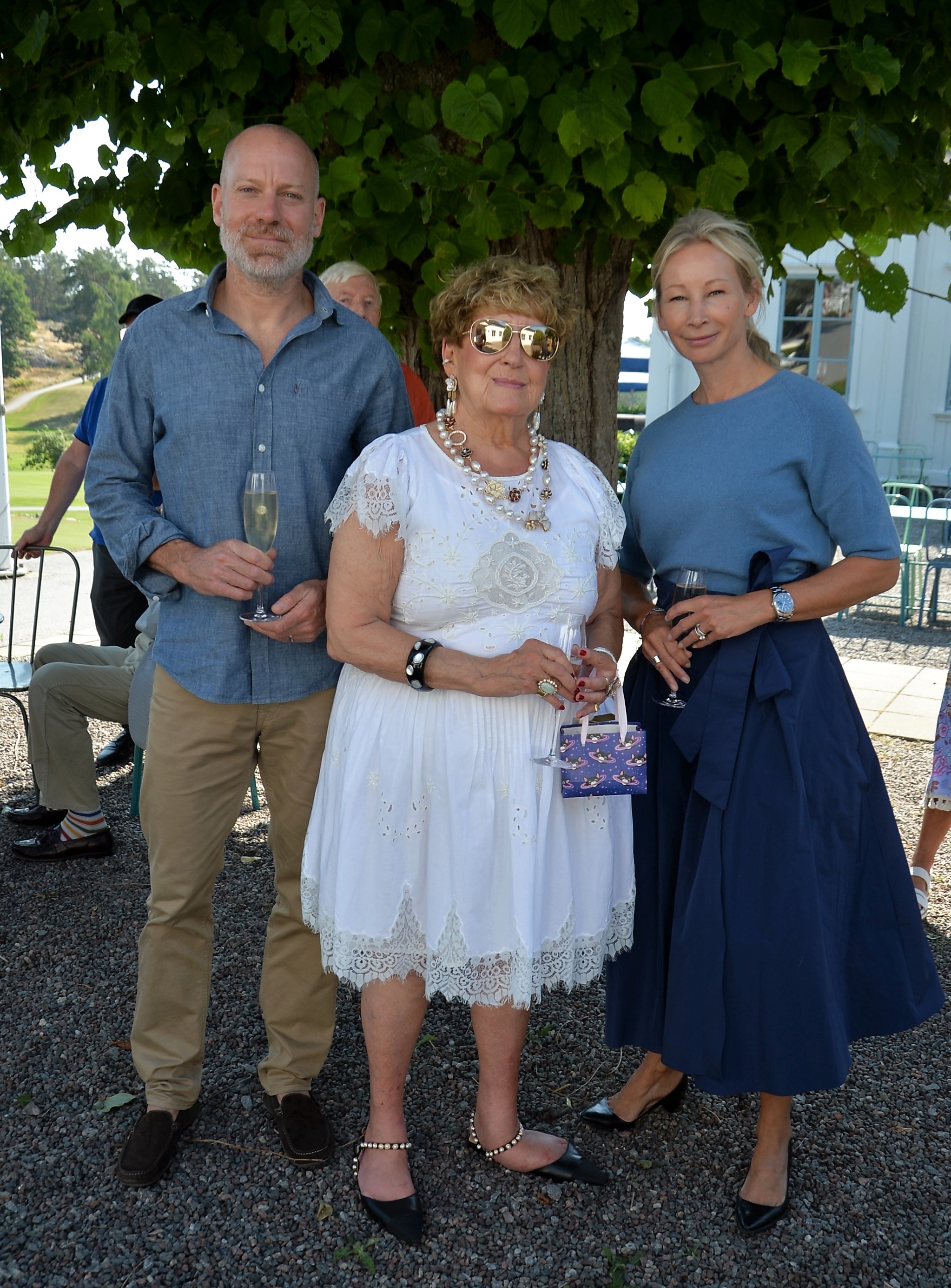Årlig lunch med Monica Blomquist på fina Fågelbro Golfklubb. Ett 50-tal gäster var inbjudna till årets lunch, det blev bubbel med snittar utomhus.