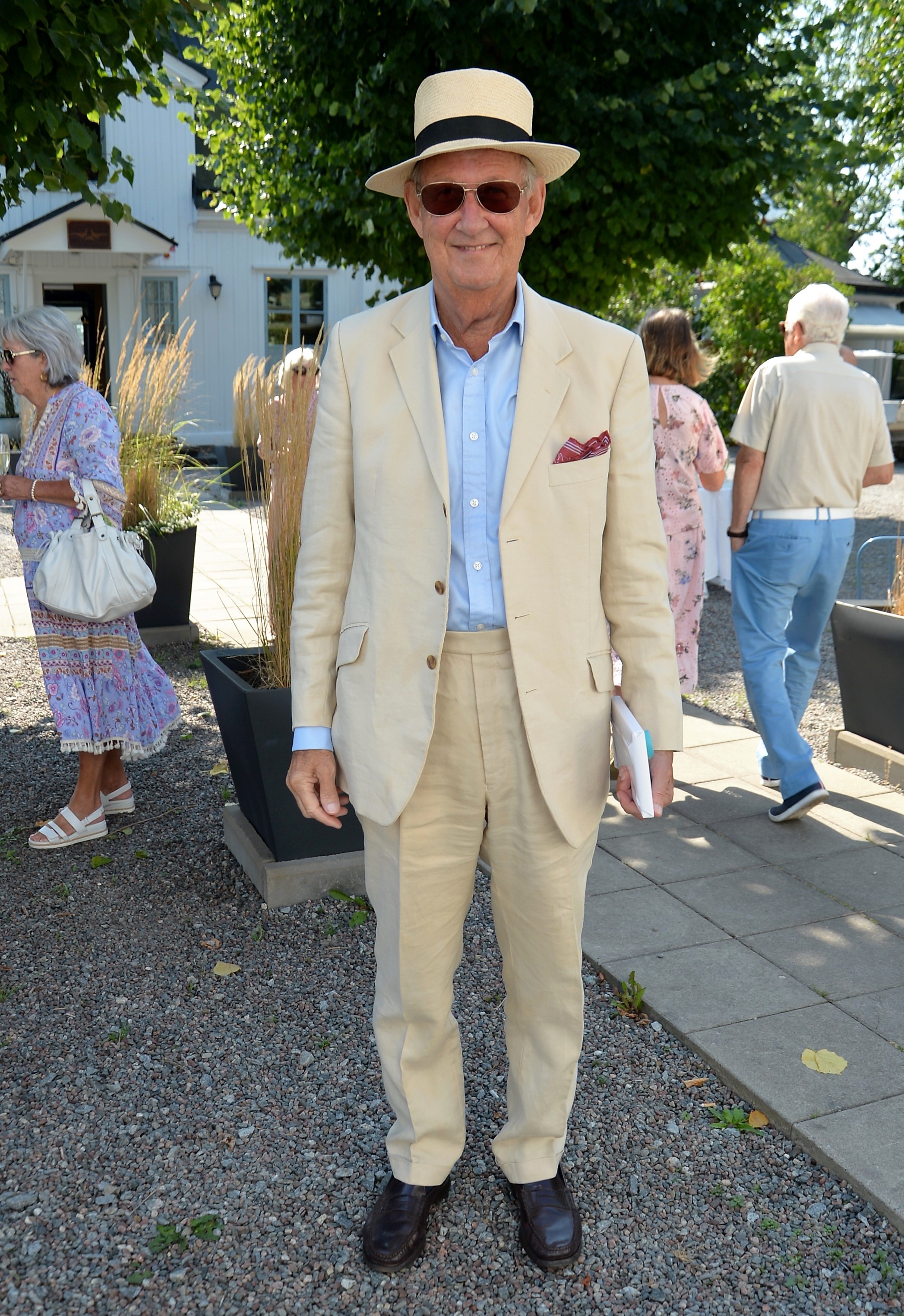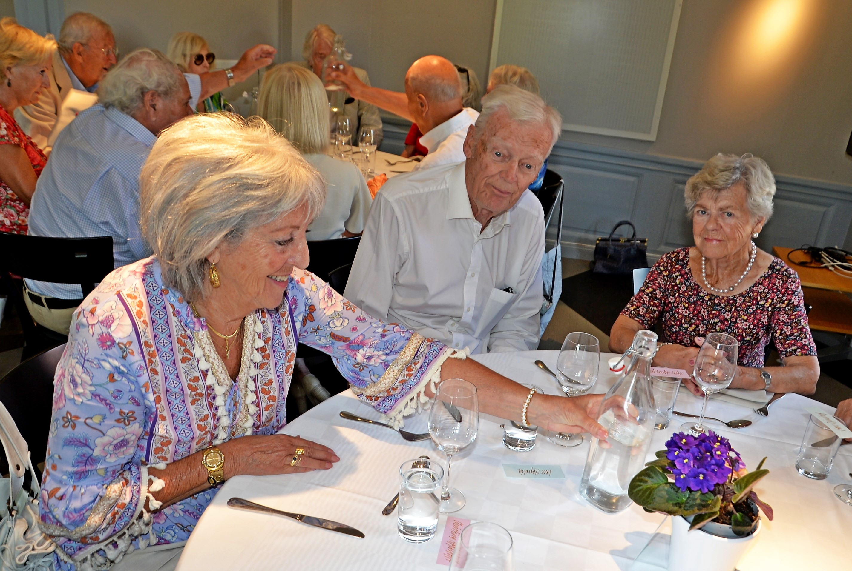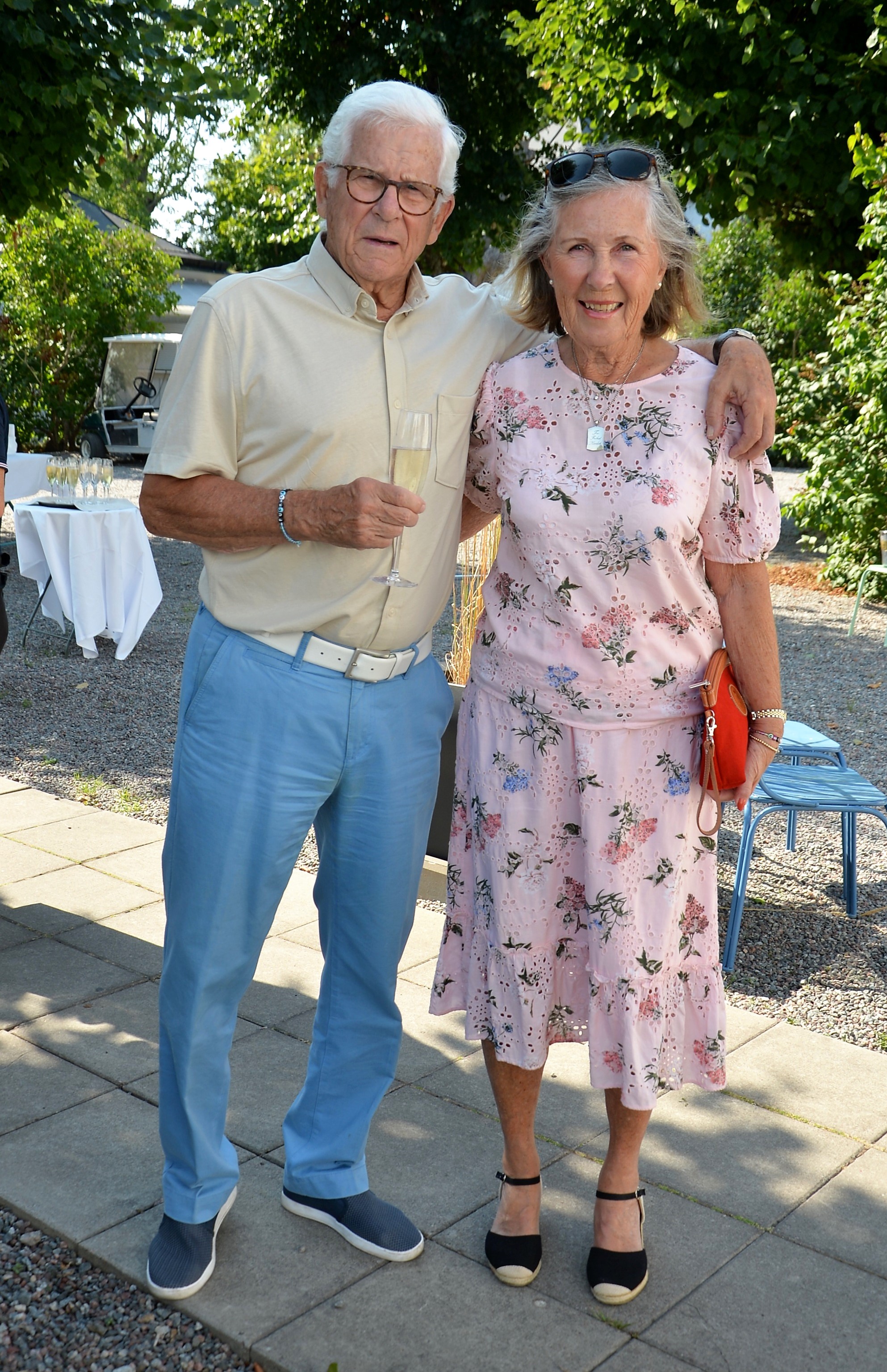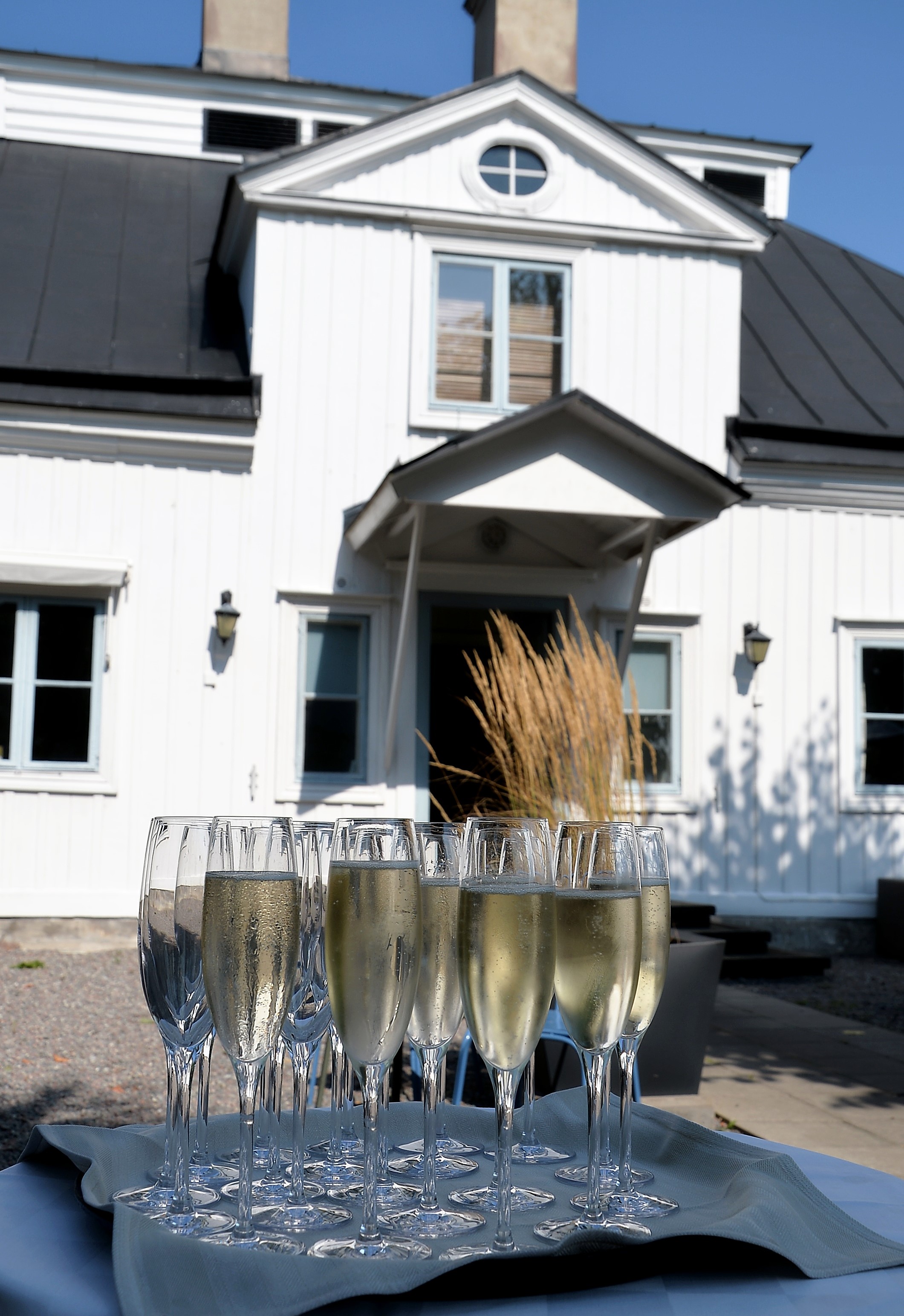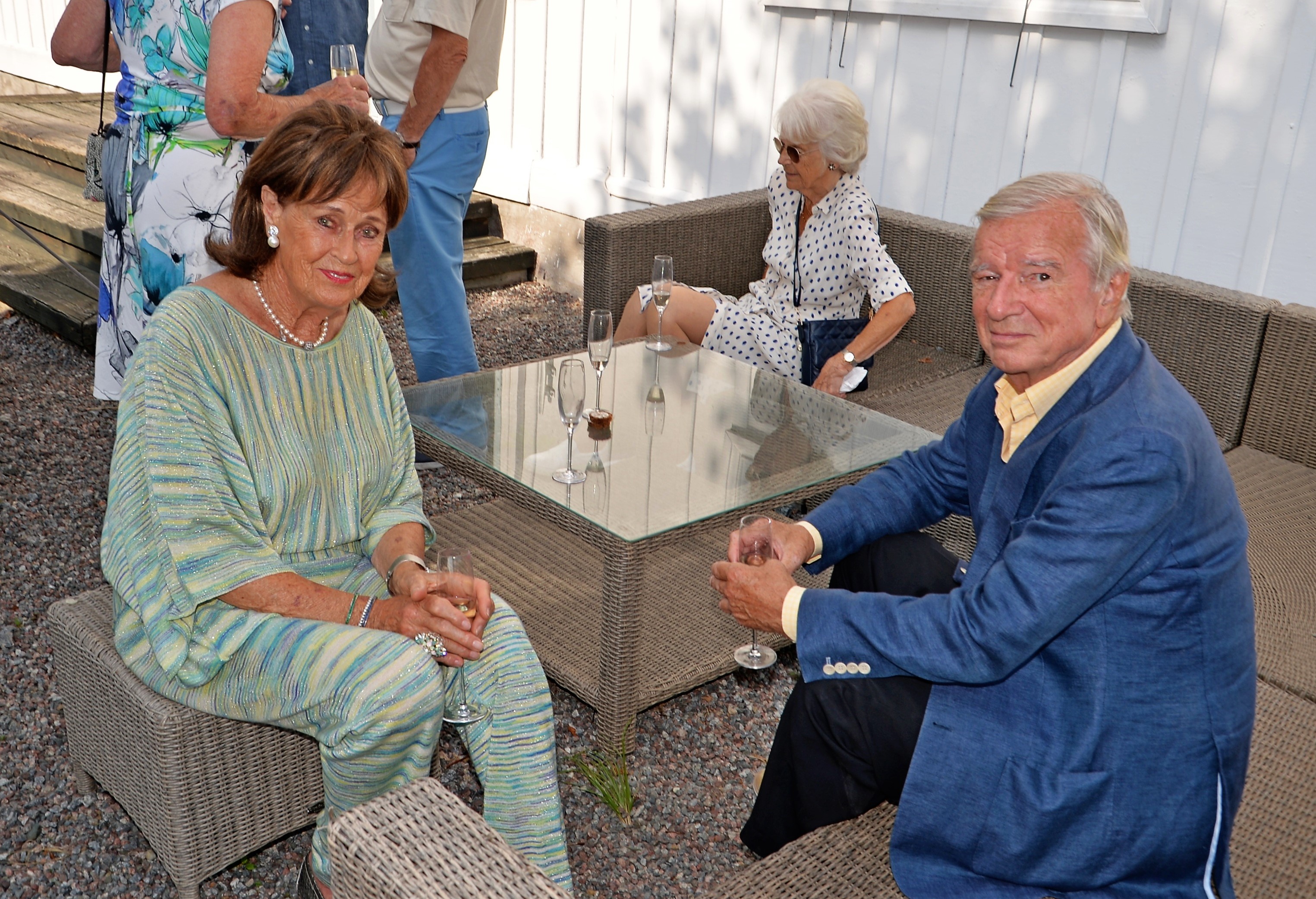 Årlig lunch med Monica Blomquist på fina Fågelbro Golfklubb. Ett 50-tal gäster var inbjudna till årets lunch, det blev bubbel med snittar utomhus.