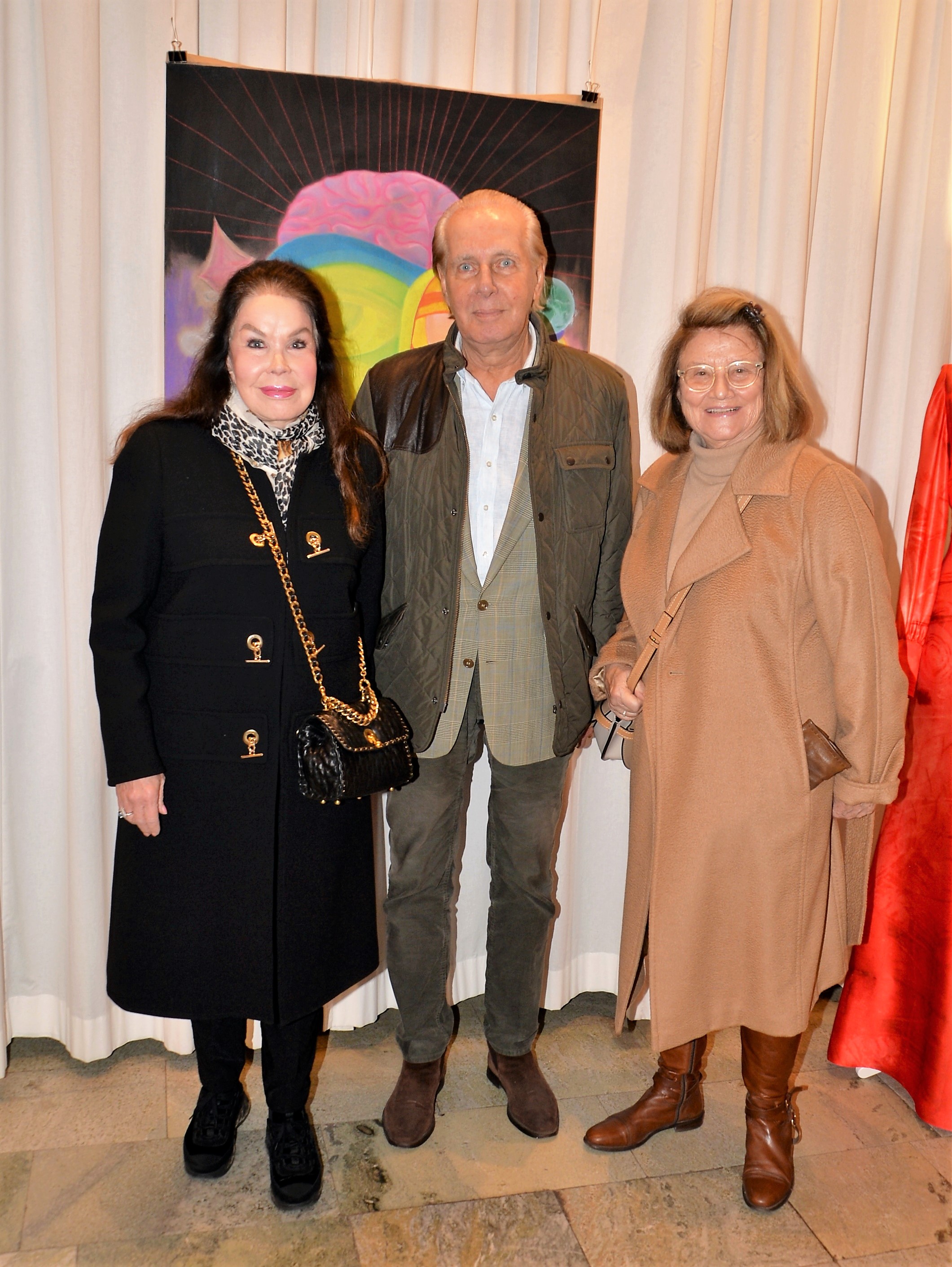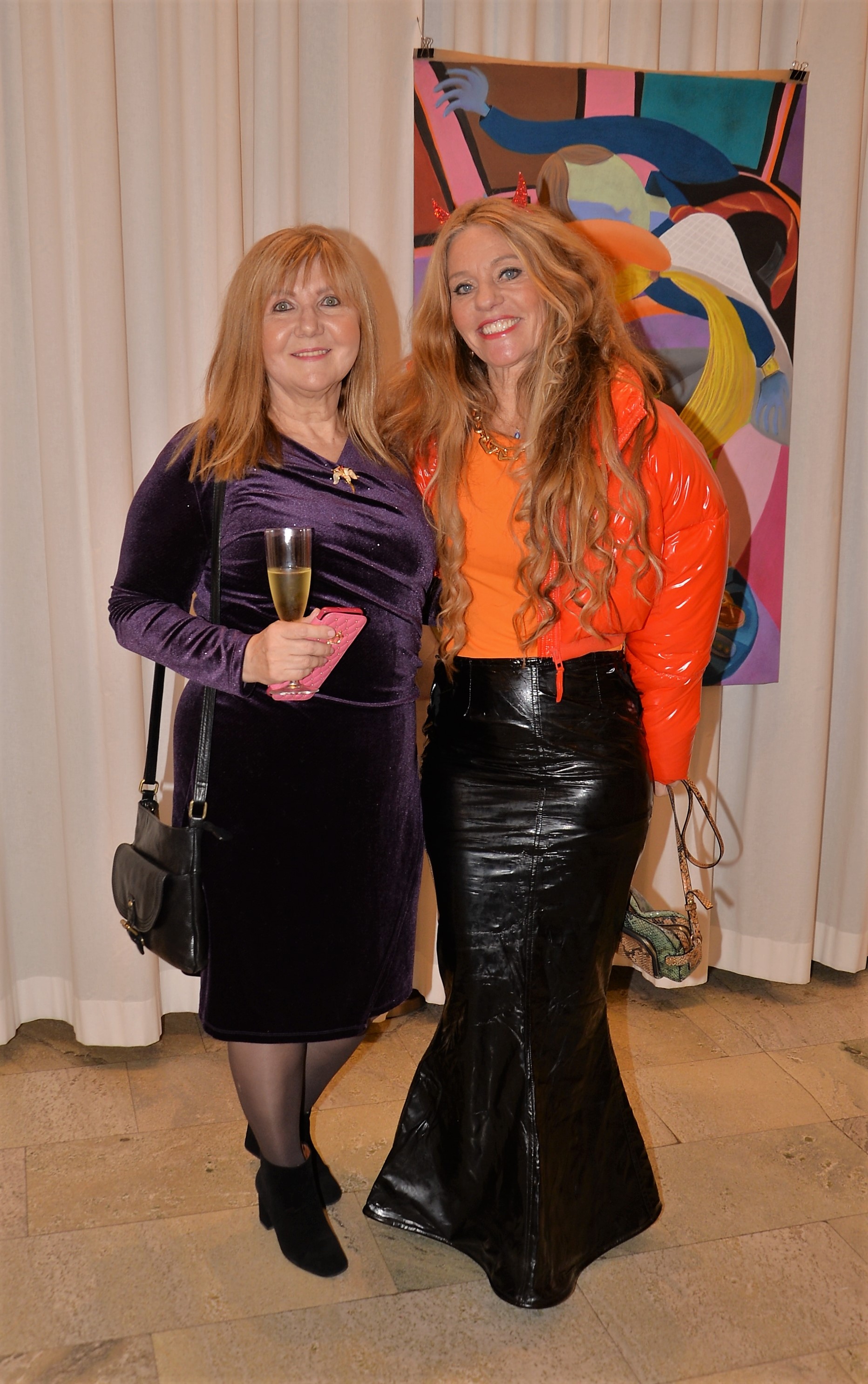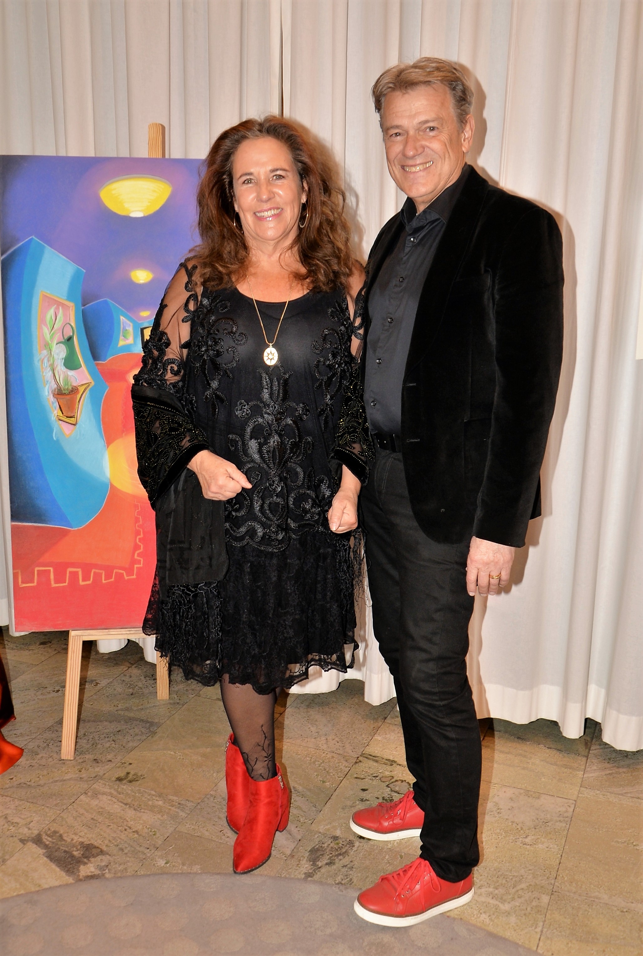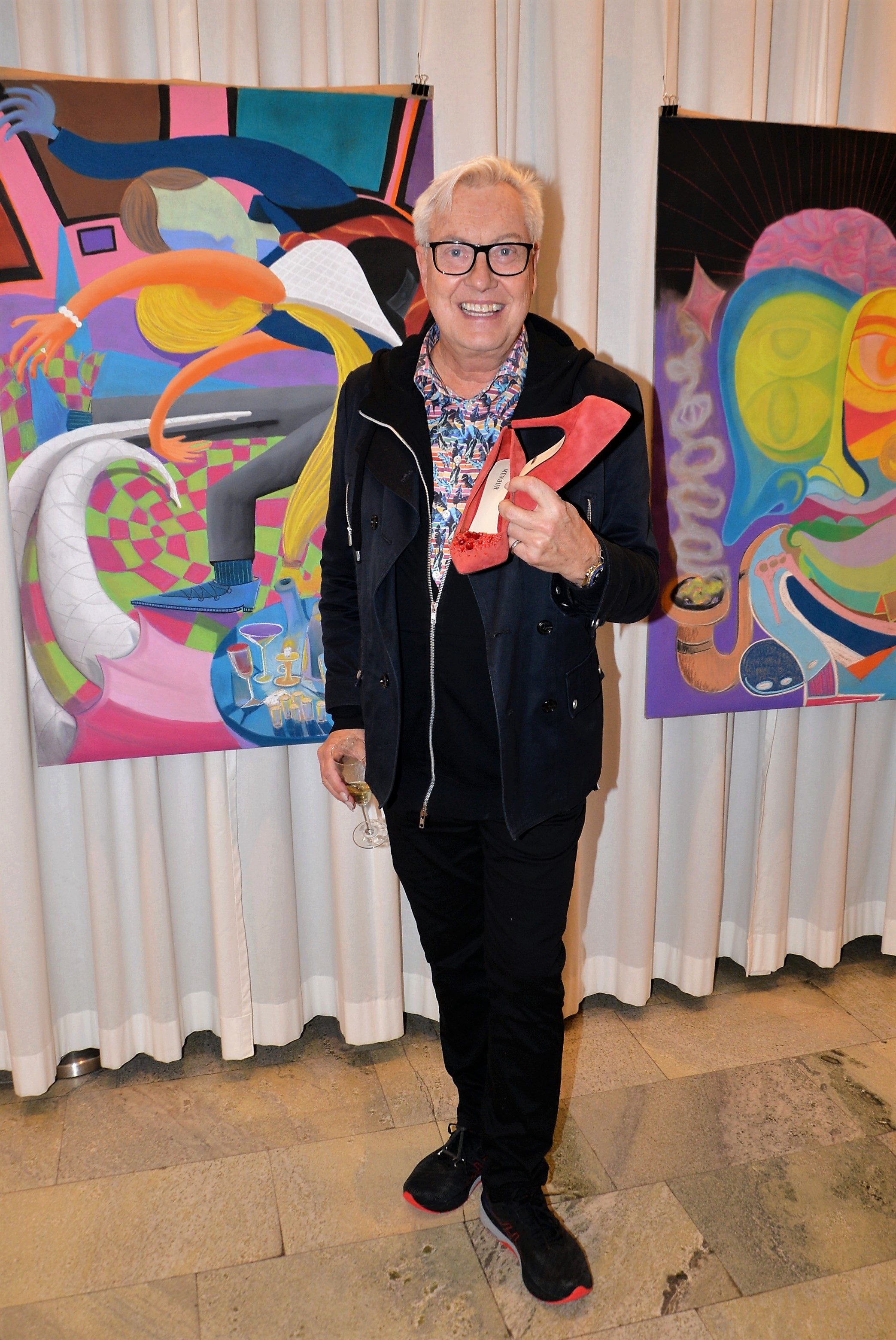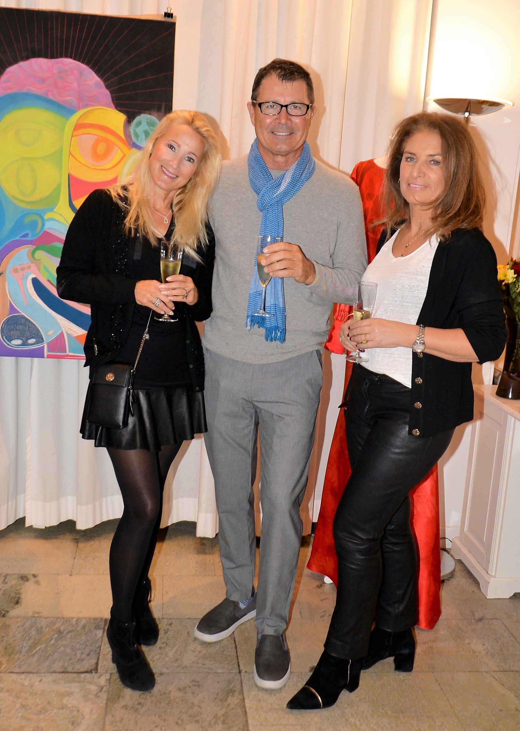 Förra årets utställning blev en riktig höjdare och därför bjöd Thalia in för att visa nya verk och plagg. Ateljén är som mitt hem säger legendaren Göran, när han visar upp sina vackra klänningar. Butiken har funnits på Karlavägen 35 år, i mitten av Östermalm. Göran syr upp vad kunden önskar, beställer oftast tyger själv. Alla accessoarer som finns i butiken är handplockade för att passa kläderna. Kvällen var Dennis Duolee‘s andra vernissage med hans konst gjort med krita. Passande till Dennis konst har Göran designat klänningar med nya matchande mönster.