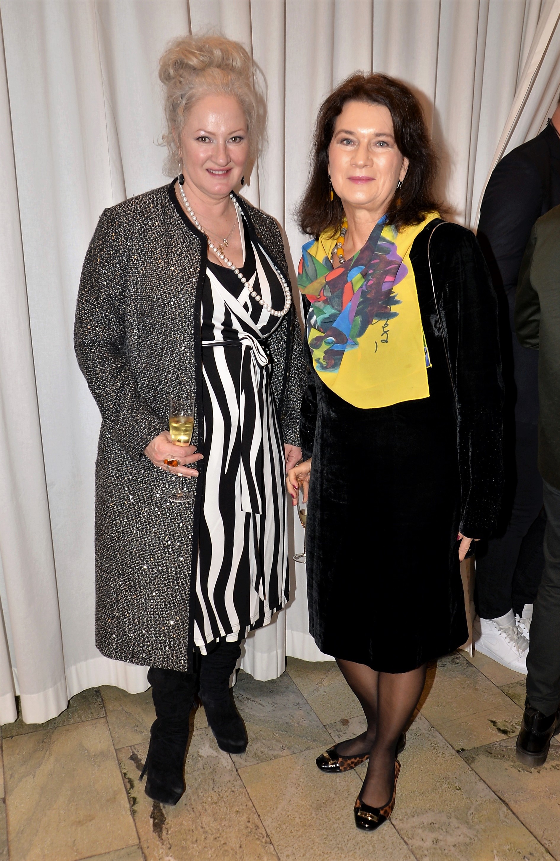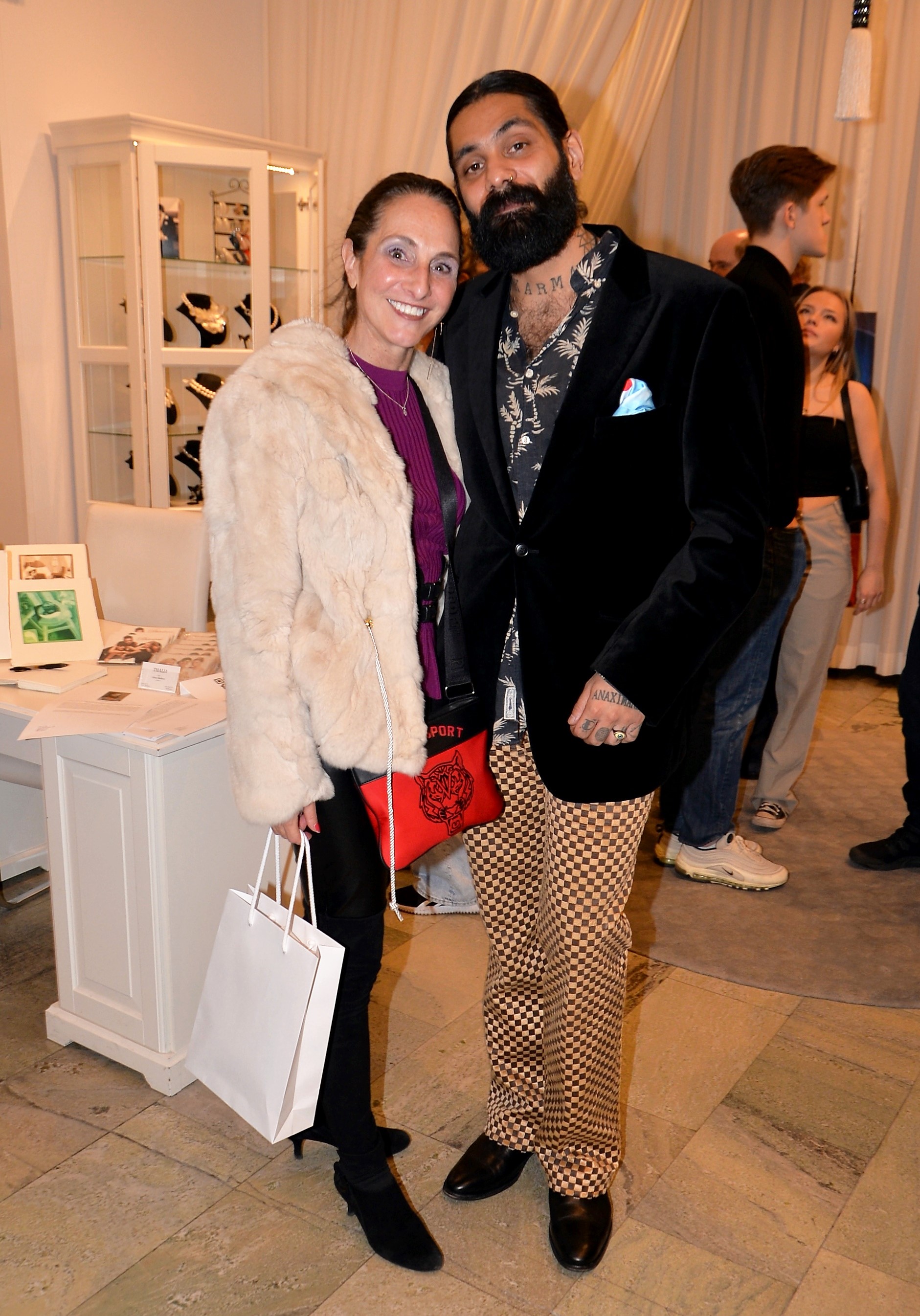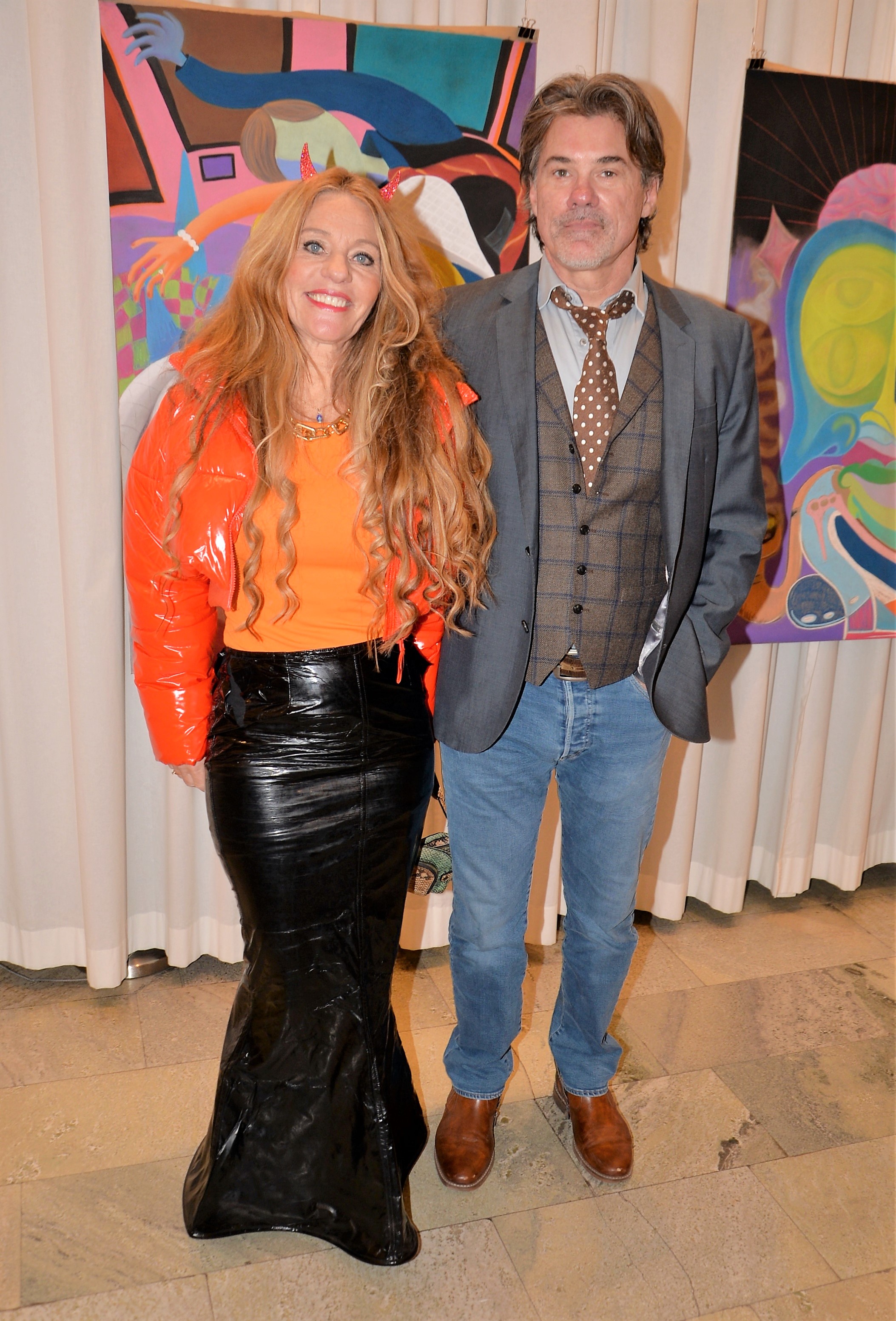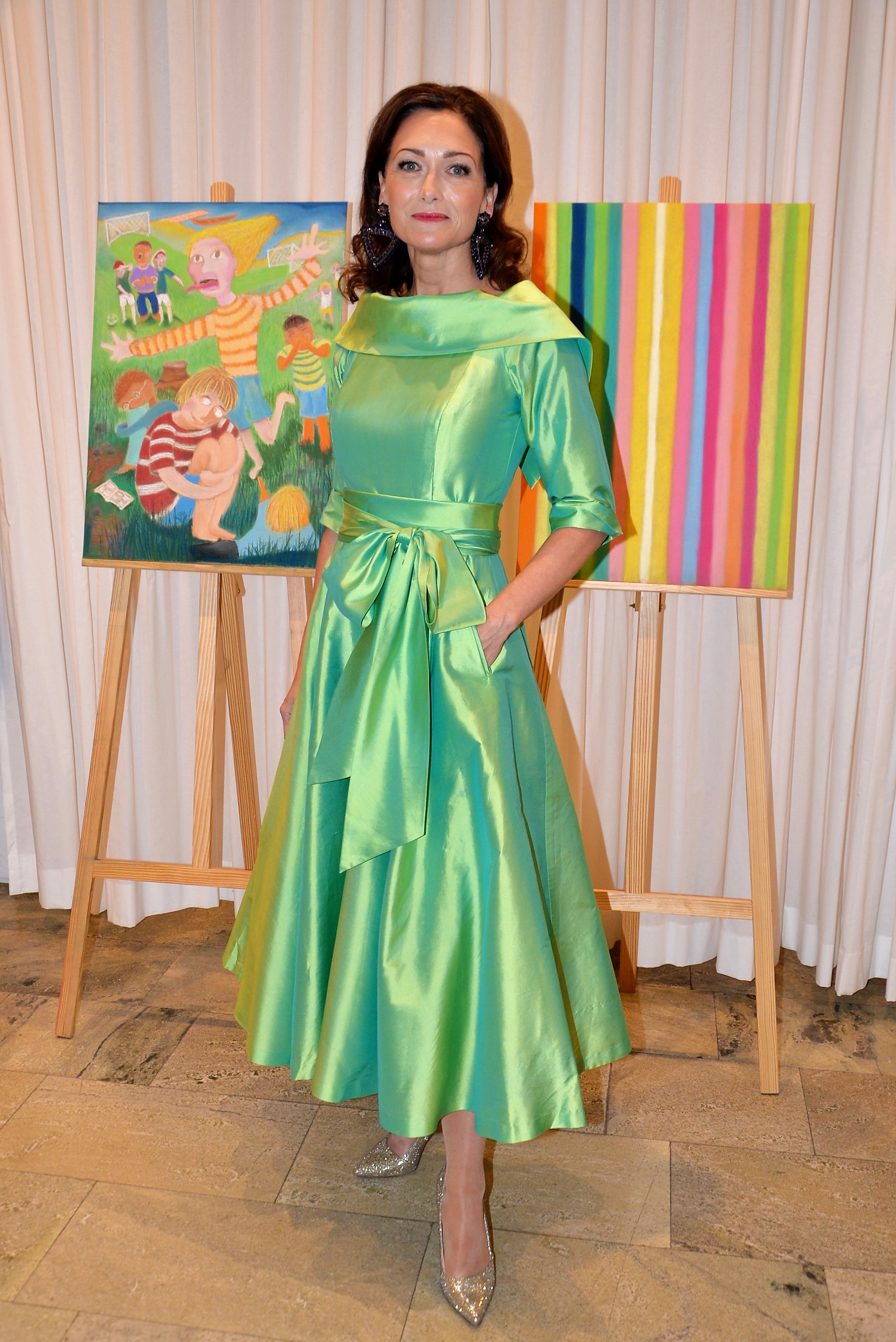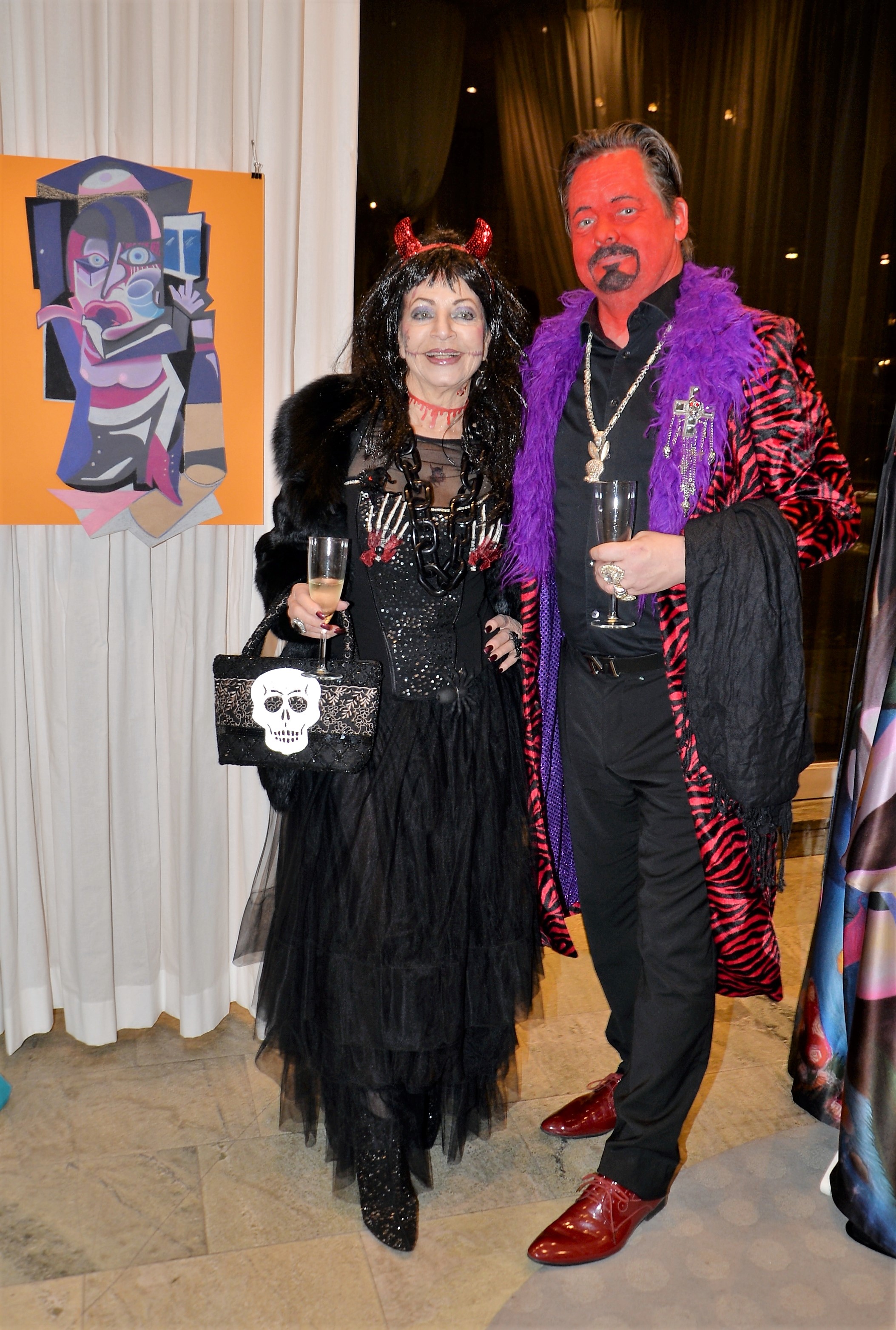 Förra årets utställning blev en riktig höjdare och därför bjöd Thalia in för att visa nya verk och plagg. Ateljén är som mitt hem säger legendaren Göran, när han visar upp sina vackra klänningar. Butiken har funnits på Karlavägen 35 år, i mitten av Östermalm. Göran syr upp vad kunden önskar, beställer oftast tyger själv. Alla accessoarer som finns i butiken är handplockade för att passa kläderna. Kvällen var Dennis Duolee‘s andra vernissage med hans konst gjort med krita. Passande till Dennis konst har Göran designat klänningar med nya matchande mönster.