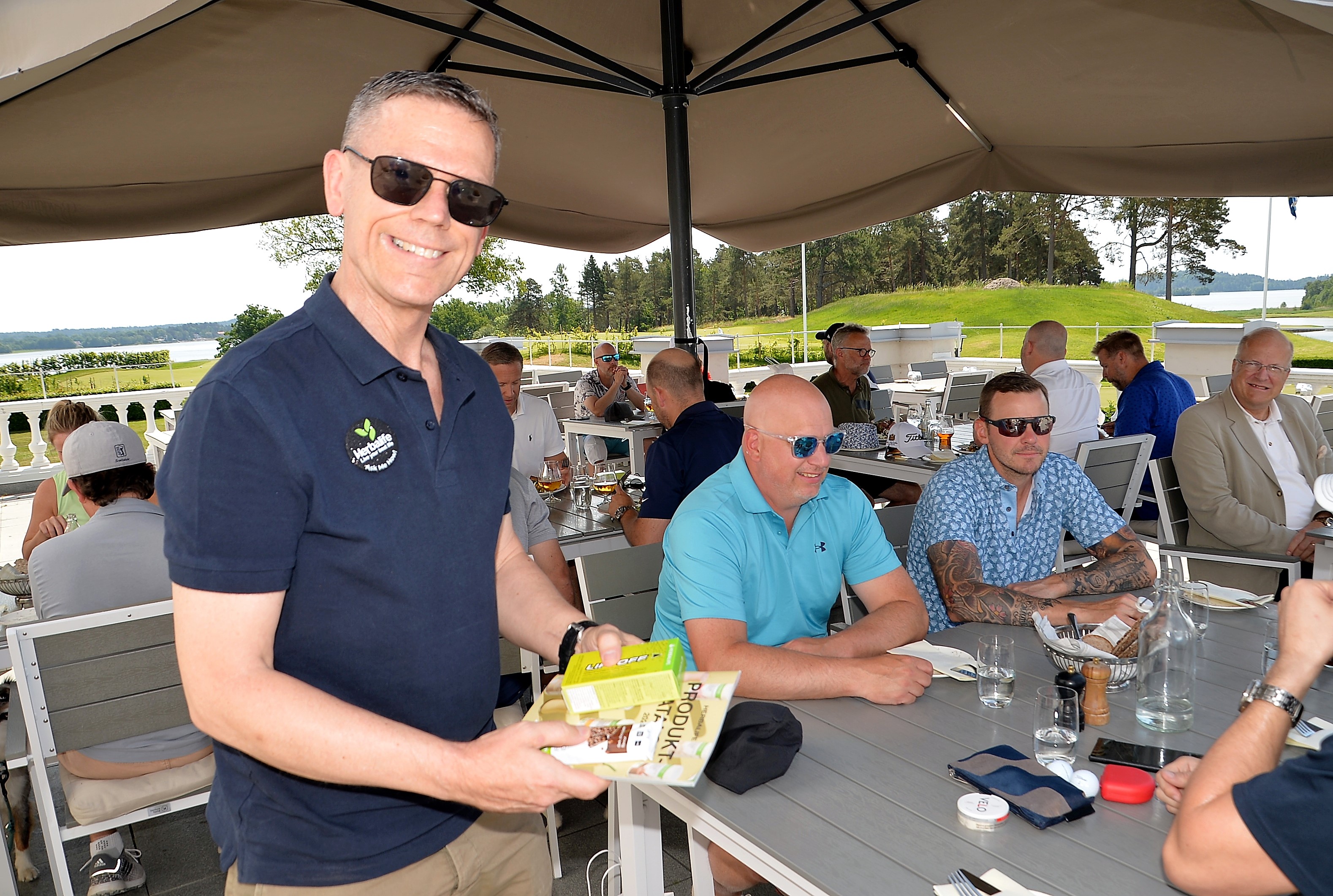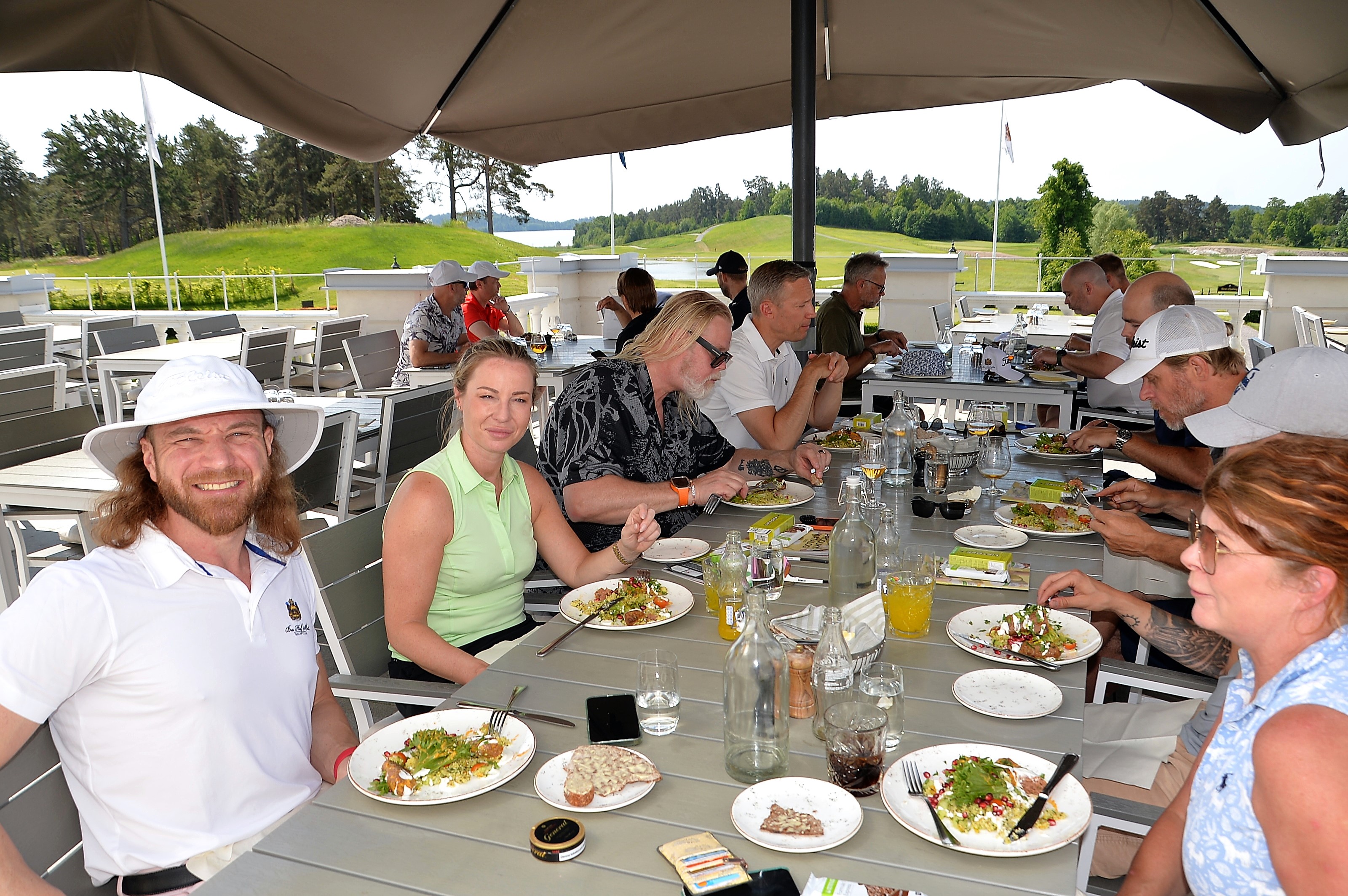 Samling skedde den 16 Juni kl. 11.00 vid golfshopen följt av en lunch (shishkebab med couscous, koriander, tomatsallad & granatäpple) på slottsterrassen. Första boll gick ut kl. 12.00 på Bro Hof GC. 20 spelare klara för start.