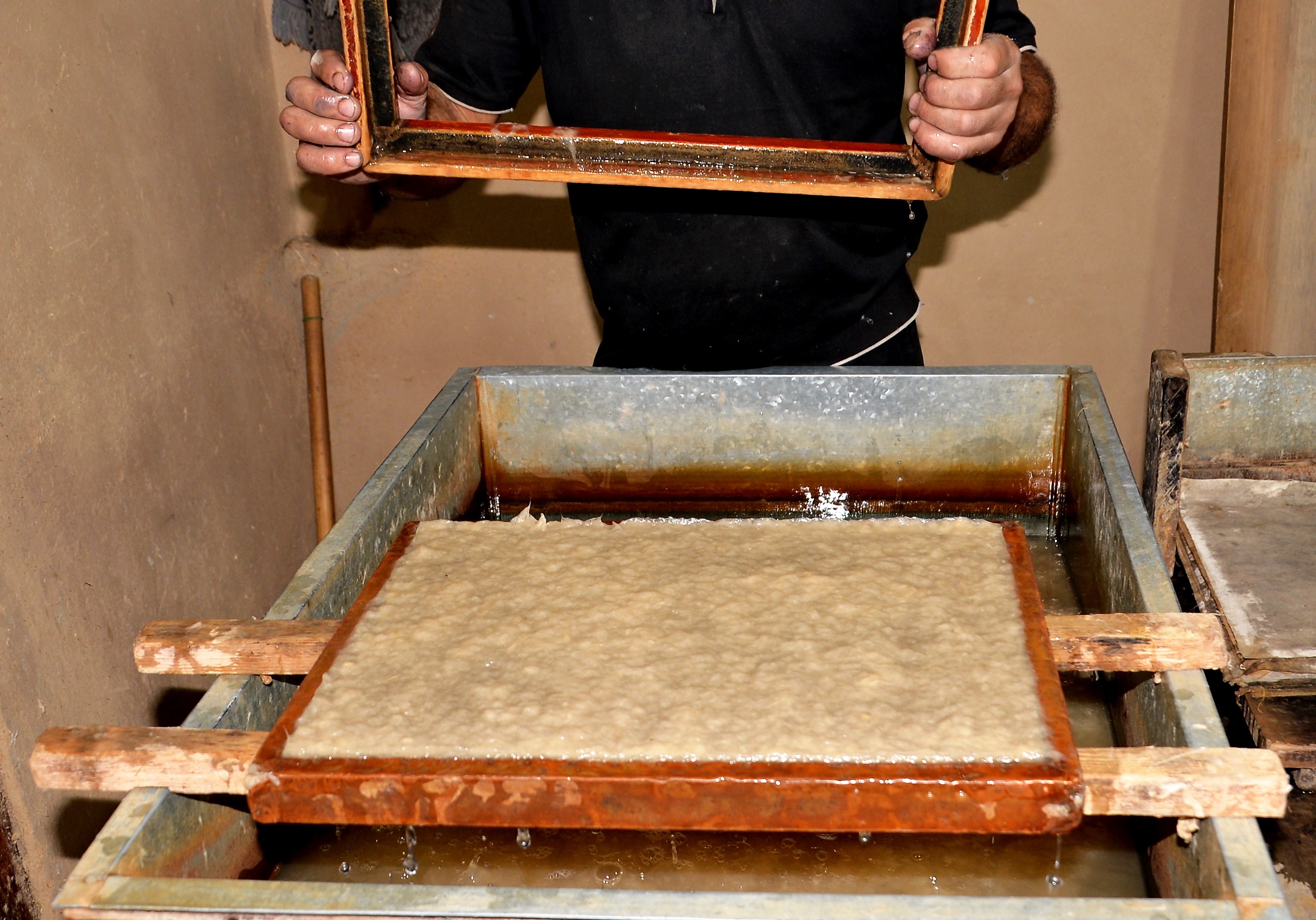 Hemligheten med att tillverka silkespapper gick förlorad med tiden, men Samarkand-hantverkarna kunde återställa hela den arbetsintensiva tillverkningsprocessen. En verkstad grundades nära stadens centrum i Konigil-området, där traditionella metoder används och en vattenkvarn används.