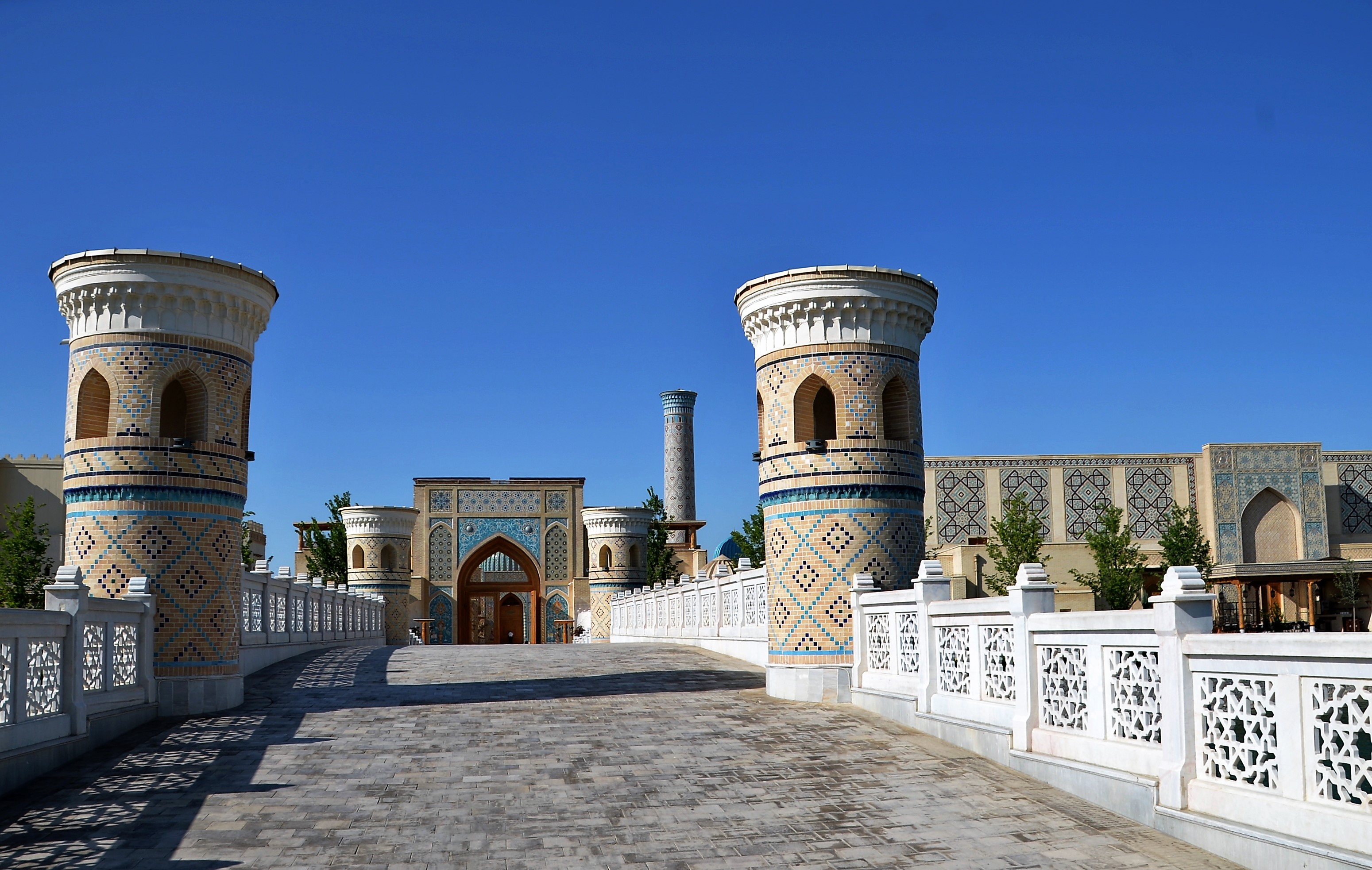 Samarkand turistcentrum ”Den stora sidenvägen” är en ny pärla i Centralasien. De graciösa linjerna i hotellbyggnaderna, den orientaliska smaken av den eviga staden, kongresshallens affärsmässighet, ljusstyrkan i ljuset och musikfontänen – allt här är genomtänkt till minsta detalj, varje enskilt element smälter harmoniskt samman till en enda arkitektonisk och landskapsmässig ensemble.