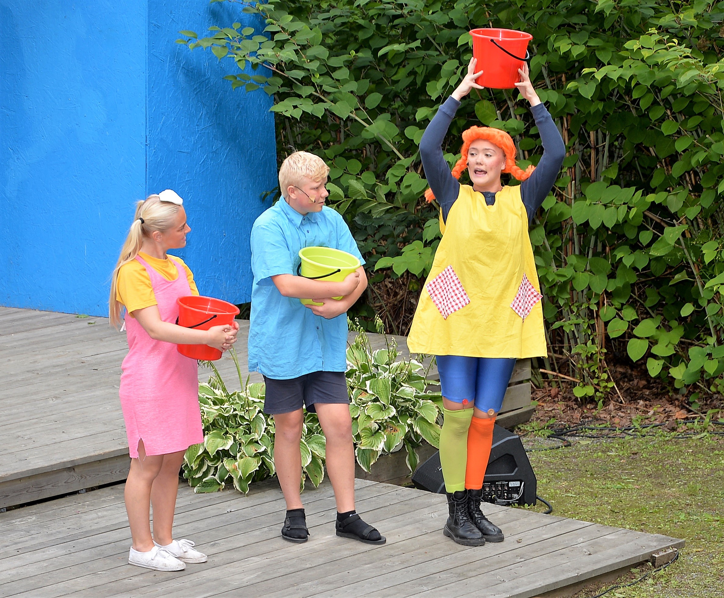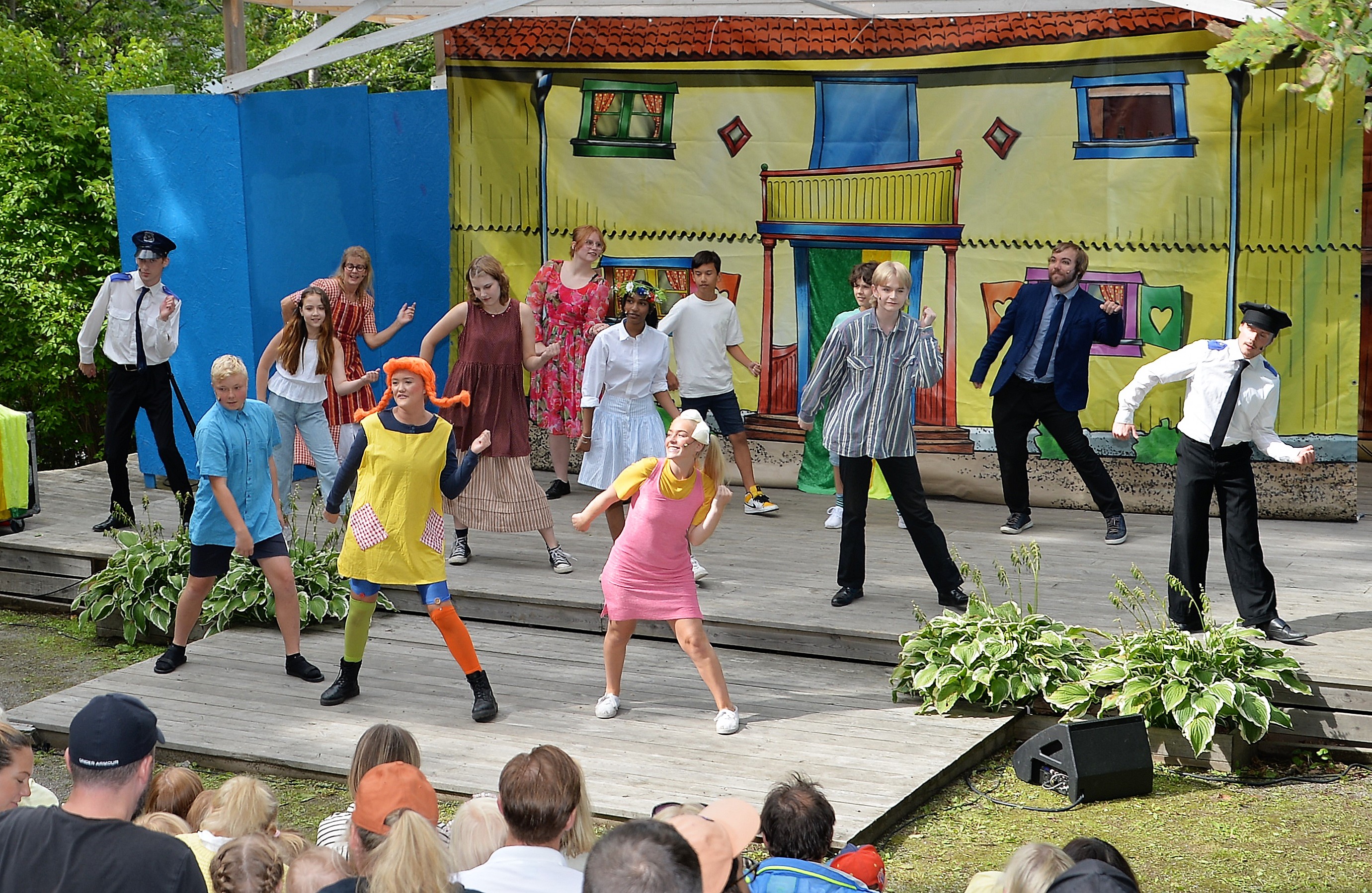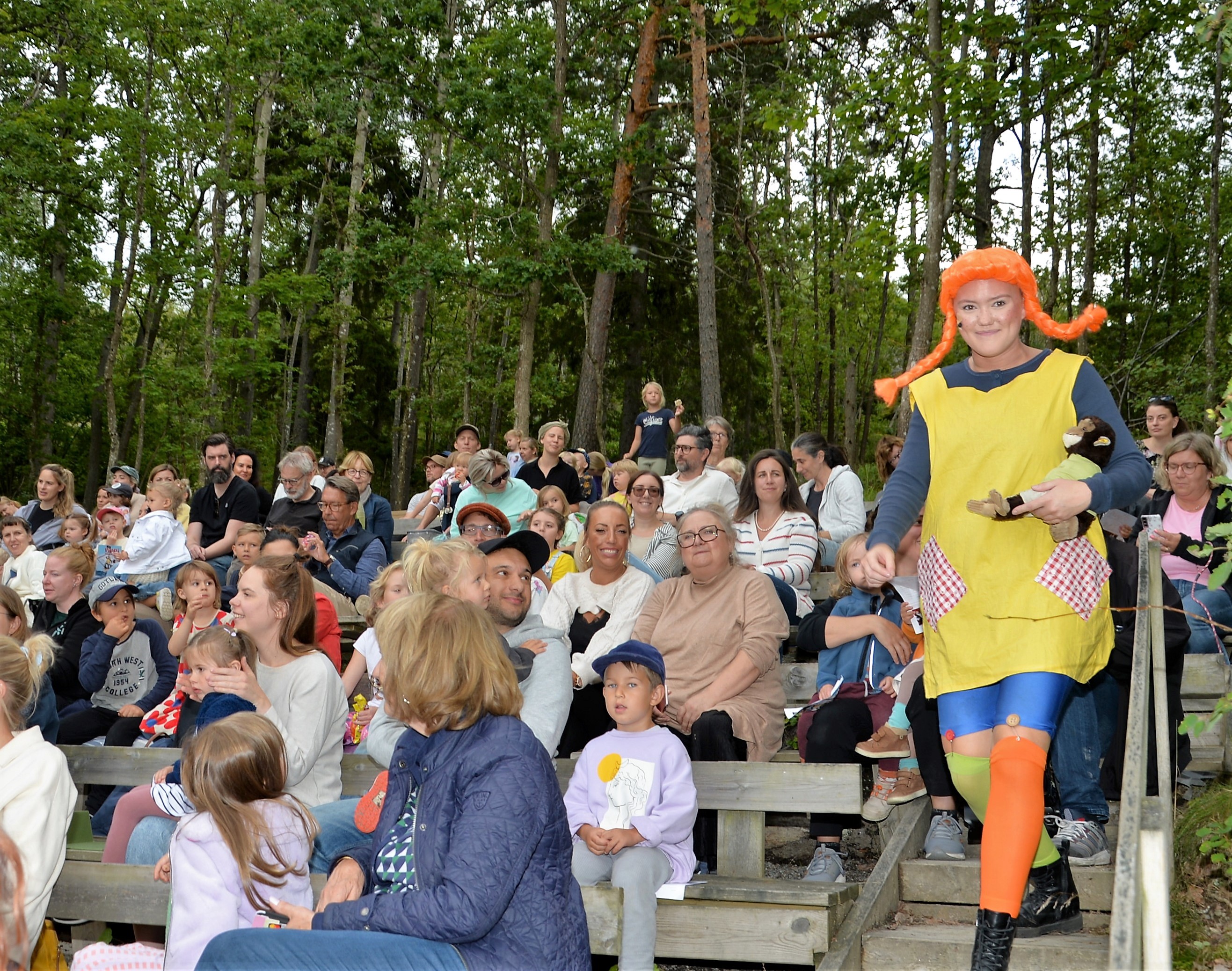 Pippi Långstrump och hennes vänner tar plats på Mälarhöjdens Friluftsteater! Vi fick uppleva en fartfylld familjeupplevelse baserad på Astrid Lindgrens mest populära tjej Pippi! Det blev ett sommaräventyr när Pippi köper arton kilo karameller, när hon går på marknad och tämjer boaormar. Och när hon tar Tommy och Annika till en öde ö där dom blir skeppsbrutna i två dagar i jakten på att hitta Pippis pappa Kapten Efraim Långstrump som blivit tillfångatagen av pirater. Mycket skön musik man kände igen, Izabella Swartz var mycket bra i rollen som Pippi, fick beröm av bl.a. Inger Nilsson. Spänning, värme, humor och nostalgi! Här kommer Pippi tillbaka!