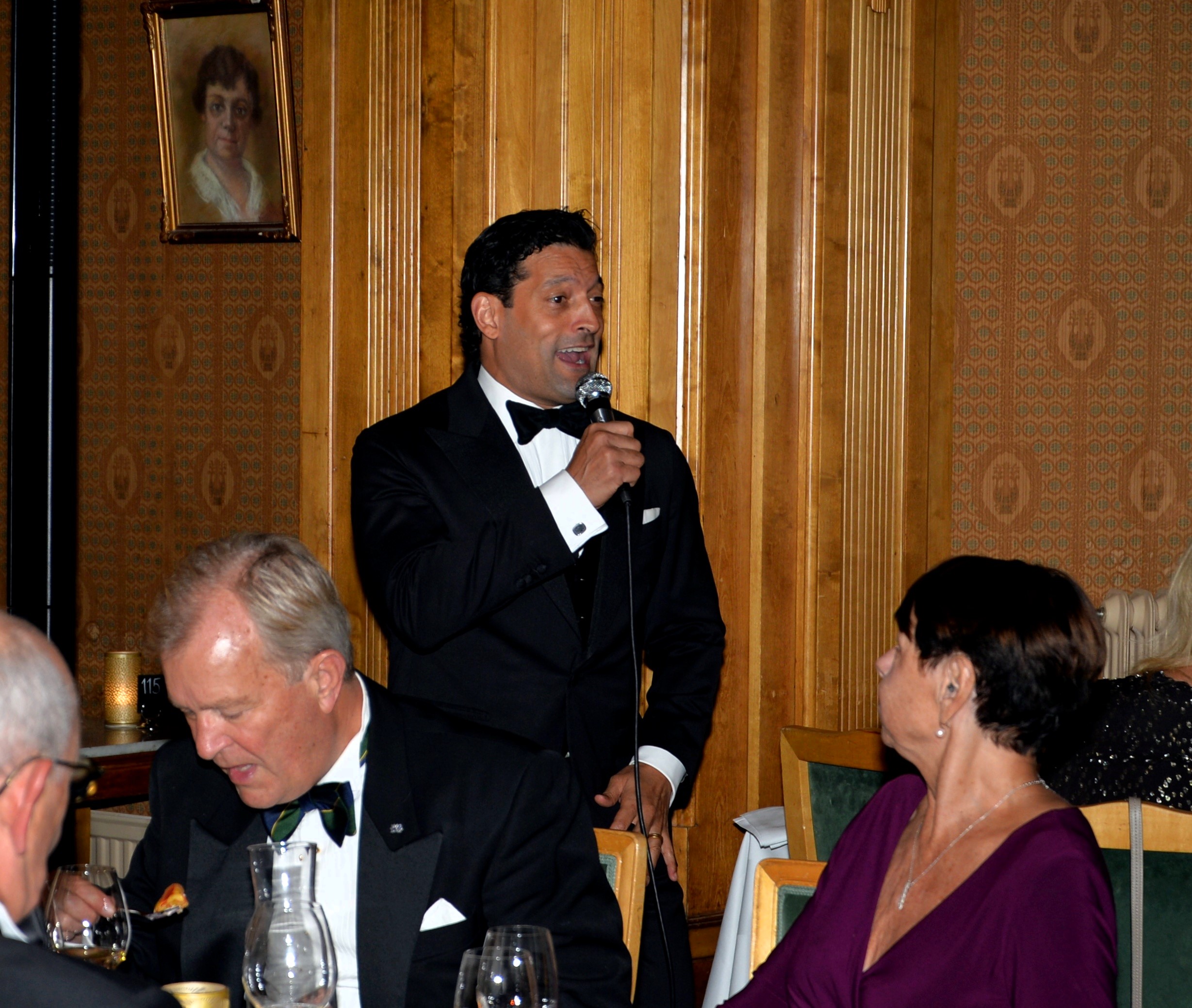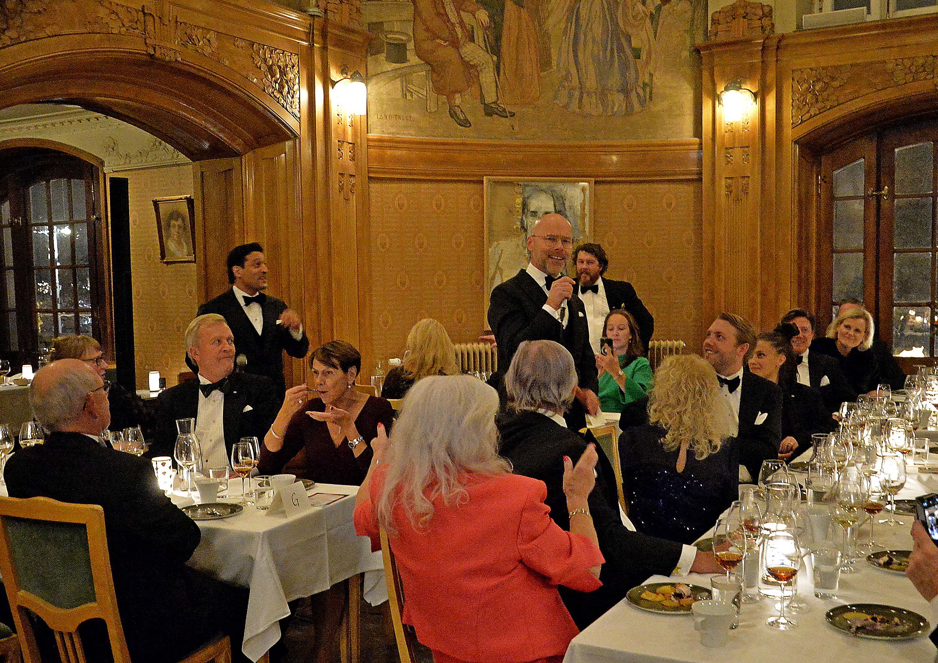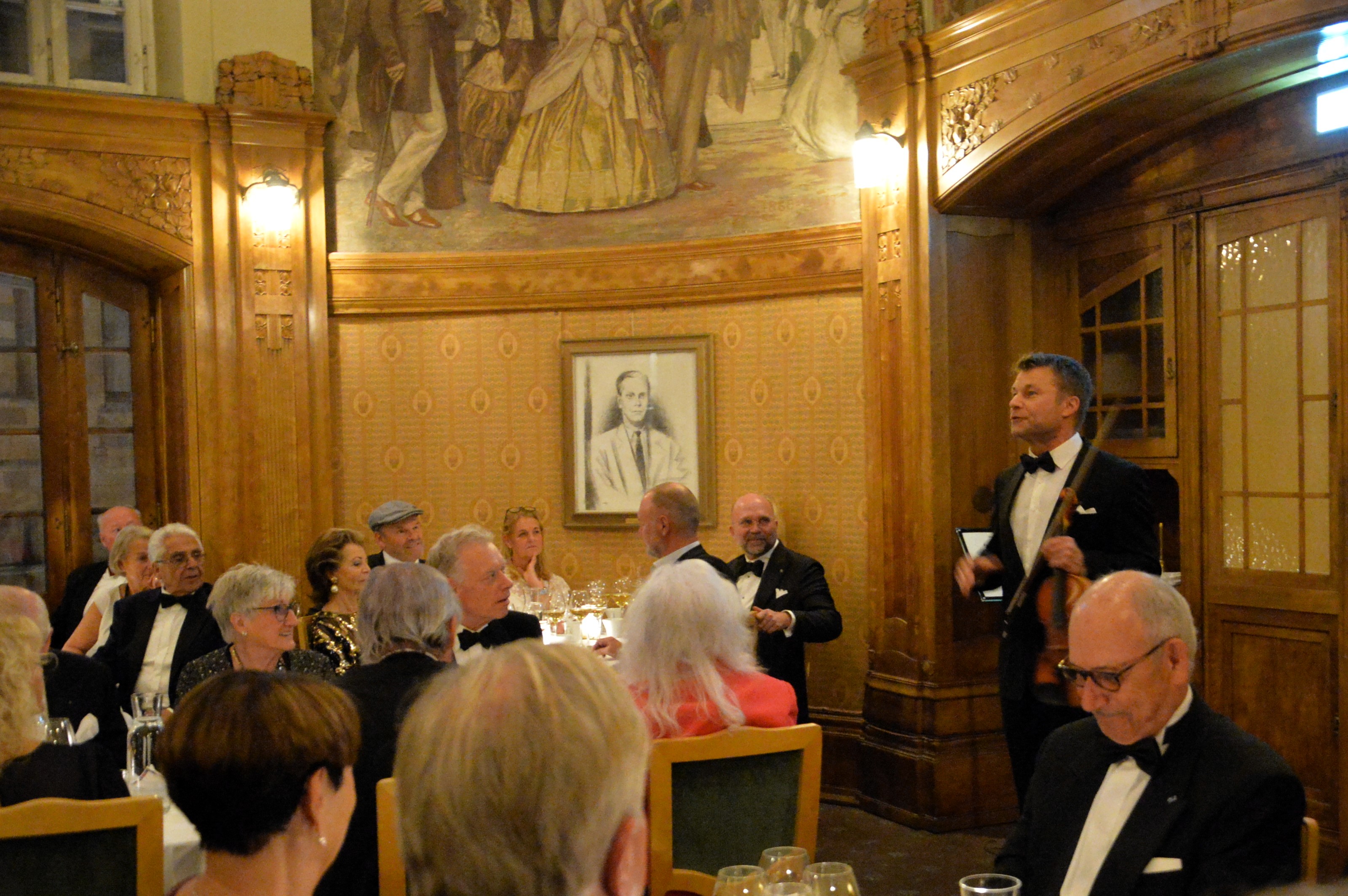 Klubben bjöd på Champagne & tre sorter Canapéer. Galameny med ädla drycker serverades och senare kaffe & makroner (På franska macoriner). Härlig underhållning till desserten av Daniel Wikslund, Rennie Mirro och Joachim Bergström.