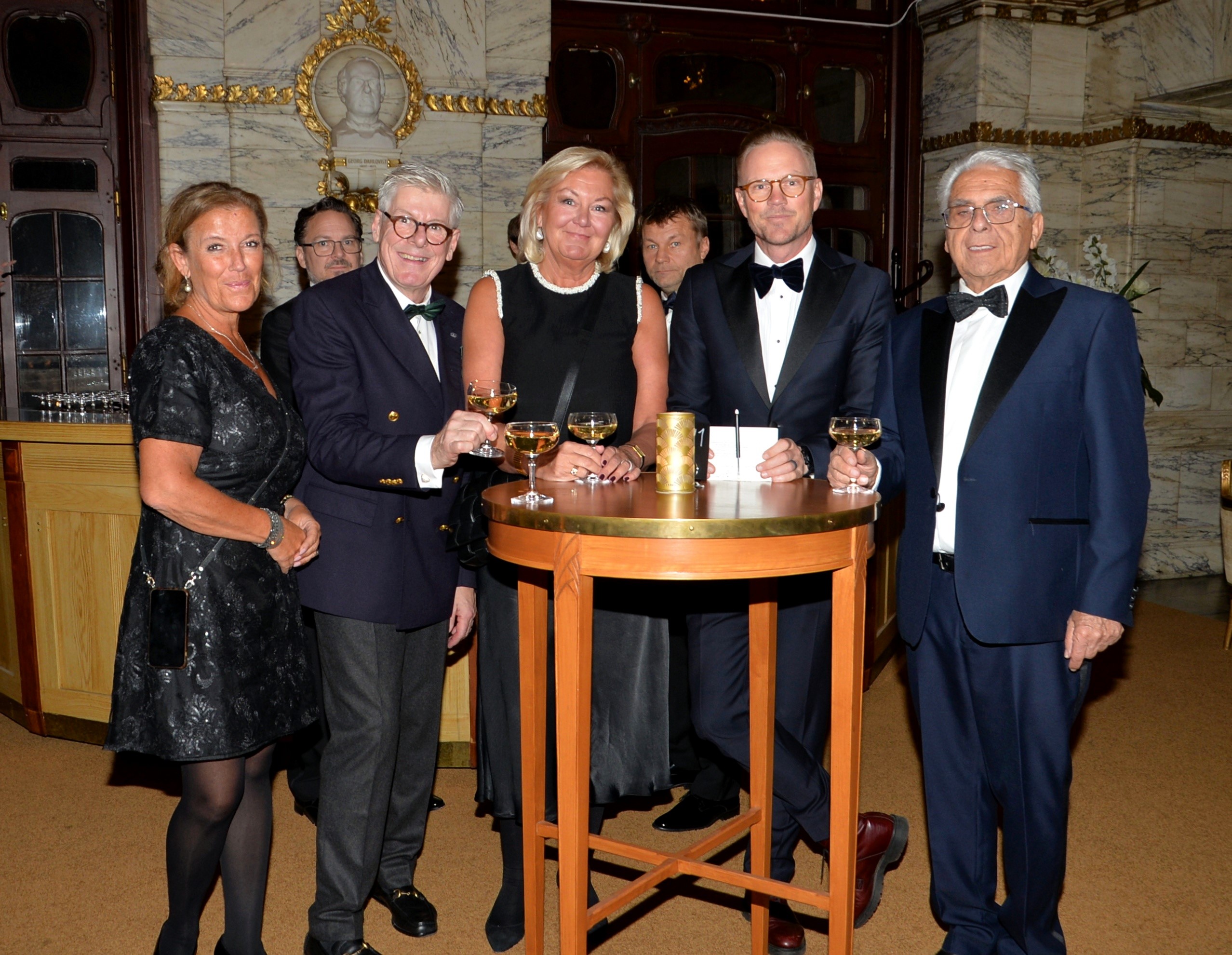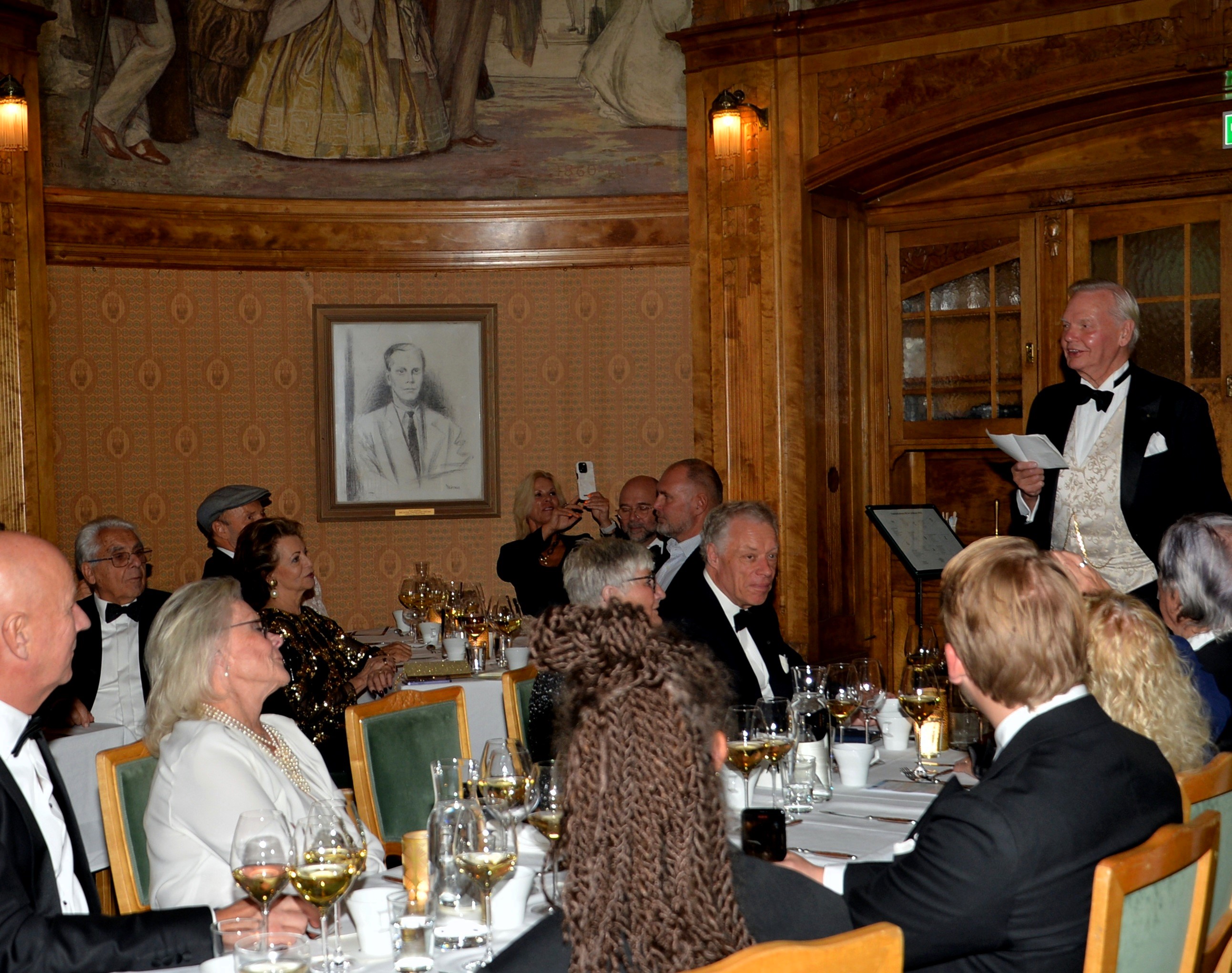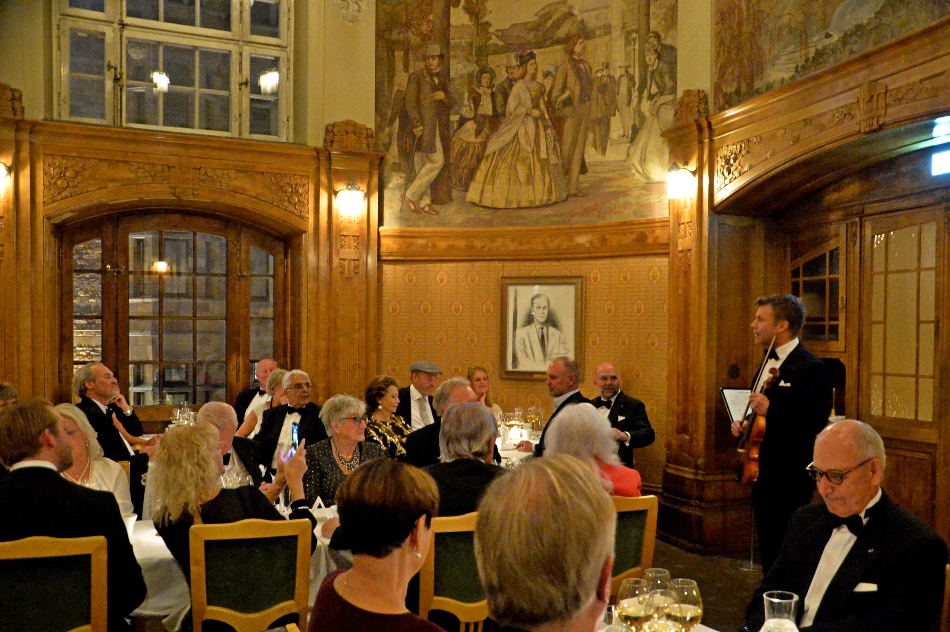 Klubben bjöd på Champagne & tre sorter Canapéer. Galameny med ädla drycker serverades och senare kaffe & makroner (På franska macoriner). Härlig underhållning till desserten av Daniel Wikslund, Rennie Mirro och Joachim Bergström.