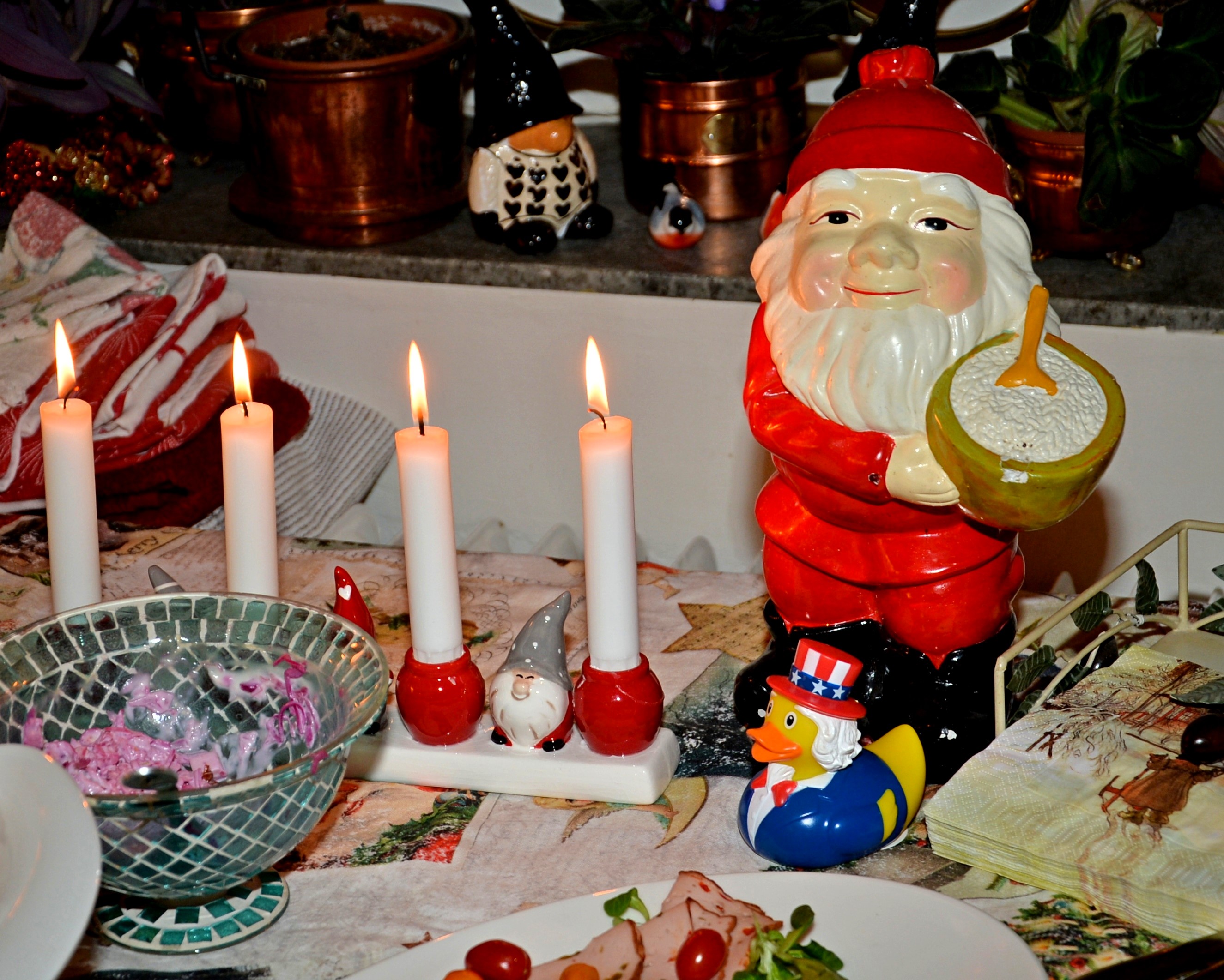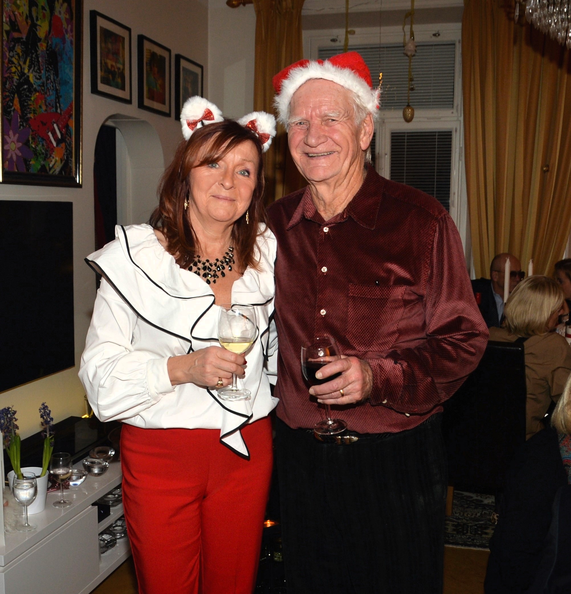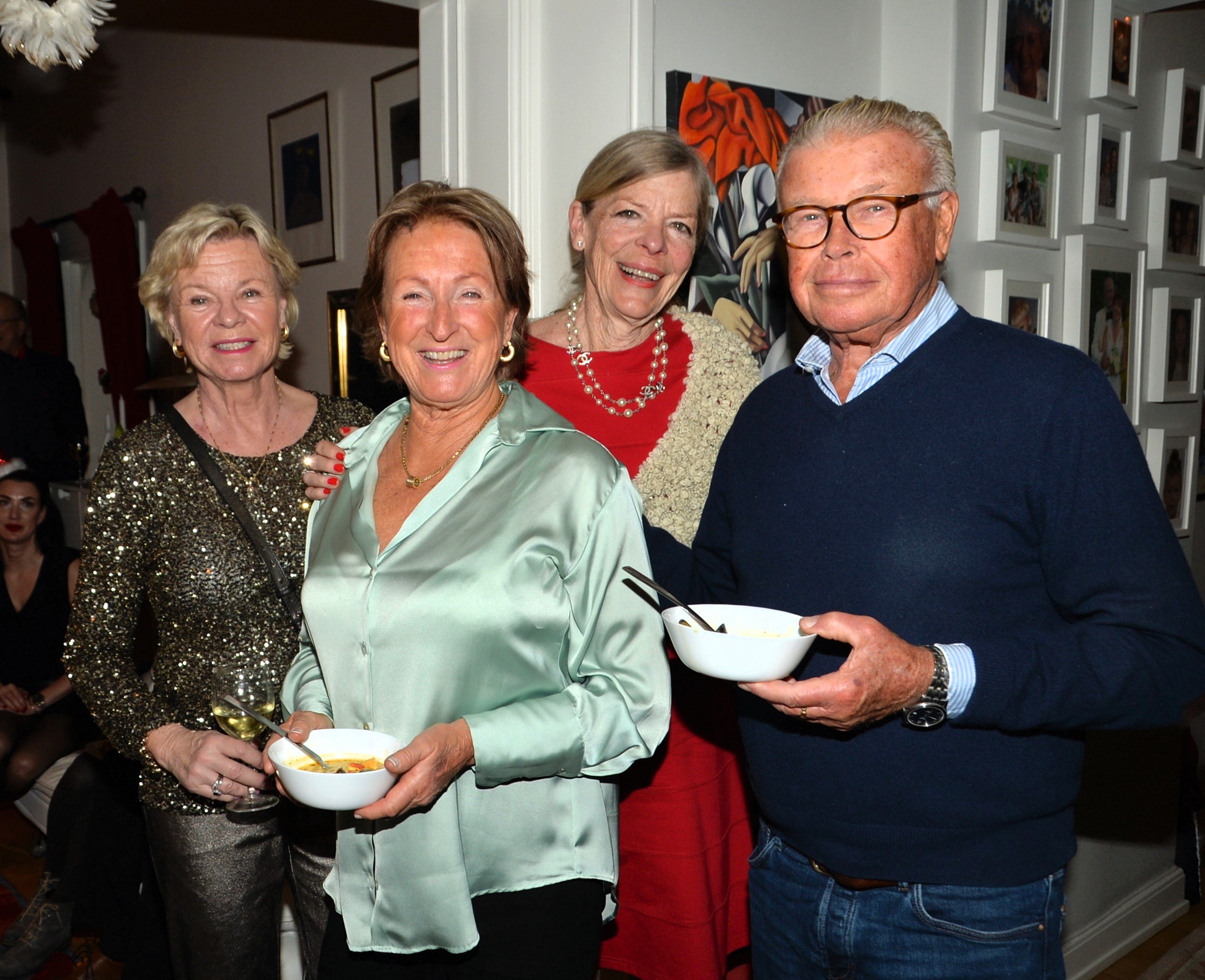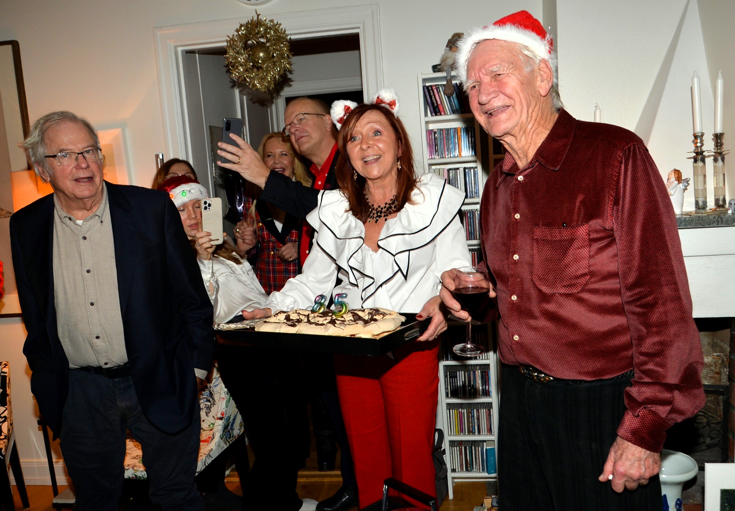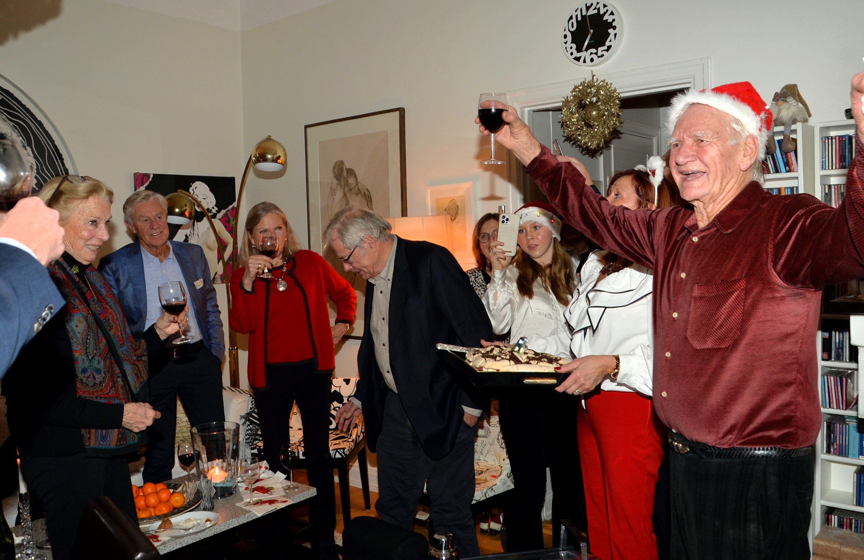Dags för den årliga glöggen (enl.gammalt familjrrecept) hos Fallai’s. Sedan fick även hurra för Peppe som nyligen fyllt 85 år. Hur kan man tro det, vital och pigg, och som håller igår till 100%. Det blev som tidigare år enl. tradition lite smått och gott att äta. Elisabeth Fallai’s utsökta fisk och skaldjurssoppa m.m. serverades i köket. Plus för att fira Peppe en underbar marängtårta med hallon och blåbär.