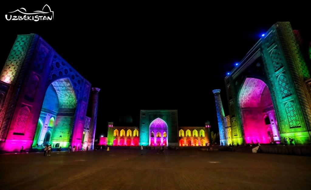 Registan Square at night