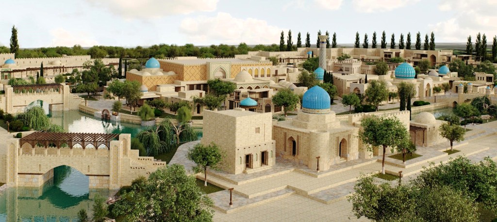 Den centrala gatan med en ceremoniell triumfbåge fick namnet Samarkand. Gäster i den eviga staden kan gå längs vägen kantad av natursten för att besöka Nationalbiblioteket eller dockteatern och bekanta sig med konsten att brodera, skapa nationaldräkter och prägla, samt prova Samarkand-tunnbröd eller samsa.