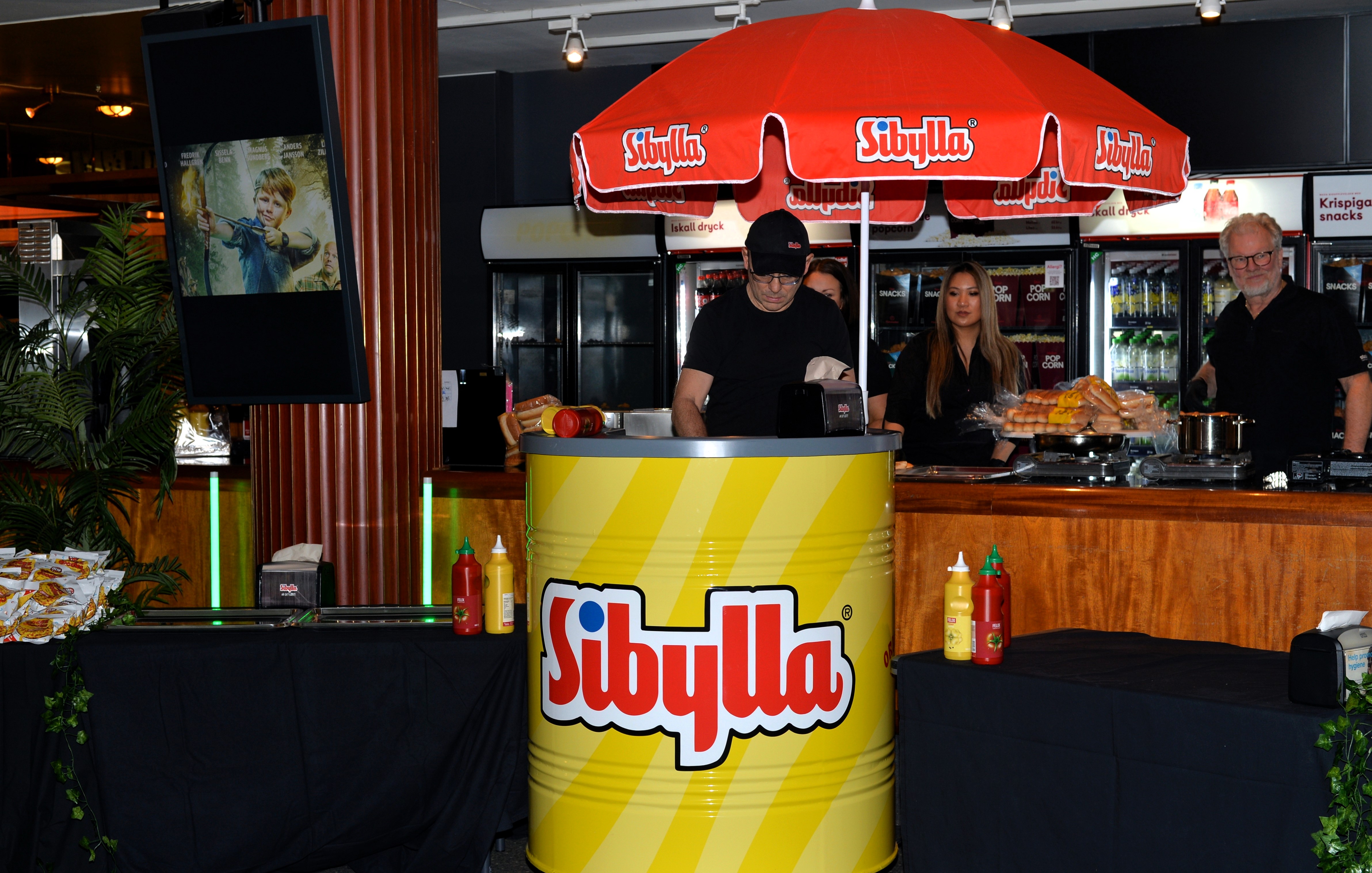 Galapremiären av Håkan Bråkan 2 Söndagen den 4 Februari bjöd på mingel i föajén fyllt med godsaker samt kokt varm korv ifrån Sibylla på biograf Saga på Kungsgatan 24 i Stockholm.