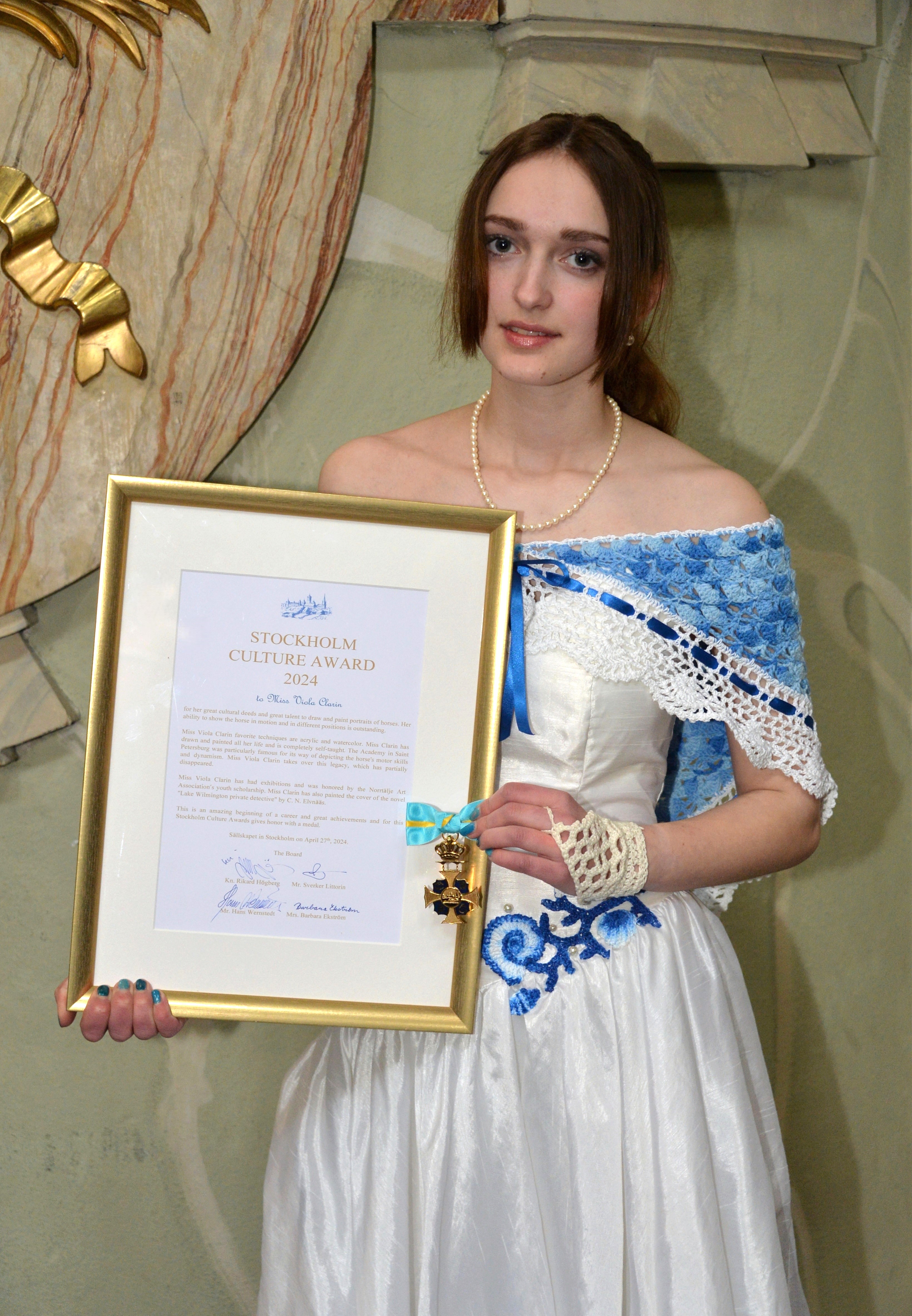Galadinner at Sällskapet the 27th of April 2024 in Stockholm with Diploma – Medal awards to: Miss Linda Lampenius, Miss Wilma Kvamme, Miss Ivetta Irkha, Miss Viola Clarin, Master Lim Say Fon, Mr. Linjie Chou of Zanadu.