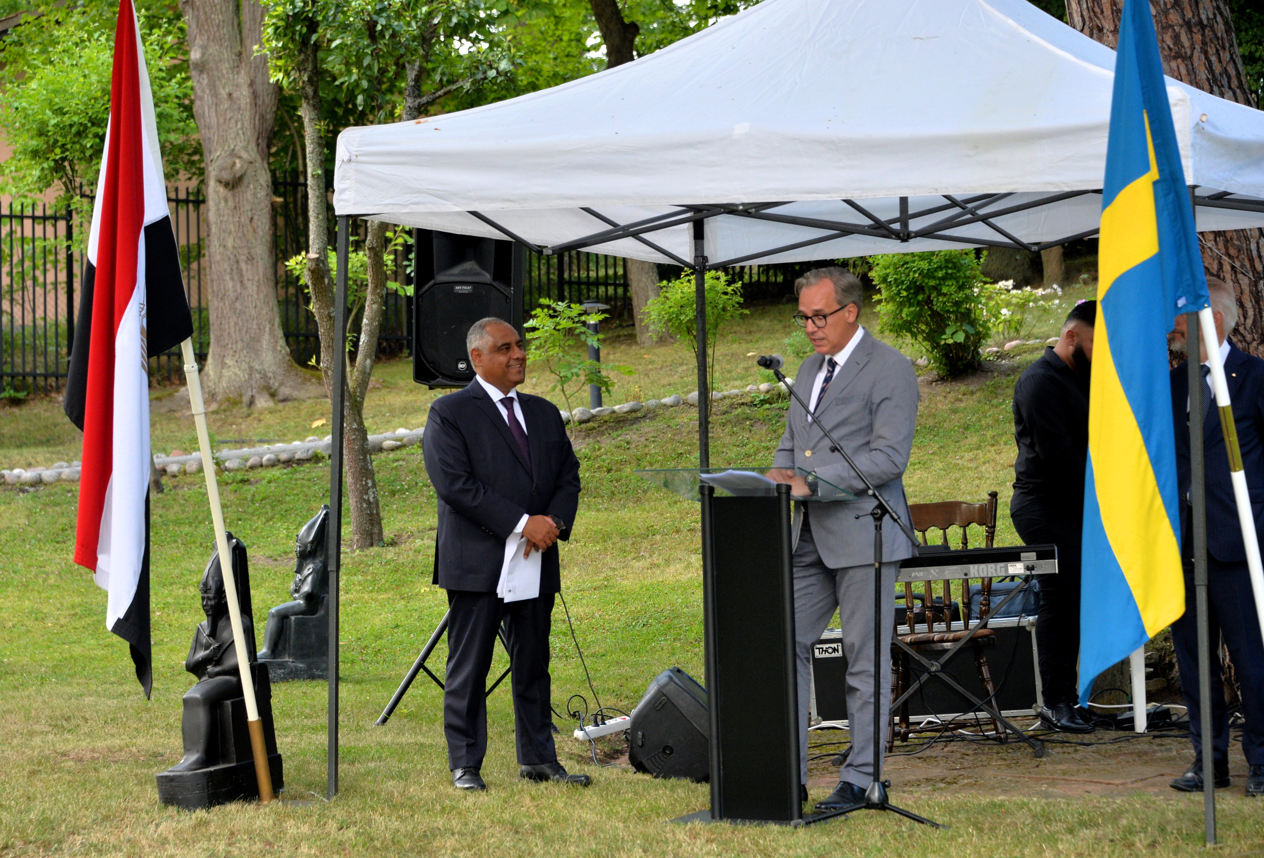 Egypt celebrated its national day with a large and generous garden party with national food, juice and lemon mint lemonade. The entire diplomatic corps in Stockholm, with many Swedish Egypt connoisseurs gathered at Egypt’s residence in the magnificent Djursholm outside Stockholm.
