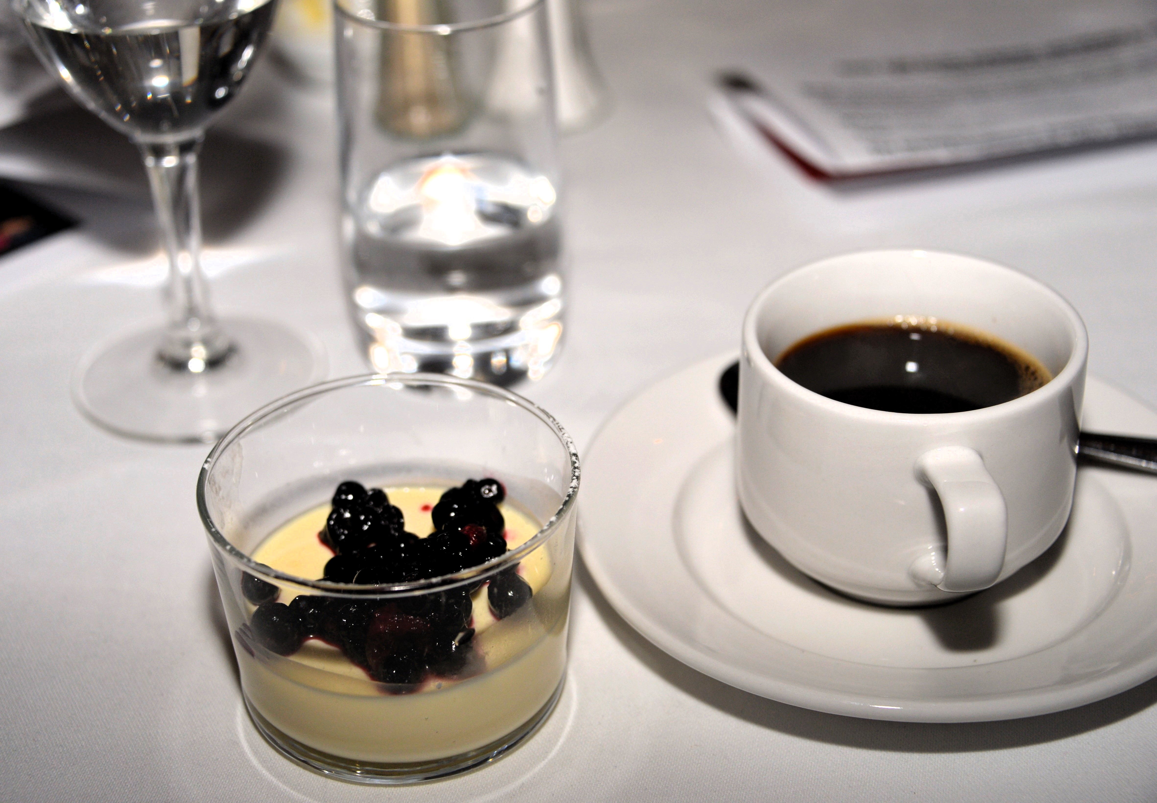 Det serverades god grillad lax med potatispuré och örter, samt en fin vitvinssås. Till dessert fick alla härlig vaniljpannacotta toppad med blandade bär.
