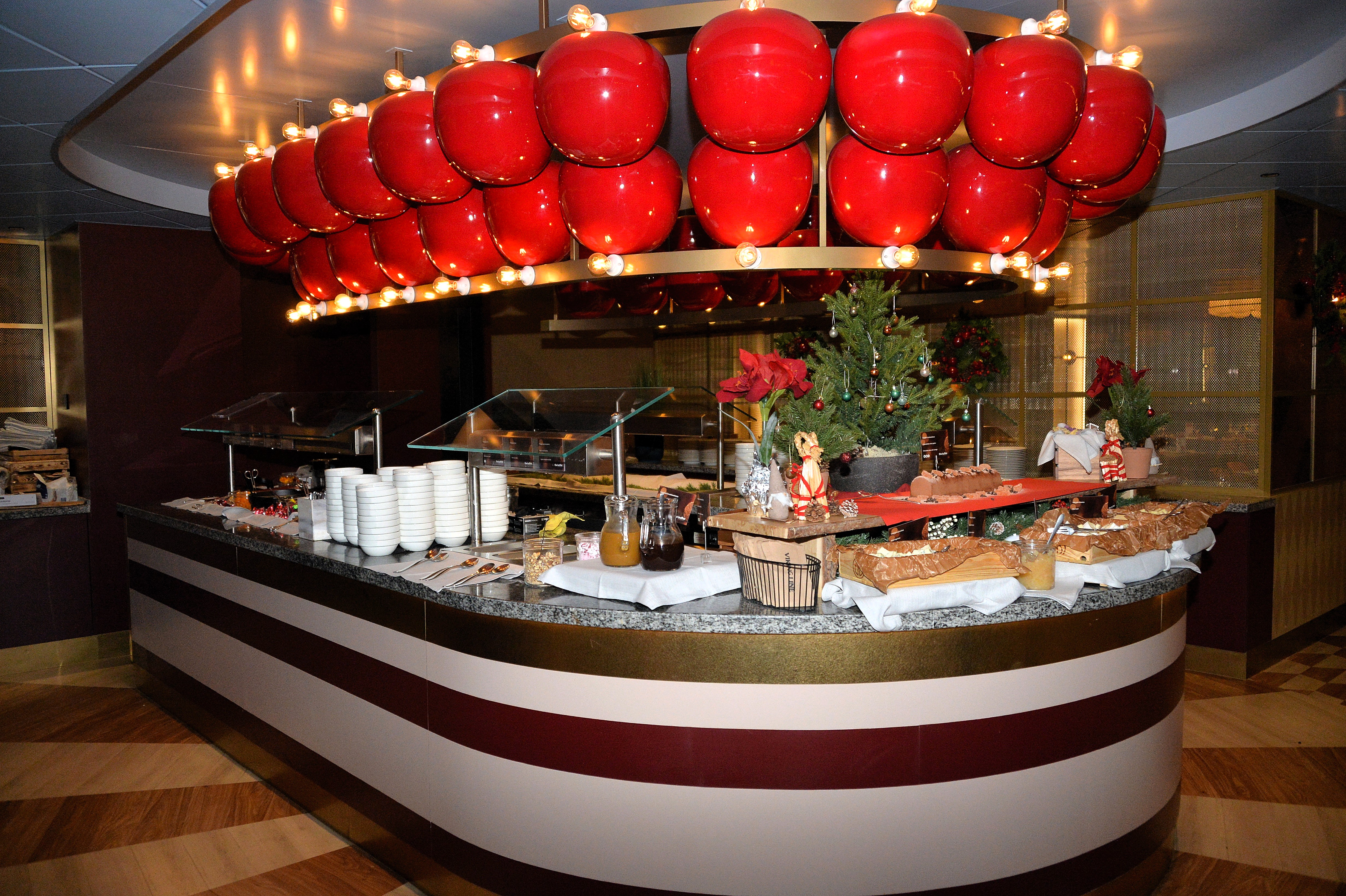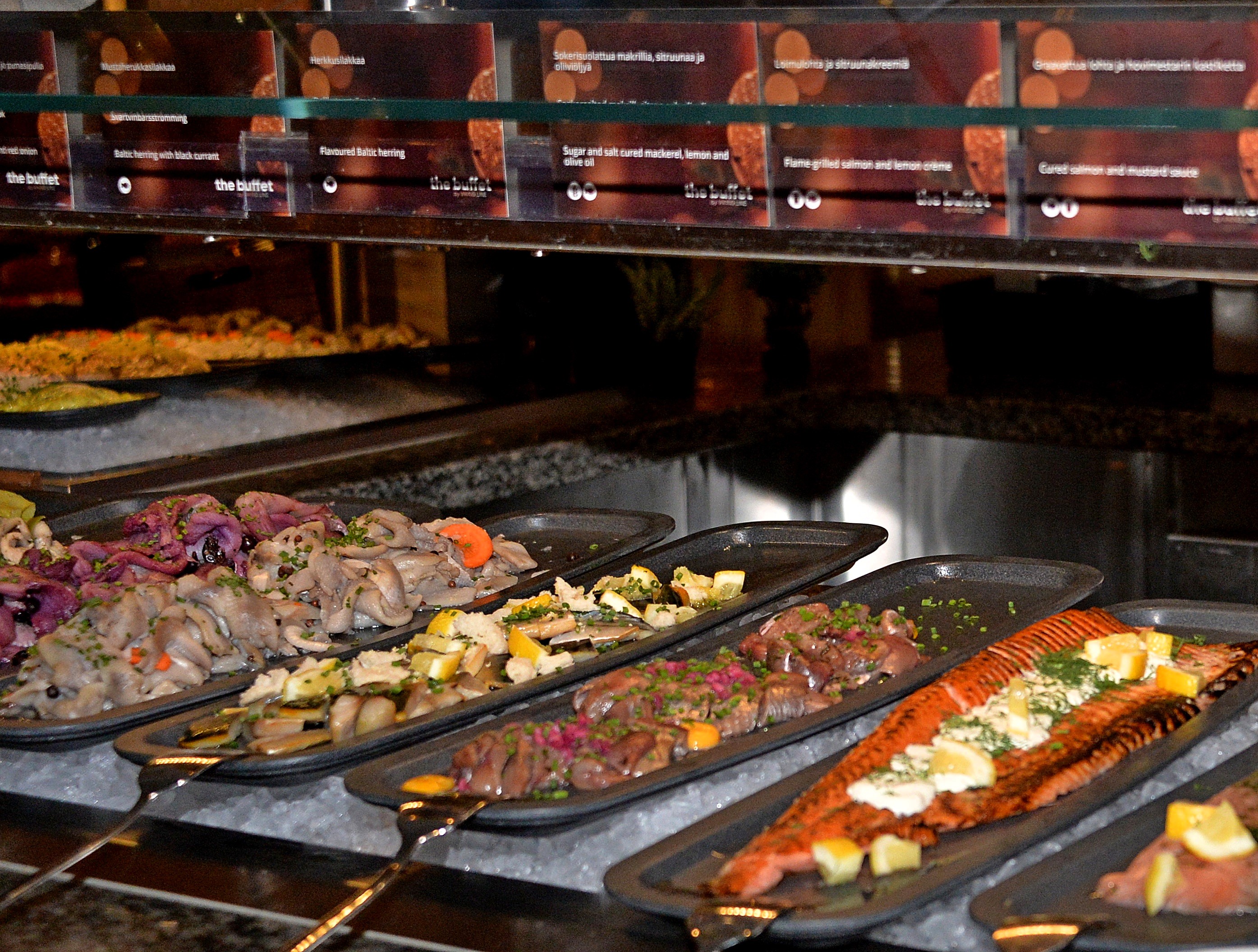 Julens smaker – allt på ett bord – Julbord erbjuder alla svenska klassiker som köttbullar, gravad lax, prinskorv, senapsgriljerad skinka, sill och strömming. Utöver detta finns många fräscha julsallader och en stor vegetarisk avdelning. Med mindre smakportioner så du kan enkelt prova flera olika rätter. Avsluta måltiden med en dessertbuffé fylld med läckerheter som ris à la Malta och fina chokladbakelser. Vin, öl, läsk (samt Julmust) och kaffe ingår, liksom den festliga julunderhållningen ombord. Vi säger tack till köksmästaren Mikko Martikainen.