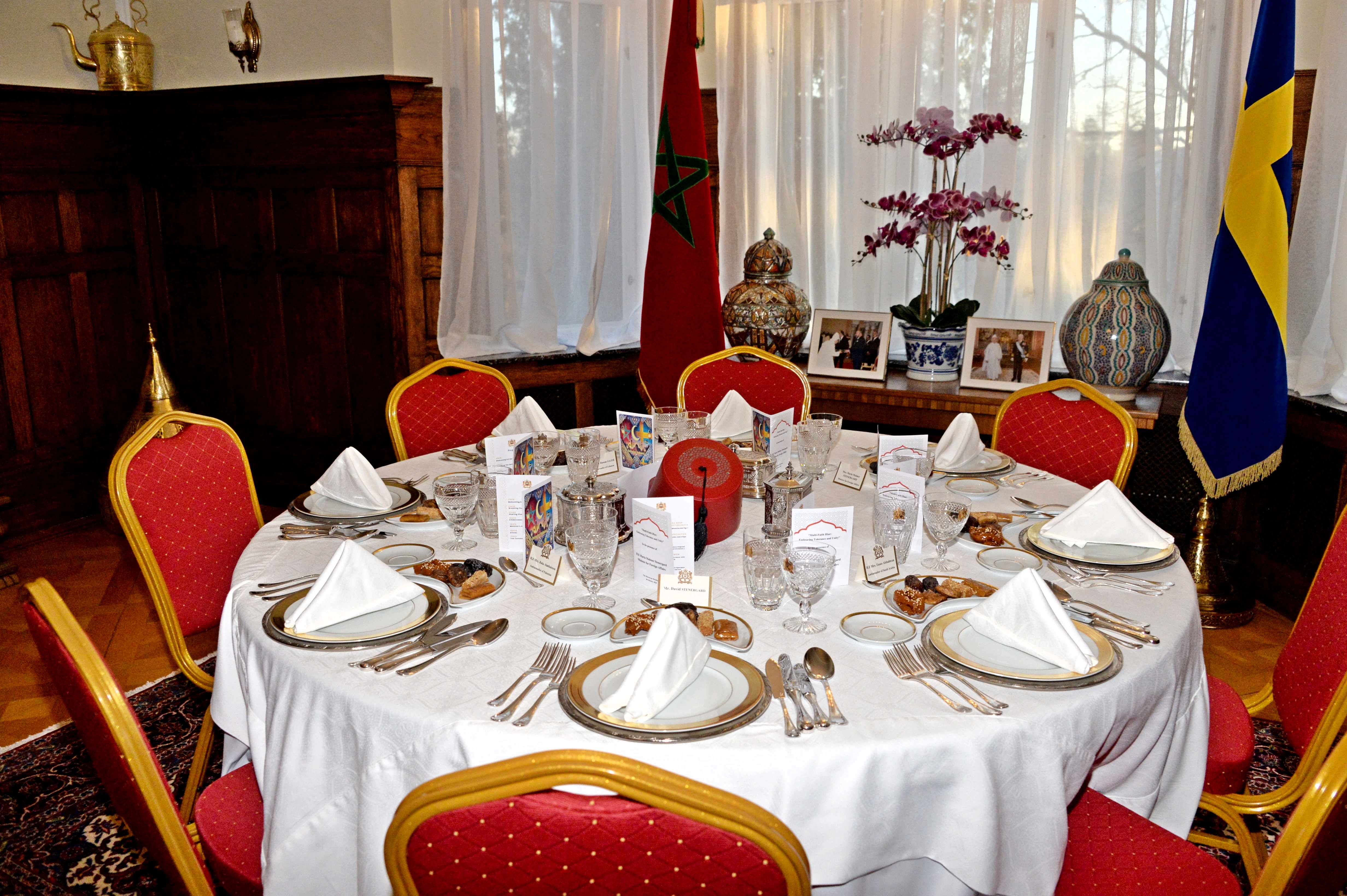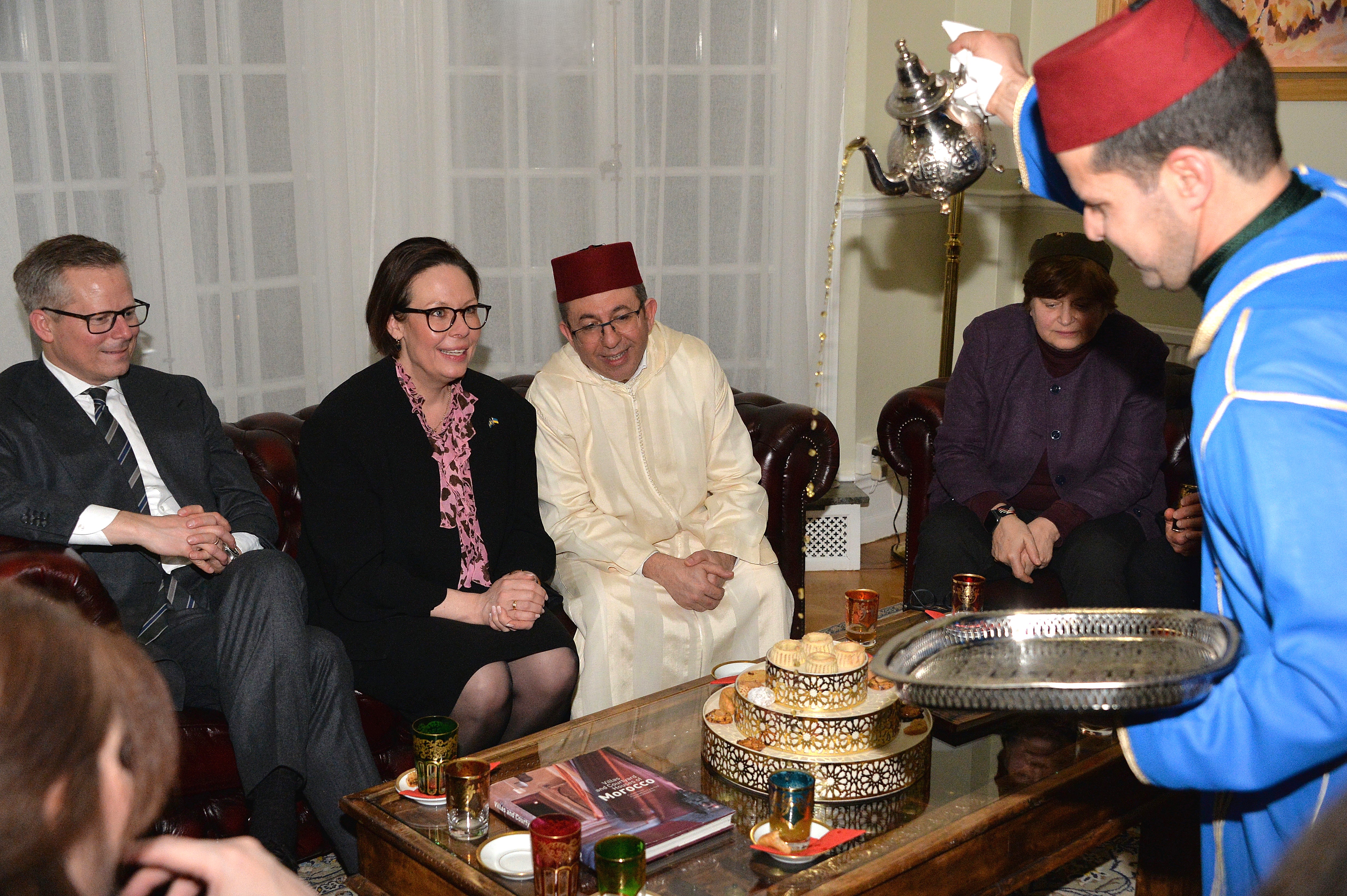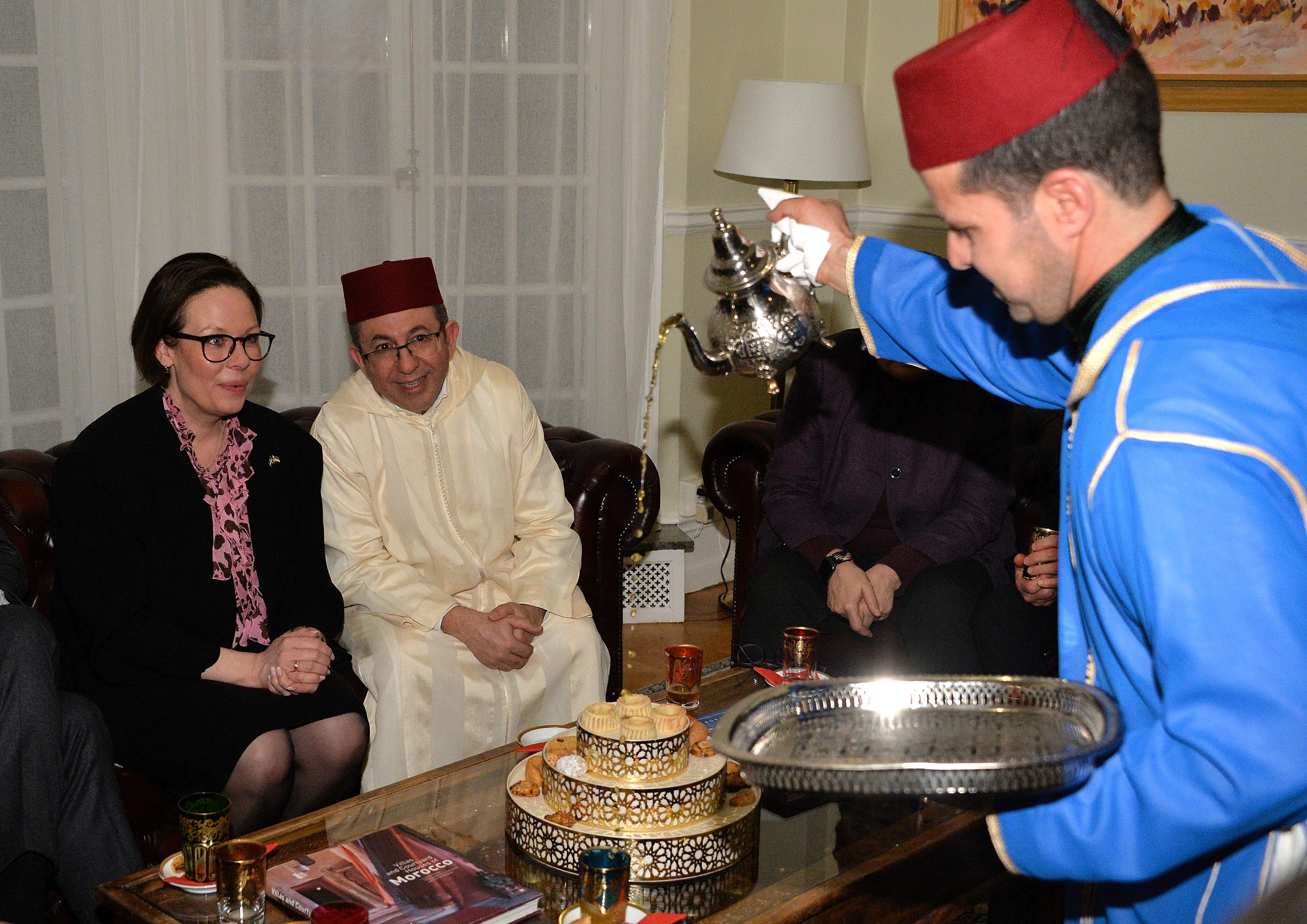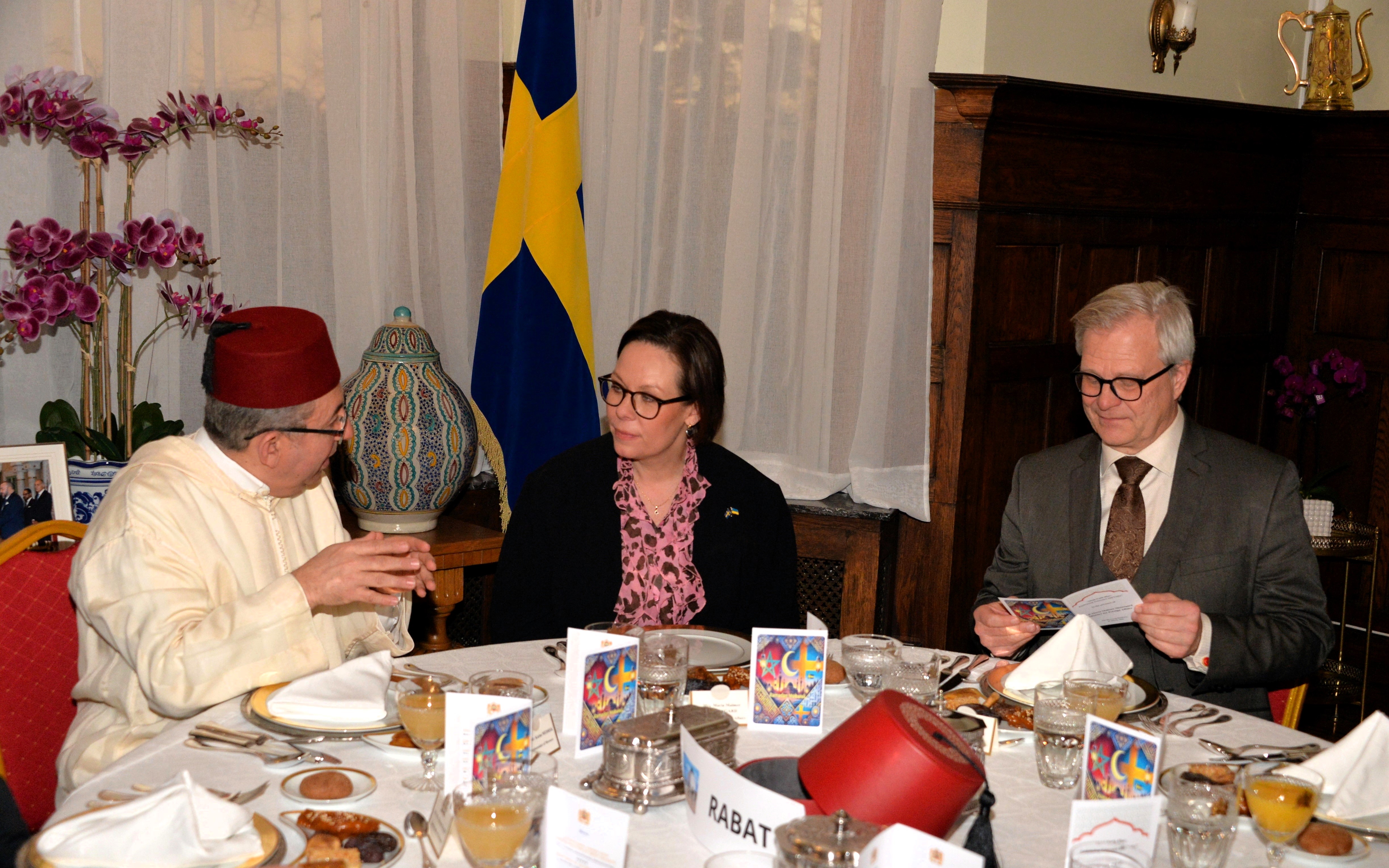 The Ambassador of Morocco H.E. Mr. Karim Medrek hosted an wonderful Iftar dinner at the Residence of Morocco on March 6th, 2025. Among some 40 VIP Guests was the Minister of Foreign Affairs of Sweden as the guest of honor. After dinner traditional Moroccan Mint Tea with cookies.