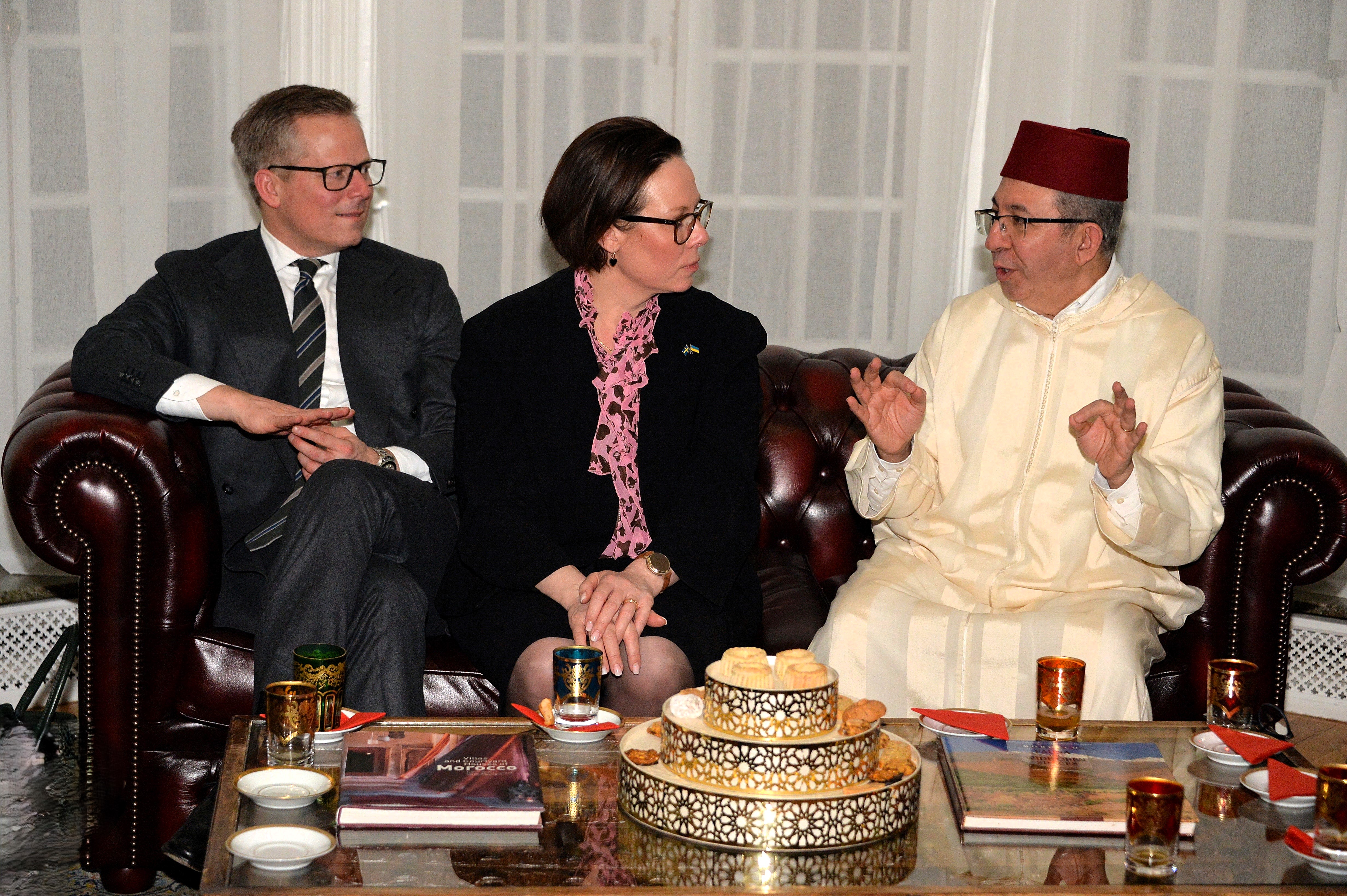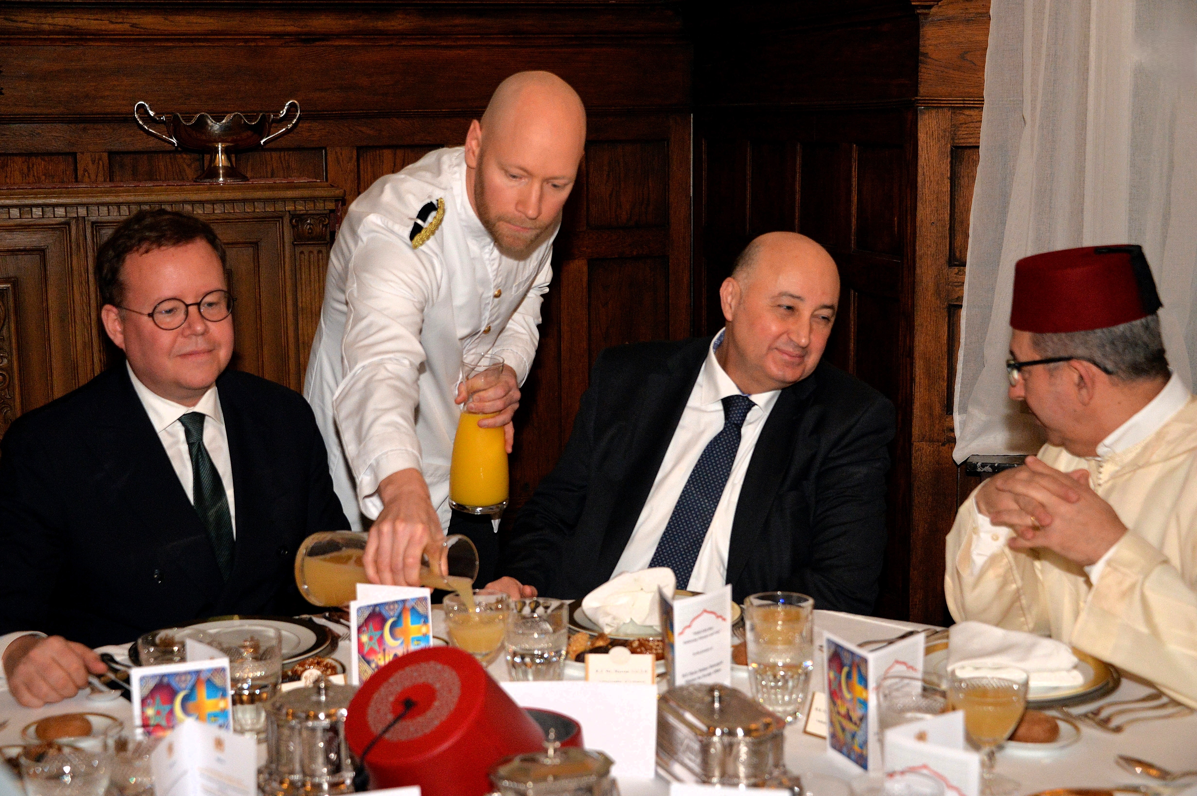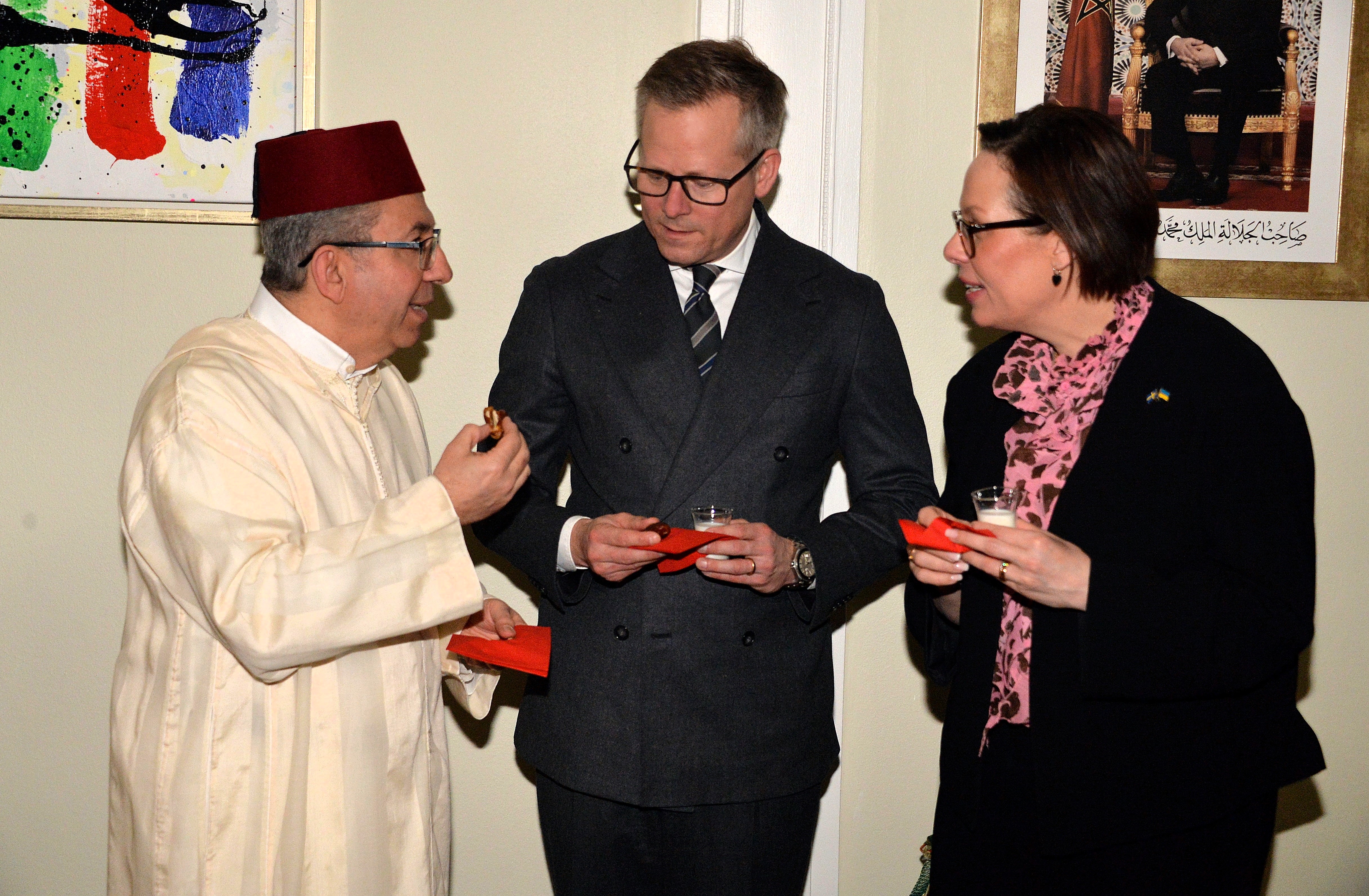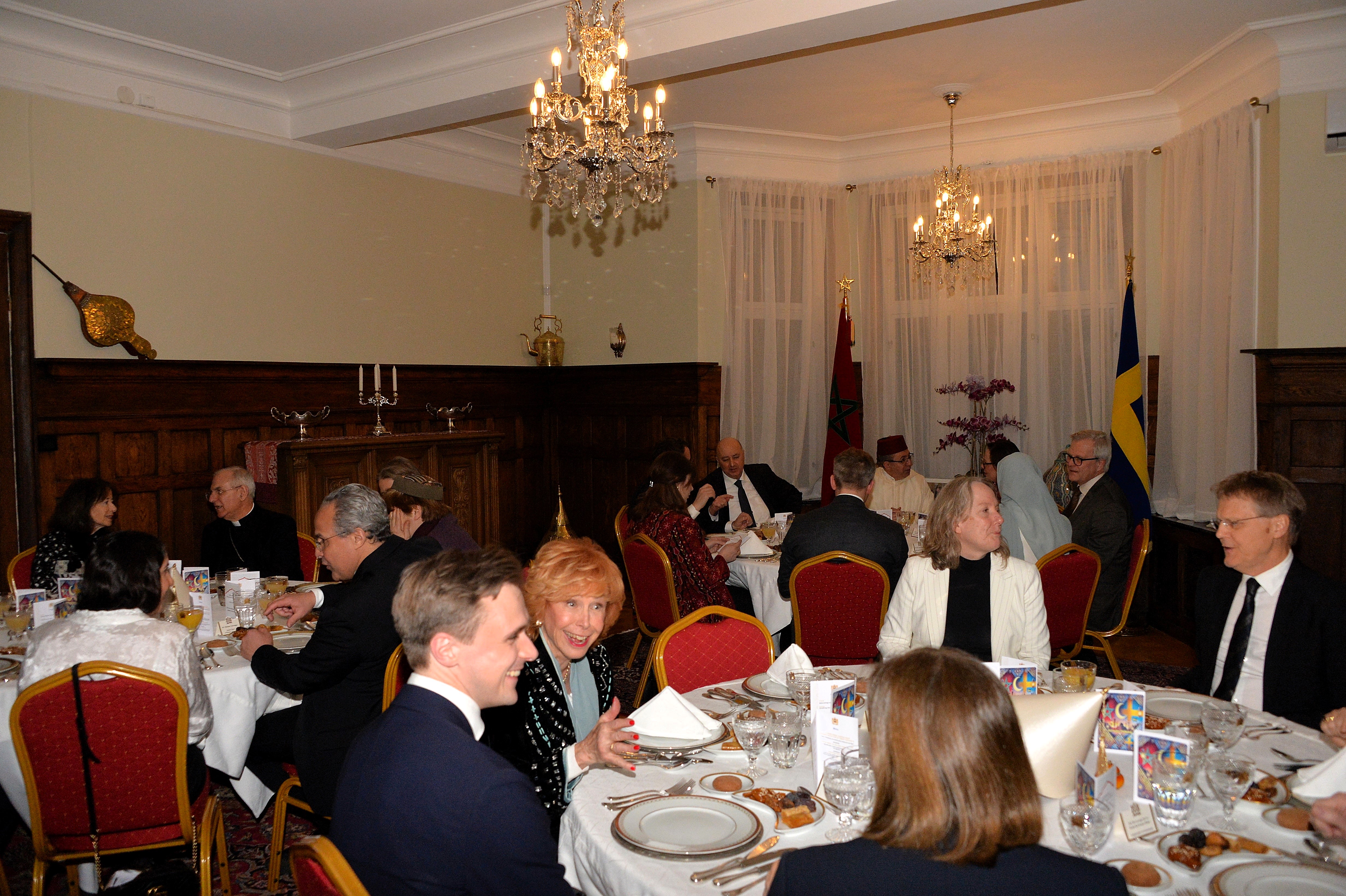 The Ambassador of Morocco H.E. Mr. Karim Medrek hosted an wonderful Iftar dinner at the Residence of Morocco on March 6th, 2025. Among some 40 VIP Guests was the Minister of Foreign Affairs of Sweden as the guest of honor. After dinner traditional Moroccan Mint Tea with cookies.