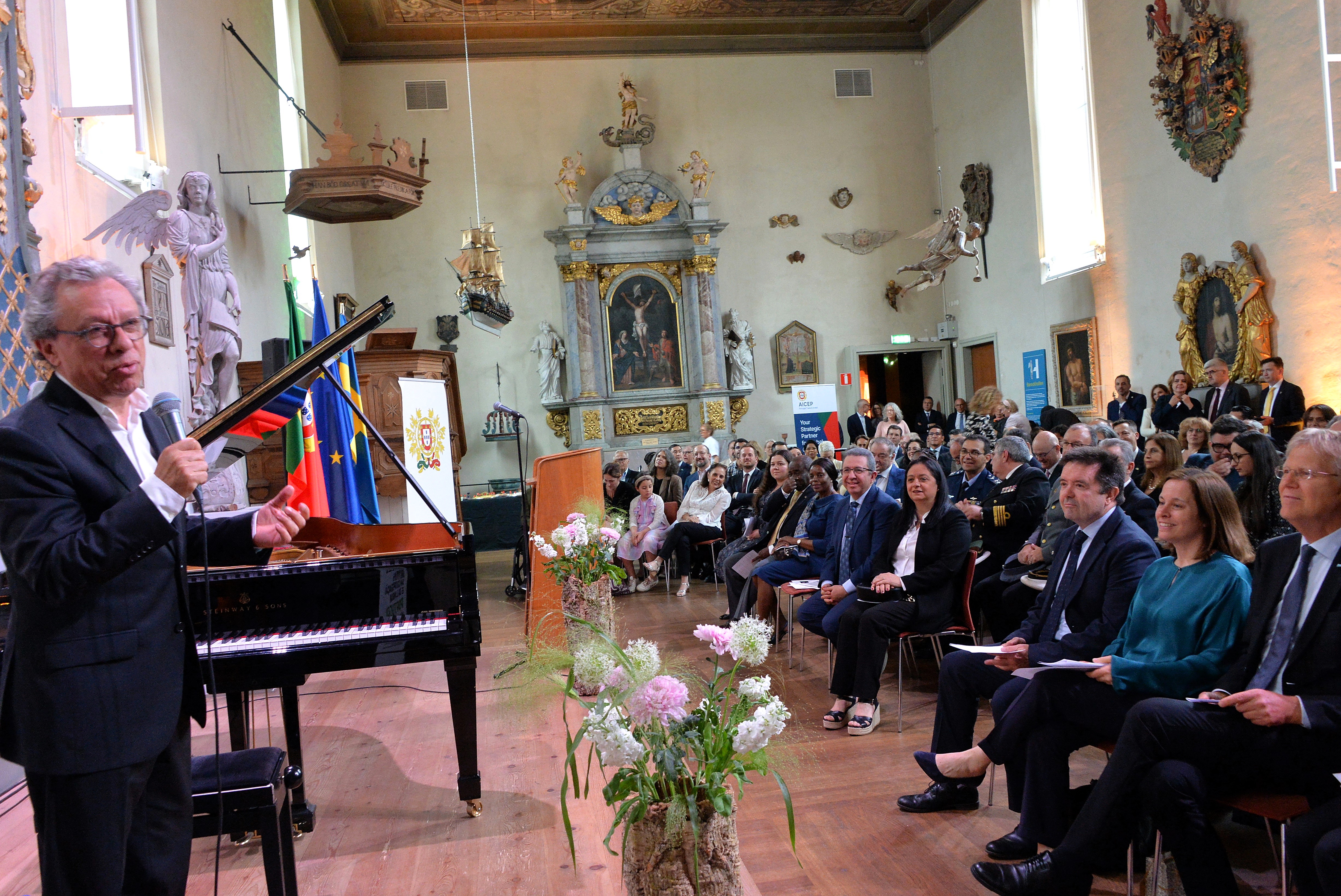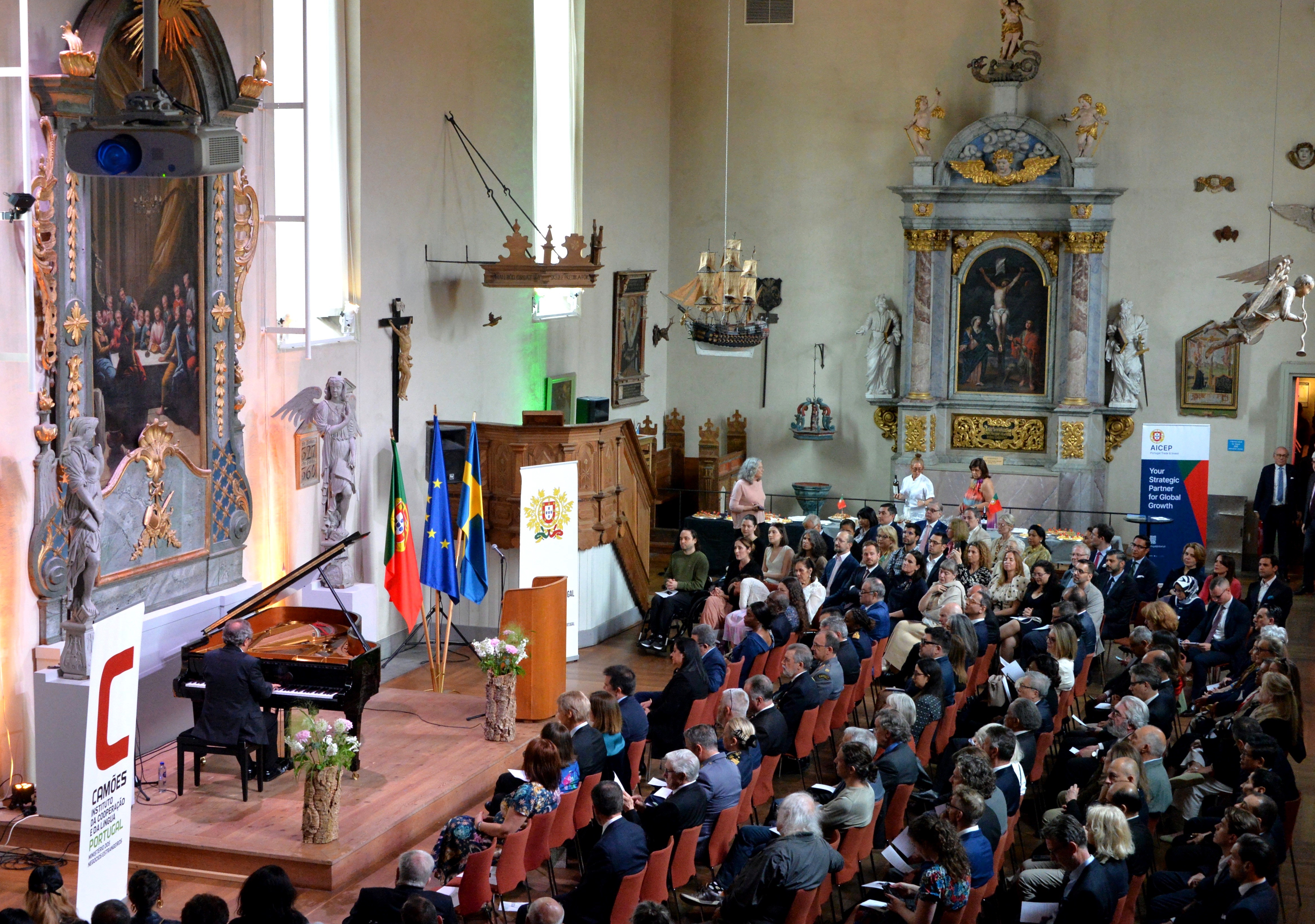 På Historiska museet serverades Portugisiska delikatesser, samt flera olika viner ifrån ”Wines of Portugal” och https://www.giertz.se/ . Underbar konsert av Mario Laginha på Piano. Den portugisiske kompositören spelade Improvisation, Open hands, So much space, Fado, Hands on the Wall, Return, A happy choro.