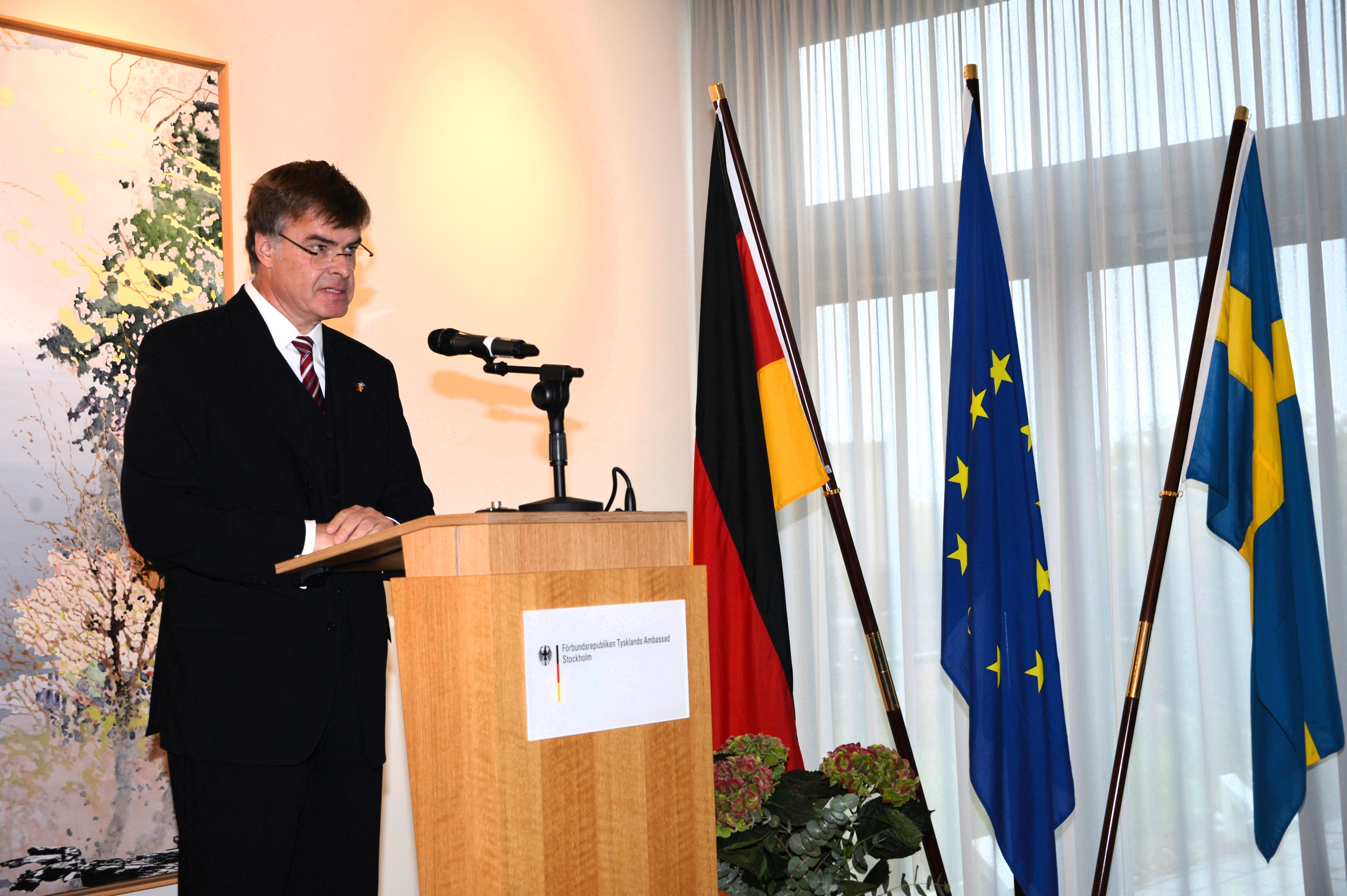 Även i Stockholm uppmärksammades Tysklands nationaldag med en mottagning på den tyska ambassaden den 22 oktober. Gäster från diplomatiska kretsar, näringsliv och kultur deltog i firandet, som präglades av högtidstal av Ambassadör Ludger Siemes samt Dag Hartelius, musik och gemenskap samt lotteri.