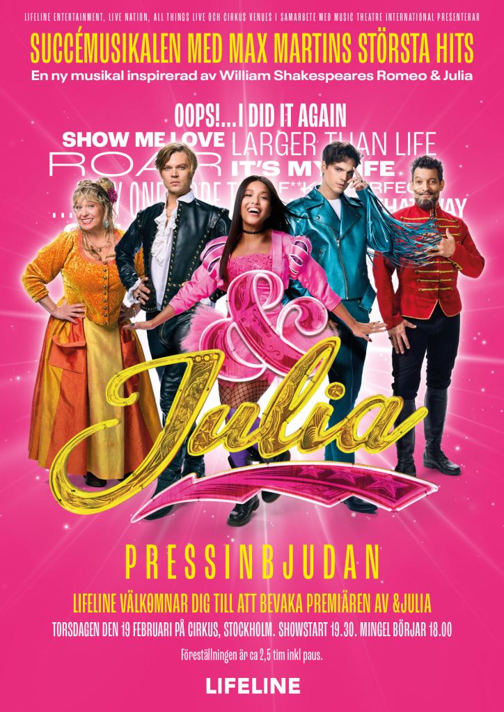 Torsdagen den 19 februari var det Sverigepremiär för succémusikalen & Julia på Cirkus i Stockholm. Musikalen, som kretsar kring Max Martins ikoniska musikkatalog, har under flera år fyllt salongerna på West End och Broadway och hyllats av både publik och kritiker världen över.