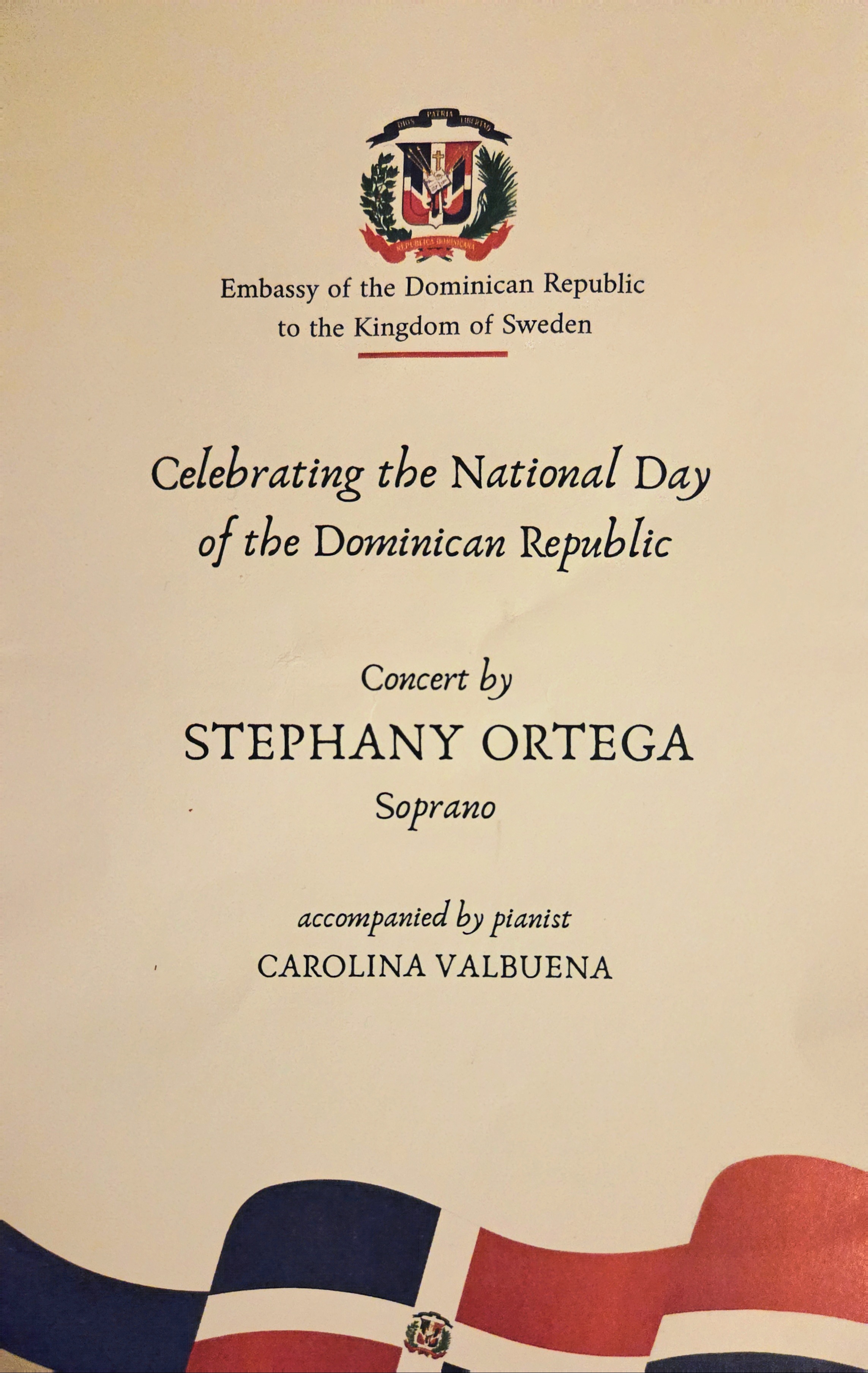 Reception on the occasion of the 182th Anniversary of the National Independence of the Dominican Republic, was held on 26th February 2026 at the Swedish History Museum, Baroque Hall in Stockholm, Sweden. Performance by Stephany Ortega Soprano, with pianist Carolina Valbuena. See Cawa Media’s pictures below…